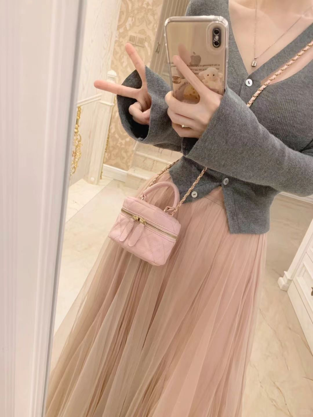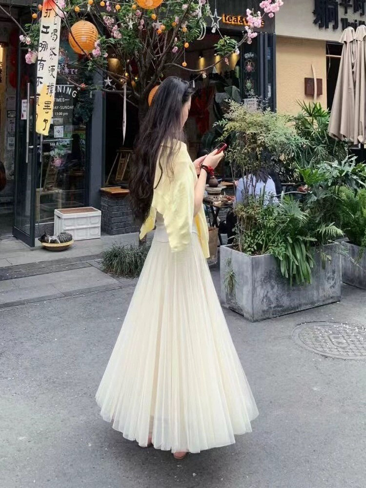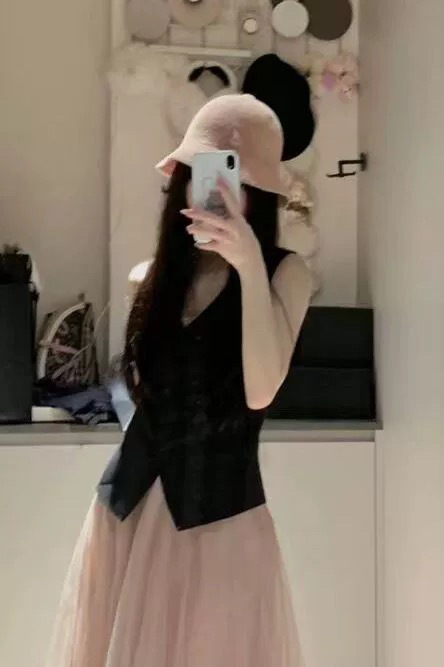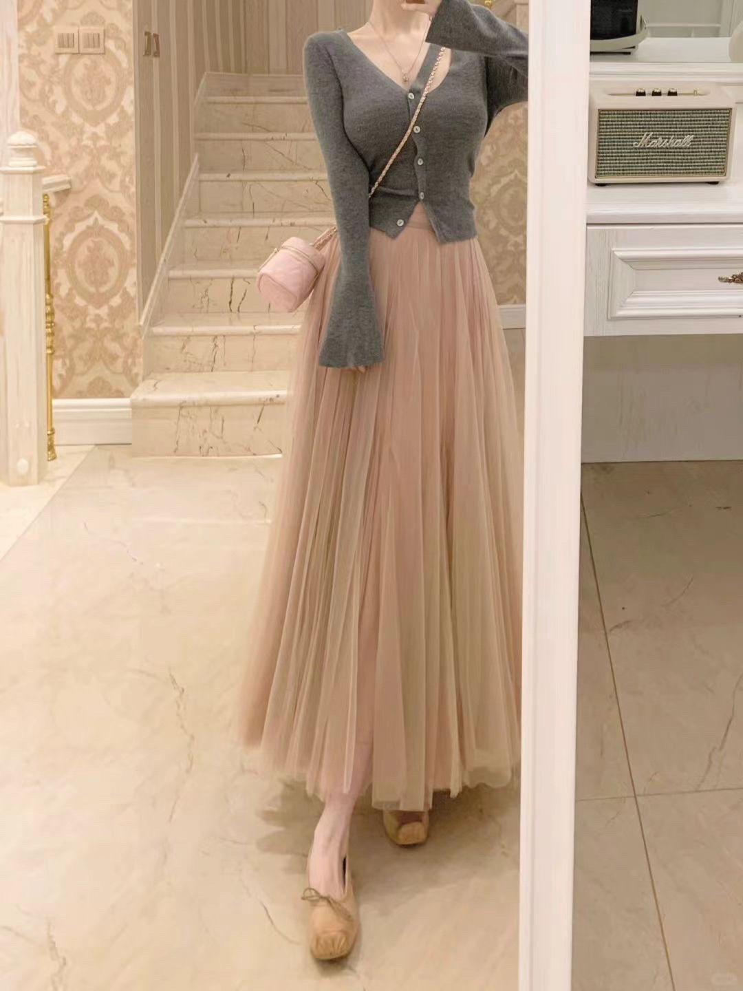 2025 새로운 여름 핑크 A 라인 거즈 스커트 높은 허리 틈새 중간 길이의 거즈 스커트 여성 슈퍼 페어리 우산 스커트 복용량