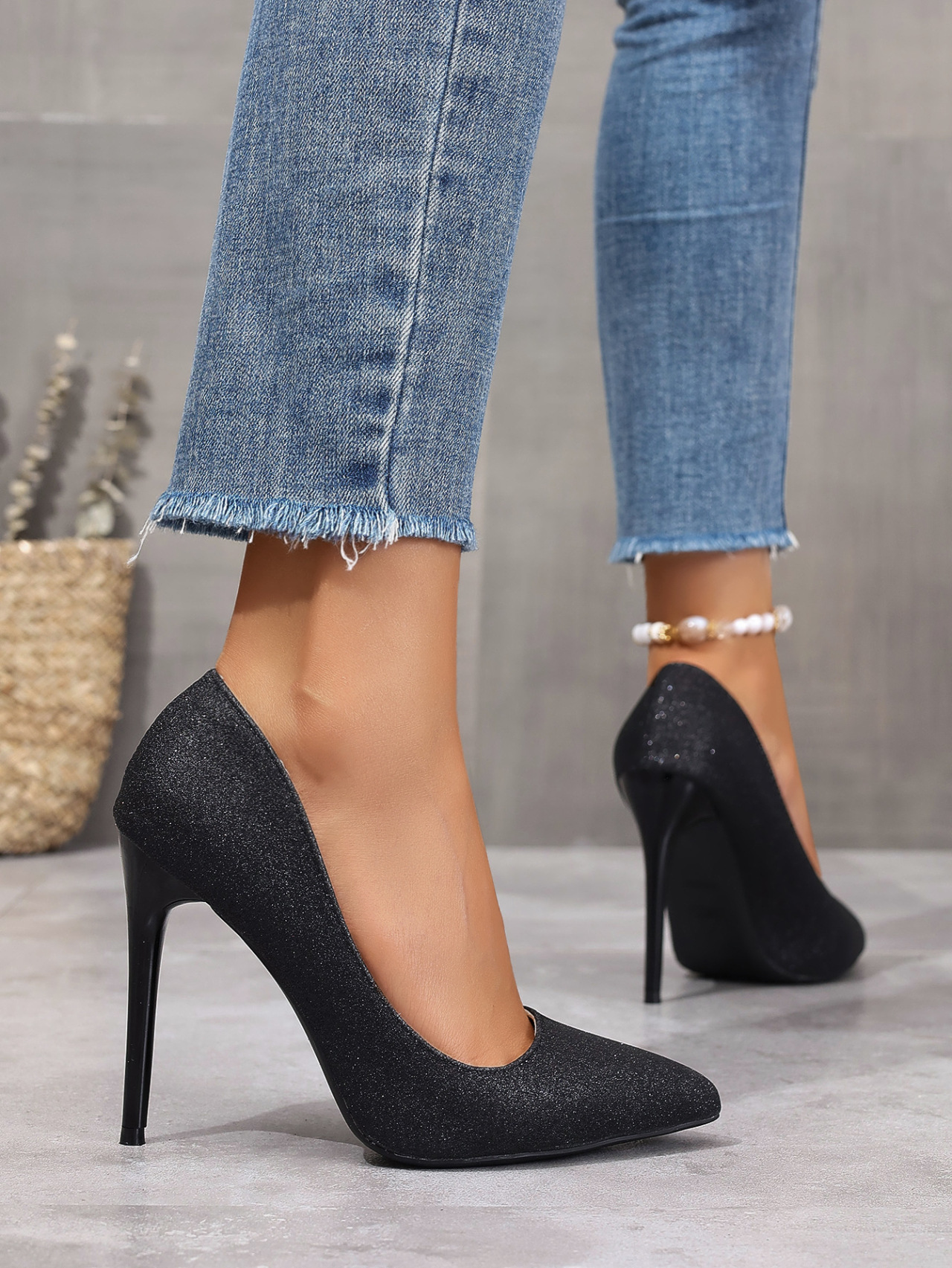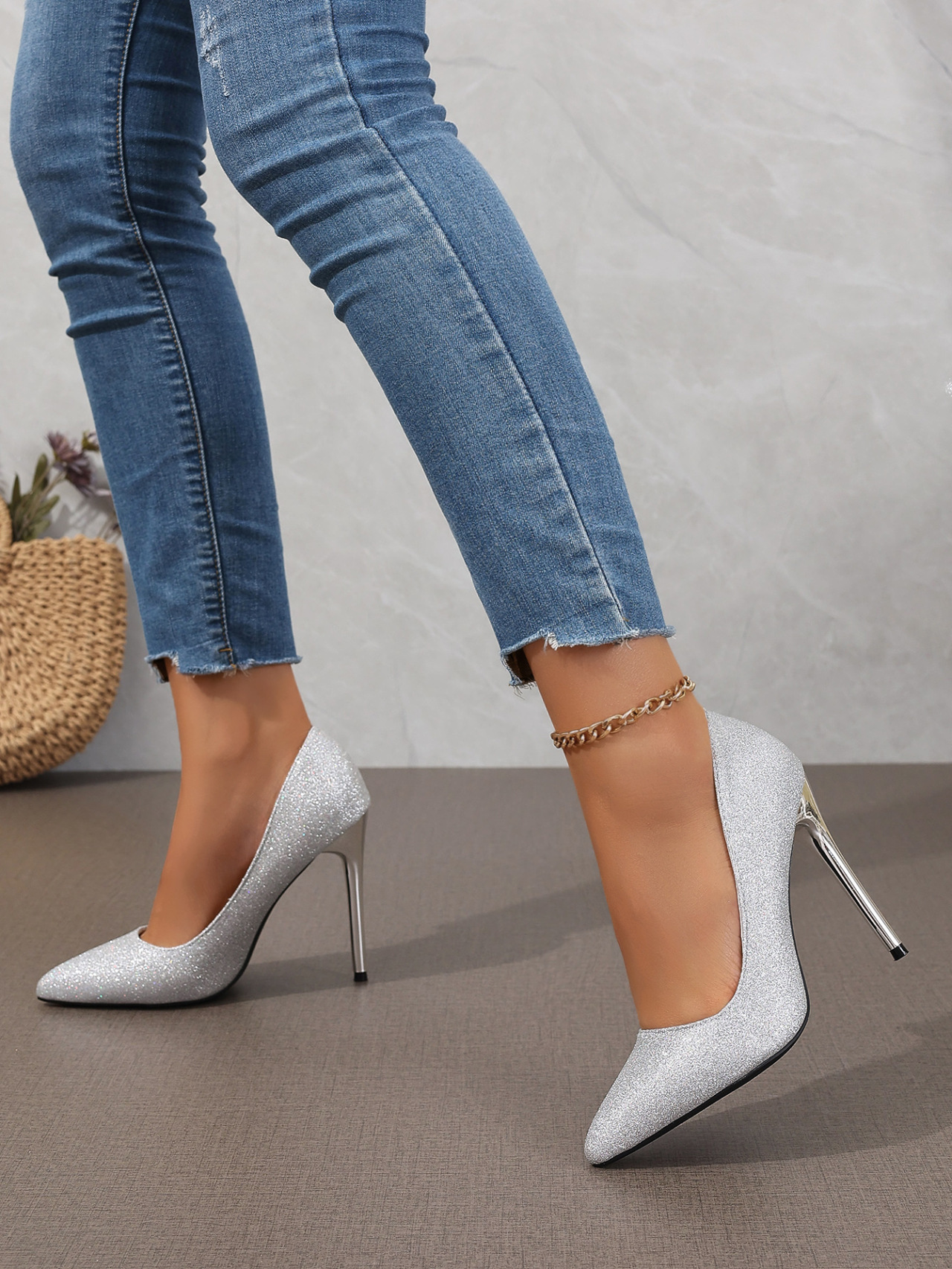 플러스 사이즈 유럽과 미국의 봄과 가을 새로운 뾰족한 얕은 속편 스틸레토 힐 신발 여성 35-45 사이즈 국경 패션 신발스토어 가기