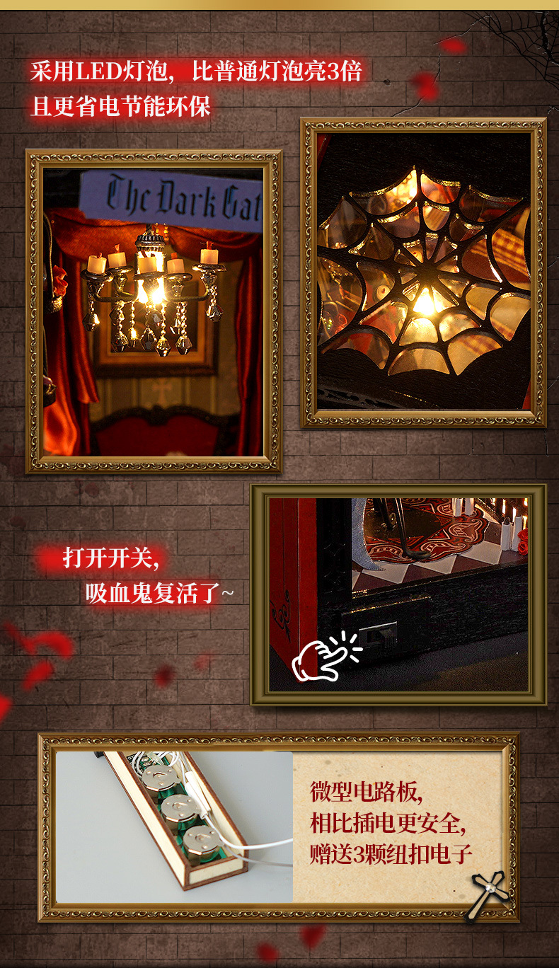 标 配: LED灯+纽扣电池盒开关(配有LR44电池3颗)+1支白乳胶