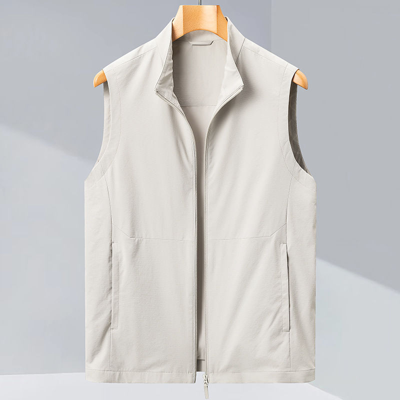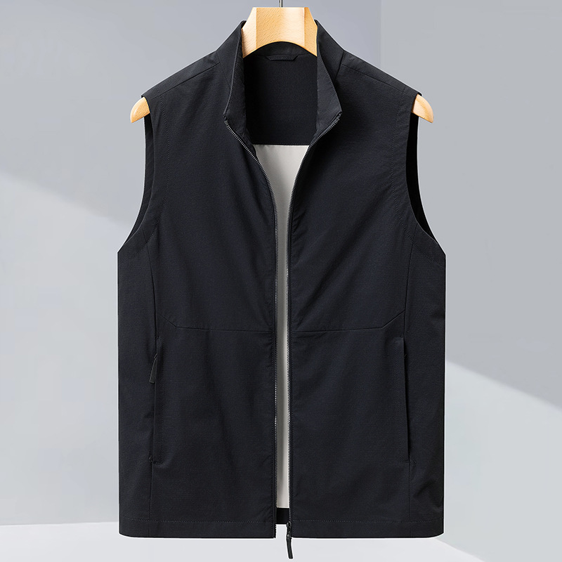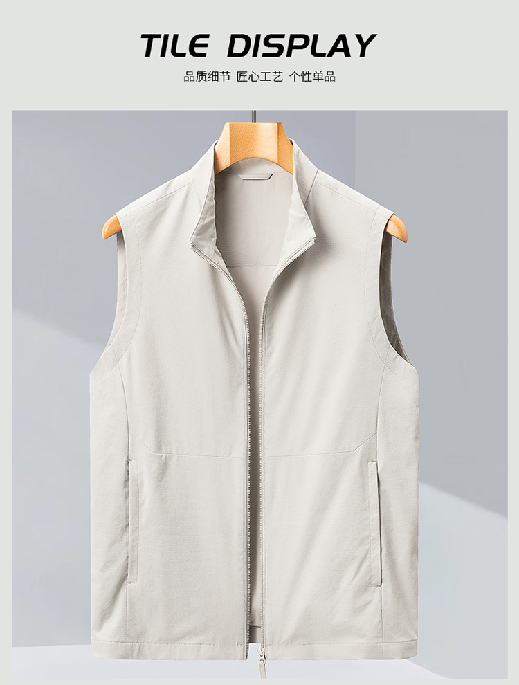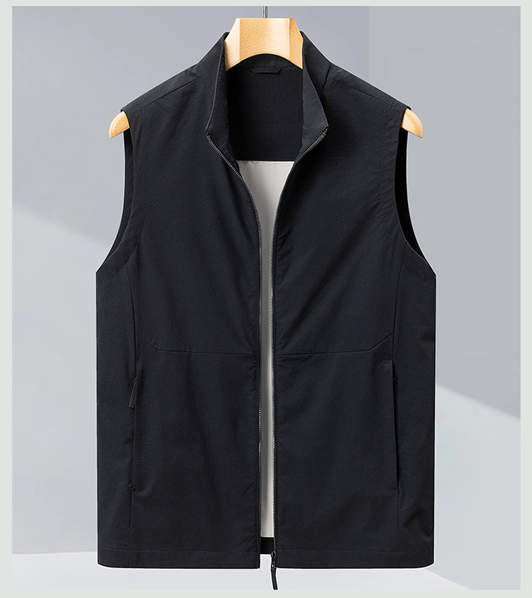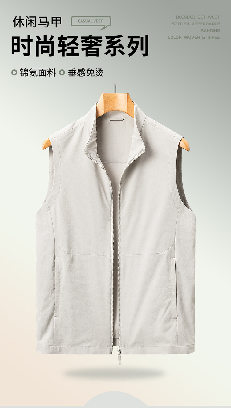 2025 년 봄 새로운 패션 조끼 수직 칼라 민소매 자켓 캐주얼 조끼 쌓인 하이 엔드 남성 허리 코트