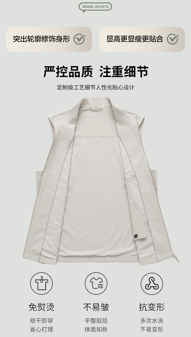 2025 년 봄 새로운 패션 조끼 수직 칼라 민소매 자켓 캐주얼 조끼 쌓인 하이 엔드 남성 허리 코트스토어 가기