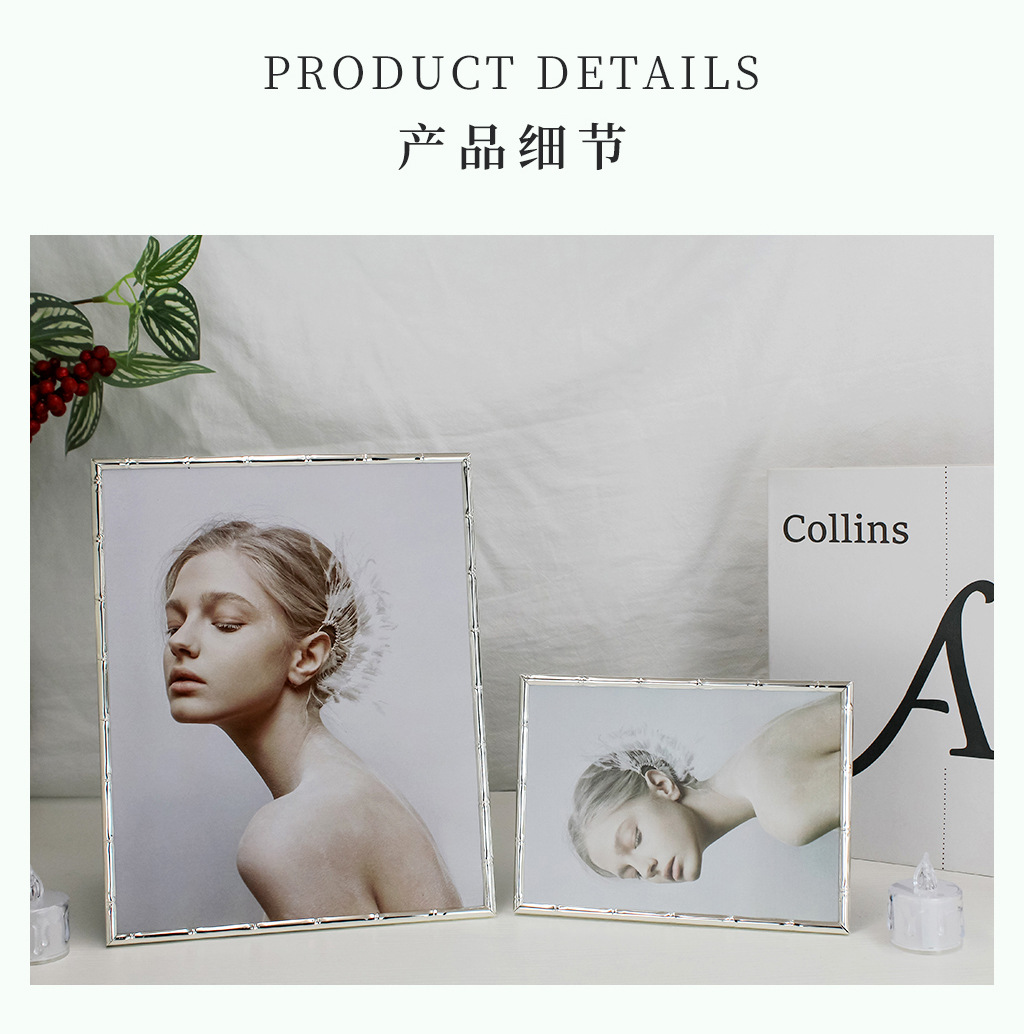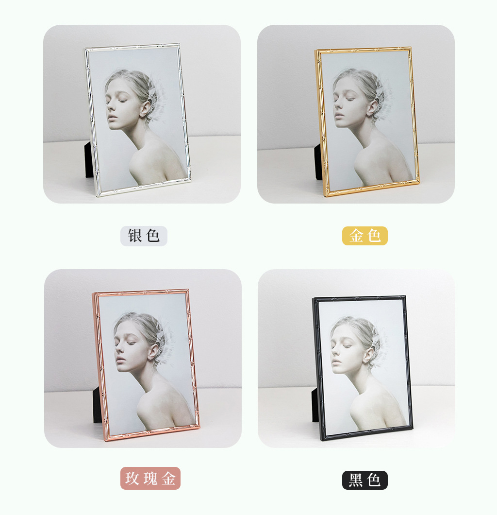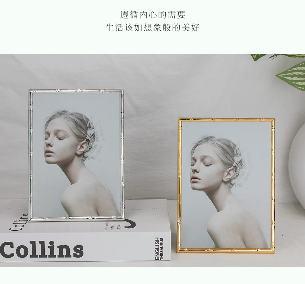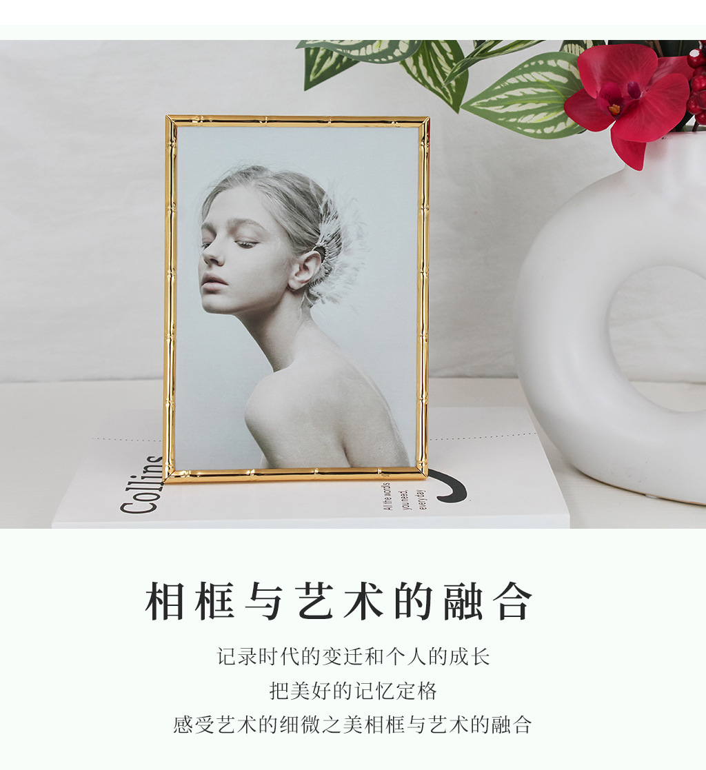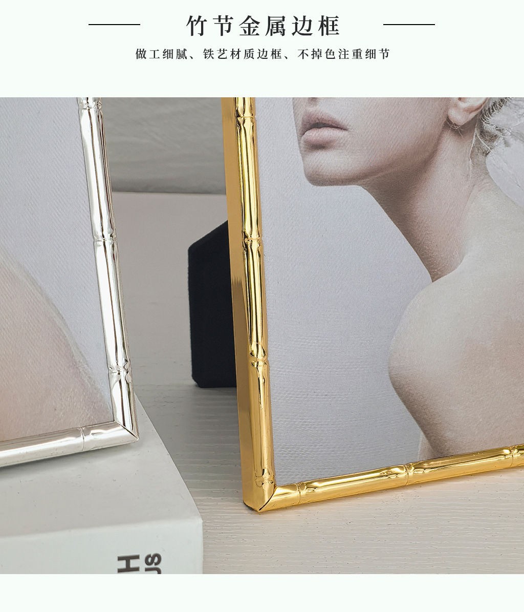 심플한 좁은 테두리의 대나무 무늬 금속 액자, 철제 골드 컬러 7inch A4 사이즈, 벽걸이형 사진액자, 서재용 그림액자