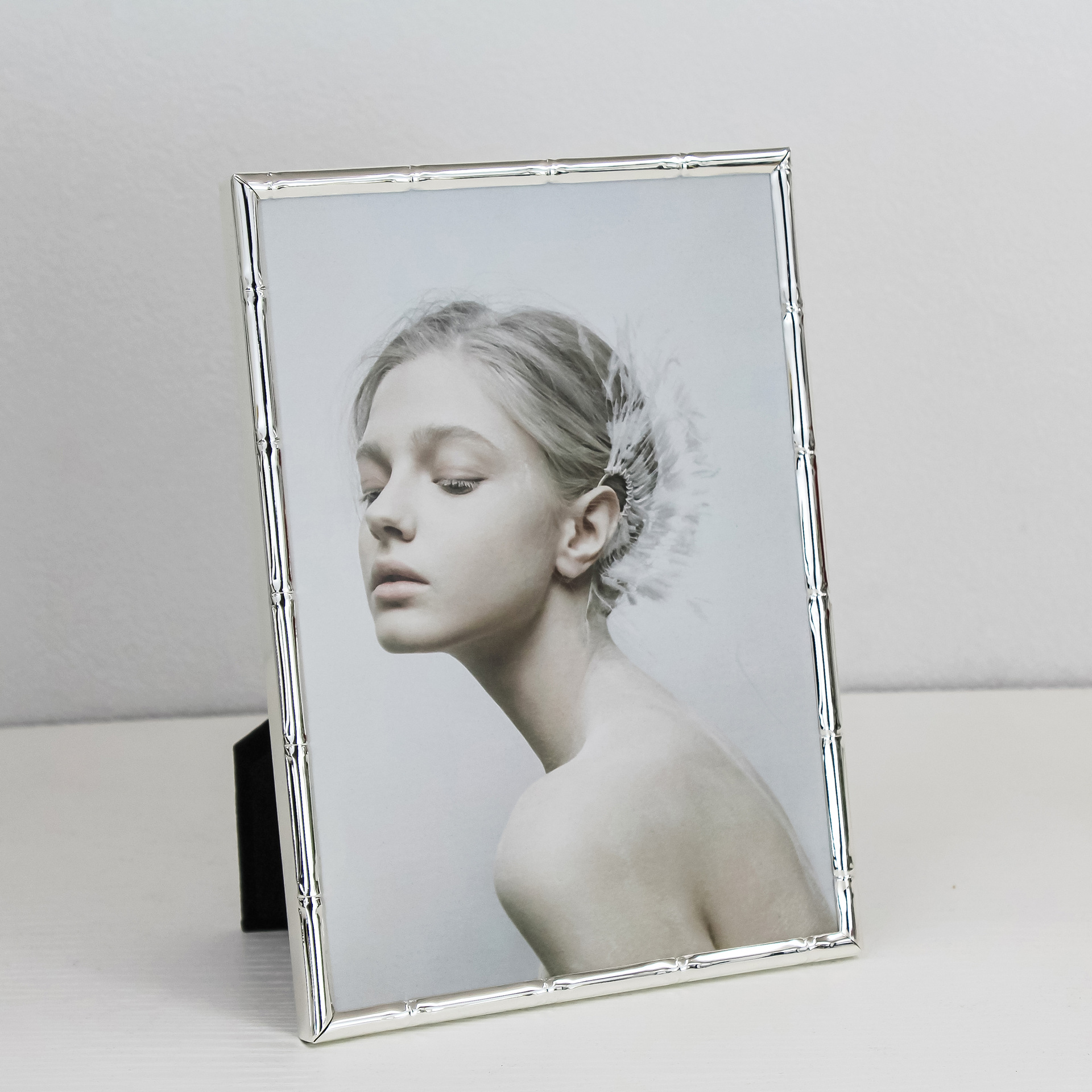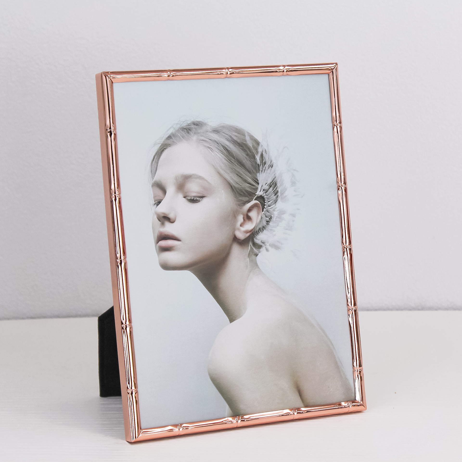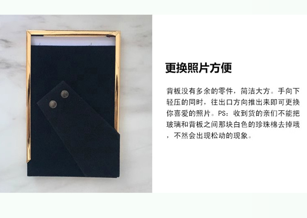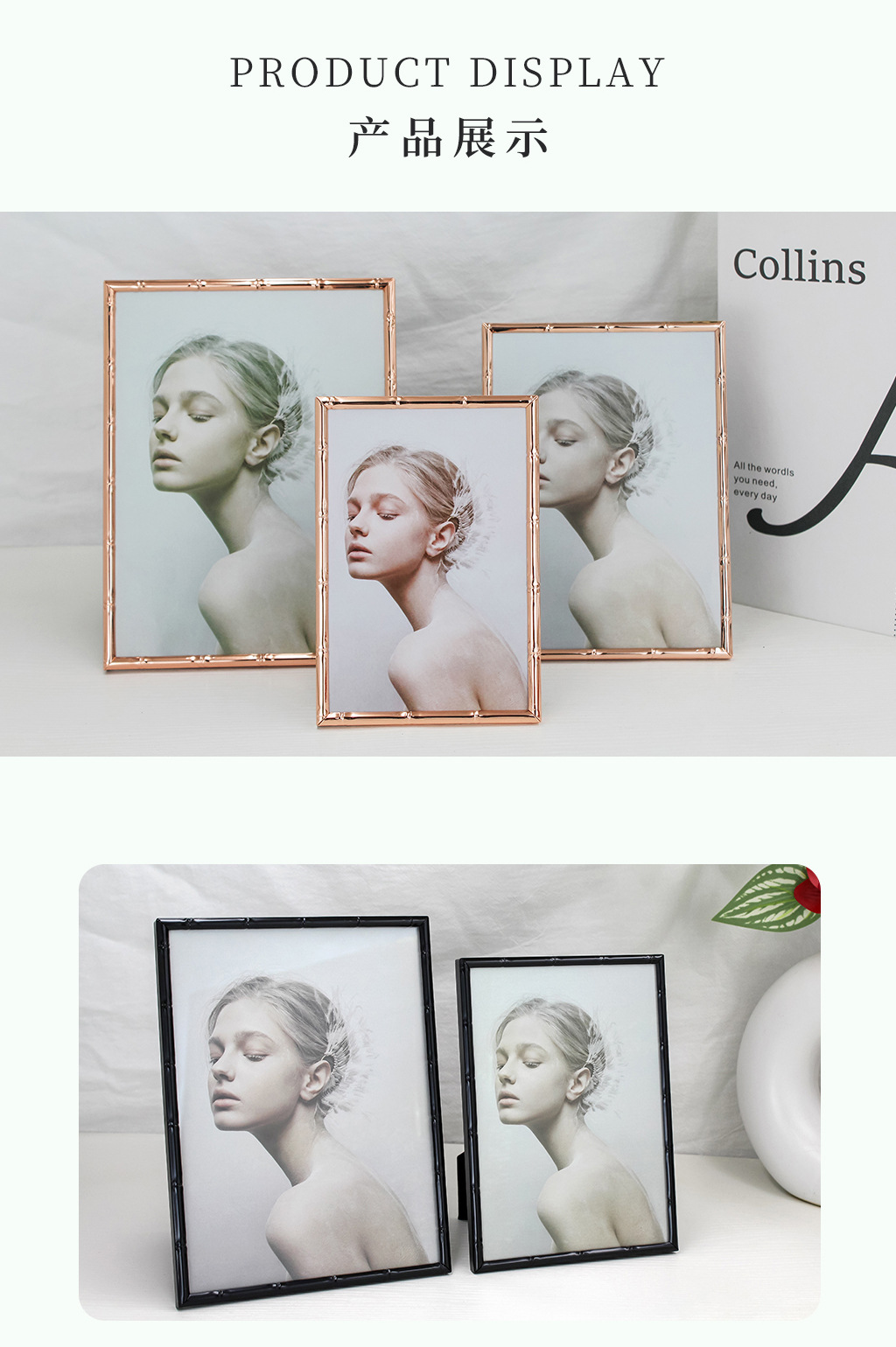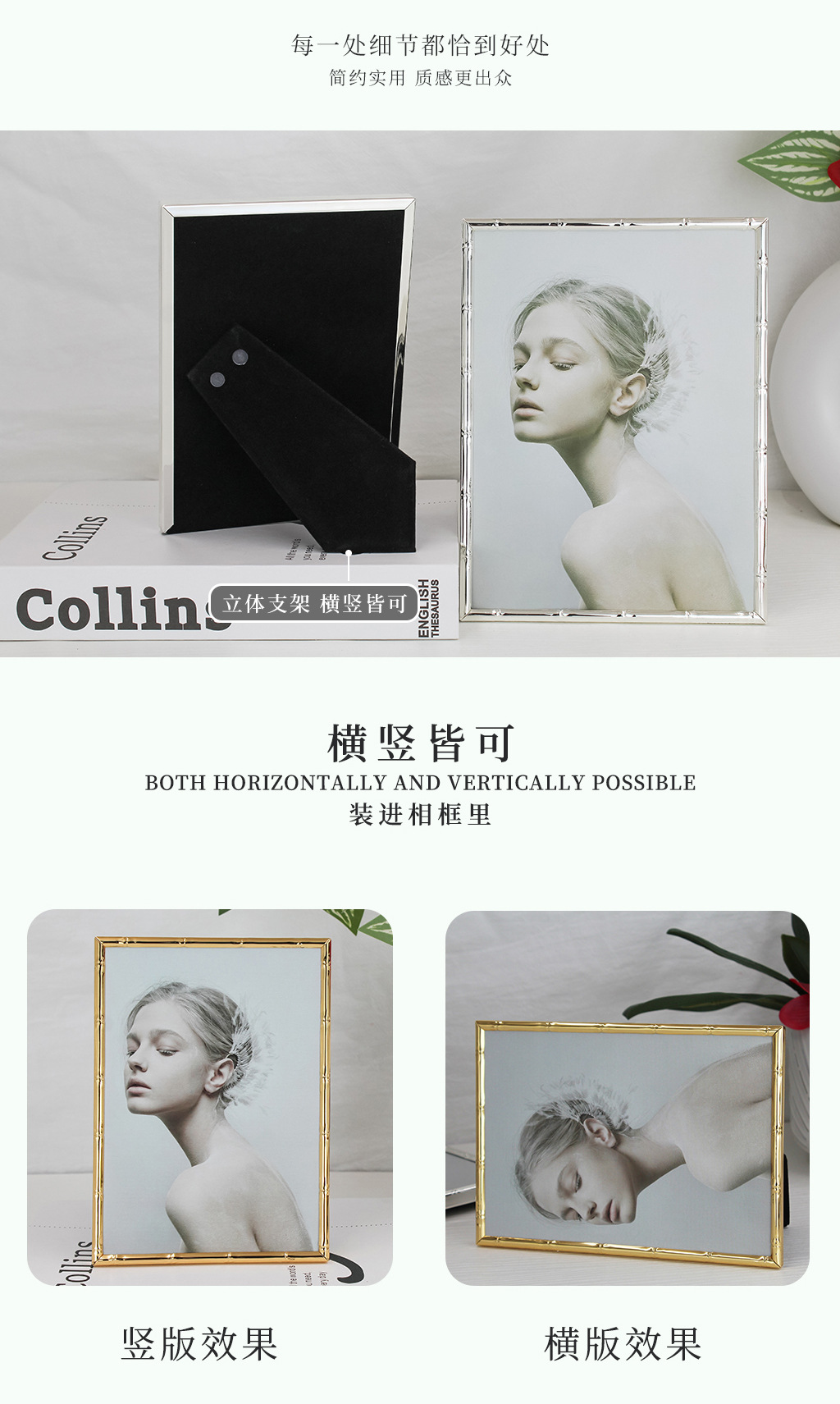 심플한 좁은 테두리의 대나무 무늬 금속 액자, 철제 골드 컬러 7inch A4 사이즈, 벽걸이형 사진액자, 서재용 그림액자
