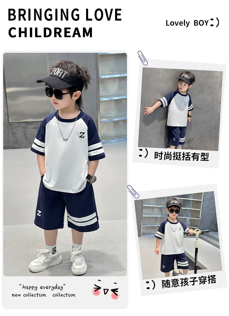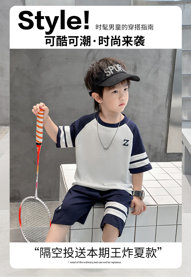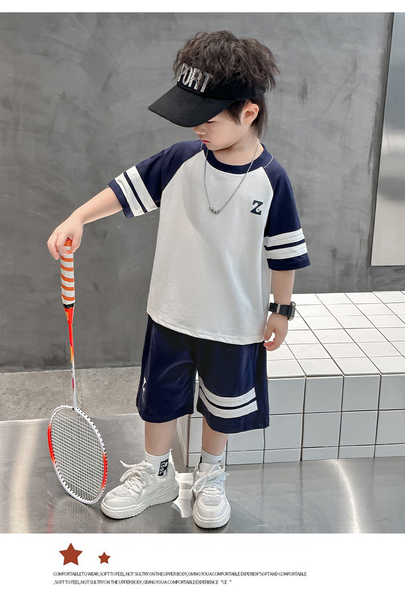 남아 여름 스포츠웨어 세트 2026년 신상 반팔 반바지 멋스럽고 시원한 소년용 통기성 좋은 패셔너블한 투피스 세트스토어 가기