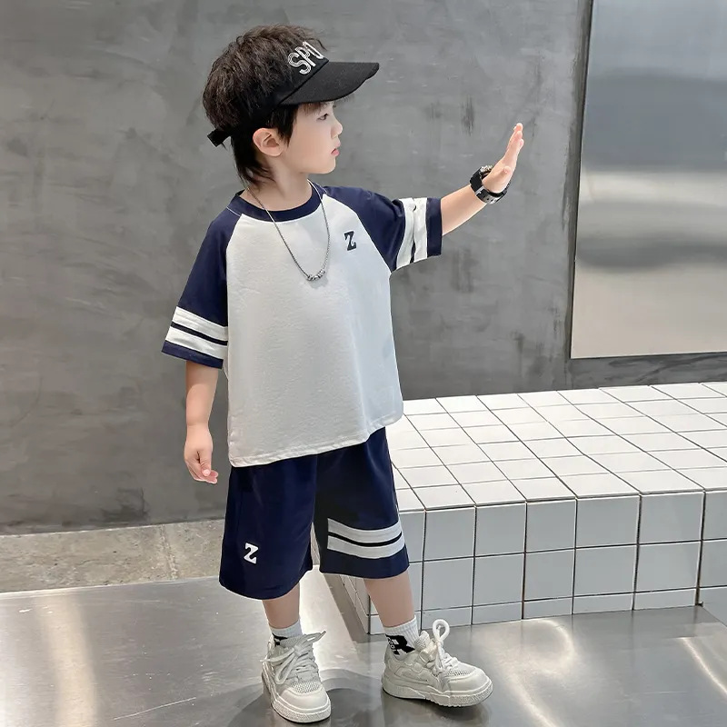 남아 여름 스포츠웨어 세트 2026년 신상 반팔 반바지 멋스럽고 시원한 소년용 통기성 좋은 패셔너블한 투피스 세트