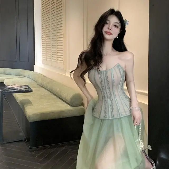 바이페이 프렌치 스타일 보정속옷 레트로풍 순수 레이스 슬립탑 외출복으로도 착용 가능 슬림핏 피쉬본 이너탑 여성용