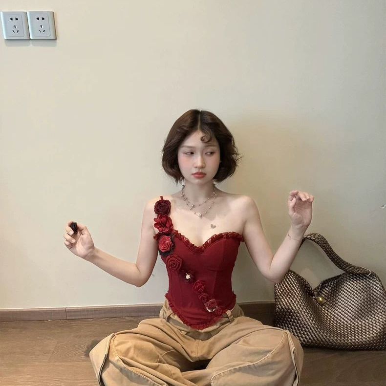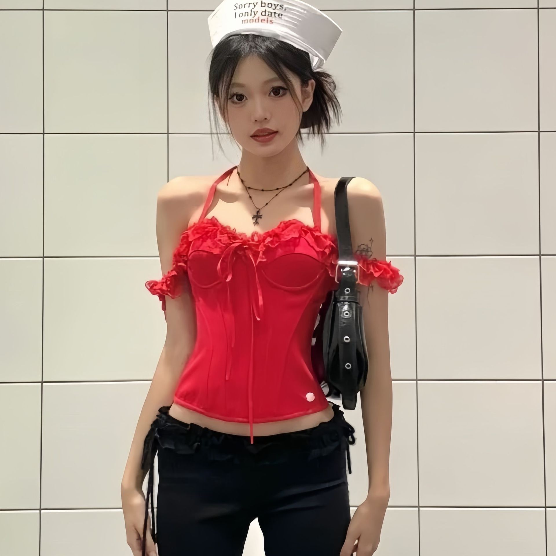 바이페이 프렌치 스타일 보정속옷 레트로풍 순수 레이스 슬립탑 외출복으로도 착용 가능 슬림핏 피쉬본 이너탑 여성용스토어 가기