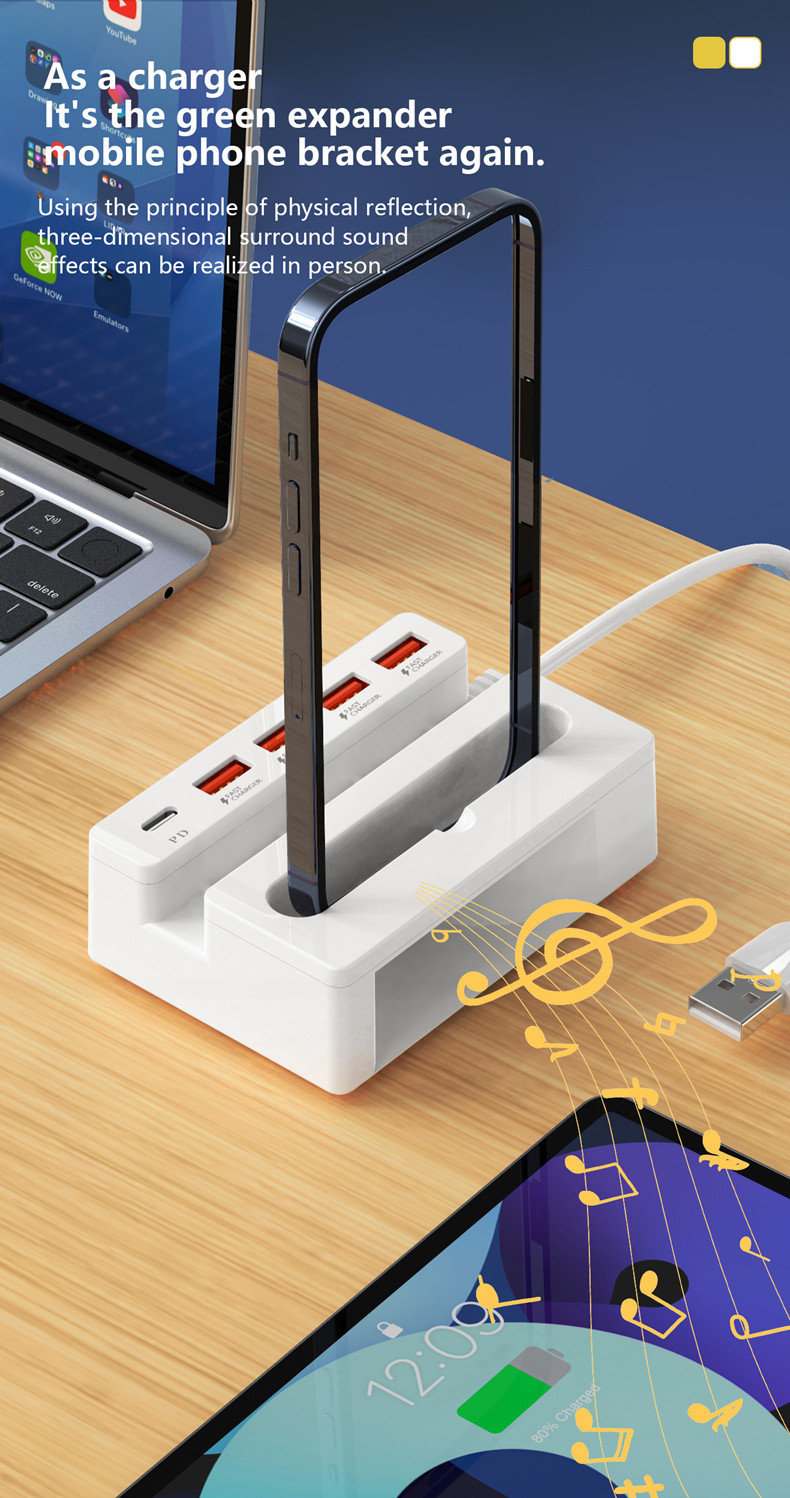 국경 간 USB 확장 도크 5 대 1 브래킷 플러그인 독립형 스피커 휴대 전화 브래킷 도킹 스테이션 usb 컨버터