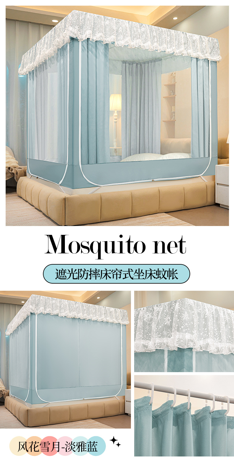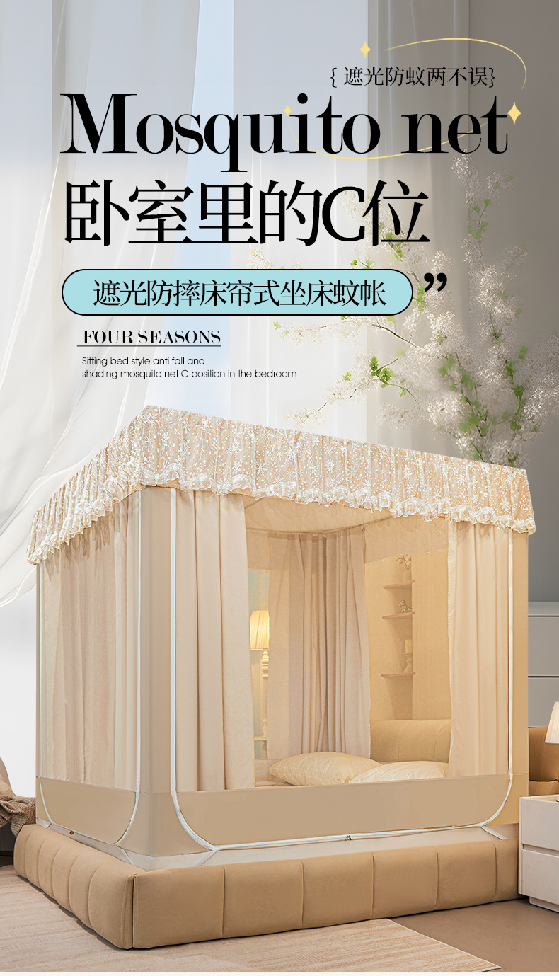 가정용 좌석 침대 모기장 그물 음영 침대 커튼 통합 낙하 방지 완전 밀폐 바람 방지 유르트 방진 침대 맨틀 바닥 반환 유형스토어 가기