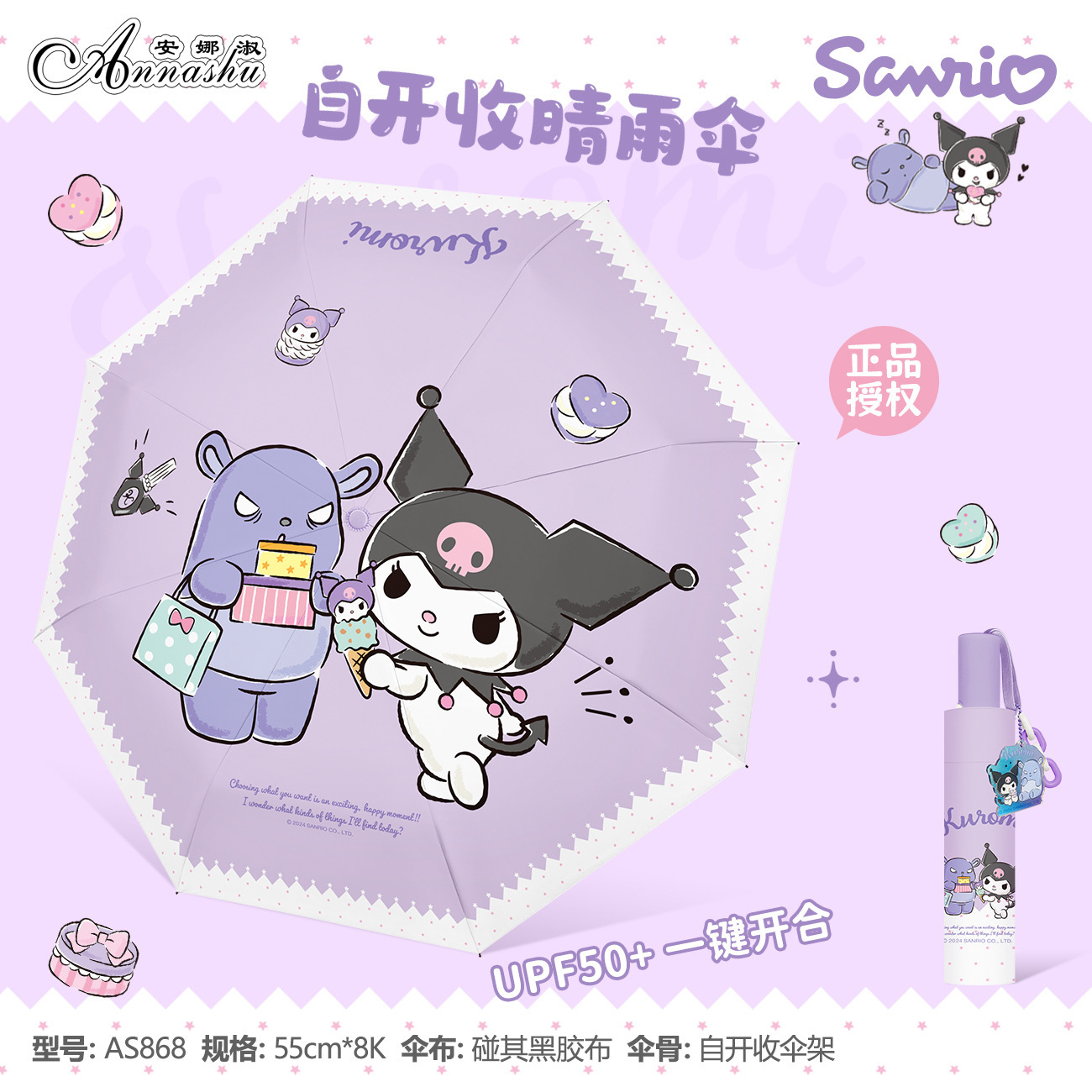 정품 산리오 우산 유귀 개 태양 우산 써니 비 이중 목적 태양 보호 자외선 보호 3 배 자동 우산스토어 가기