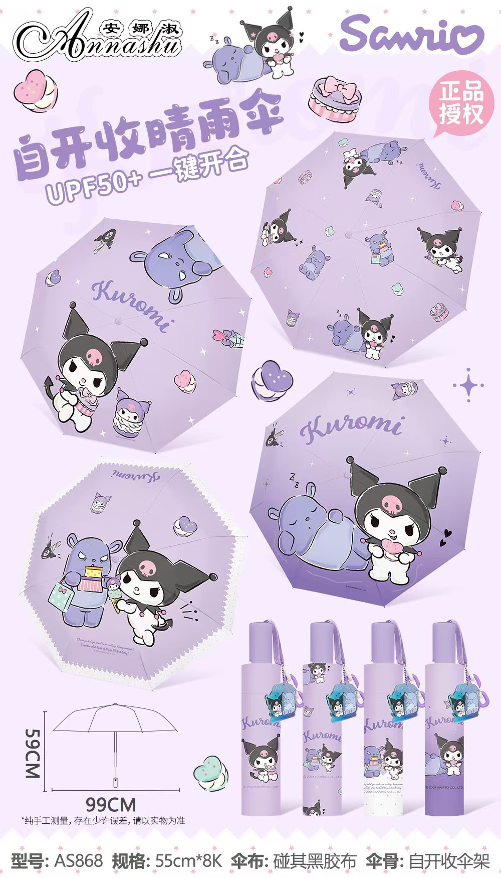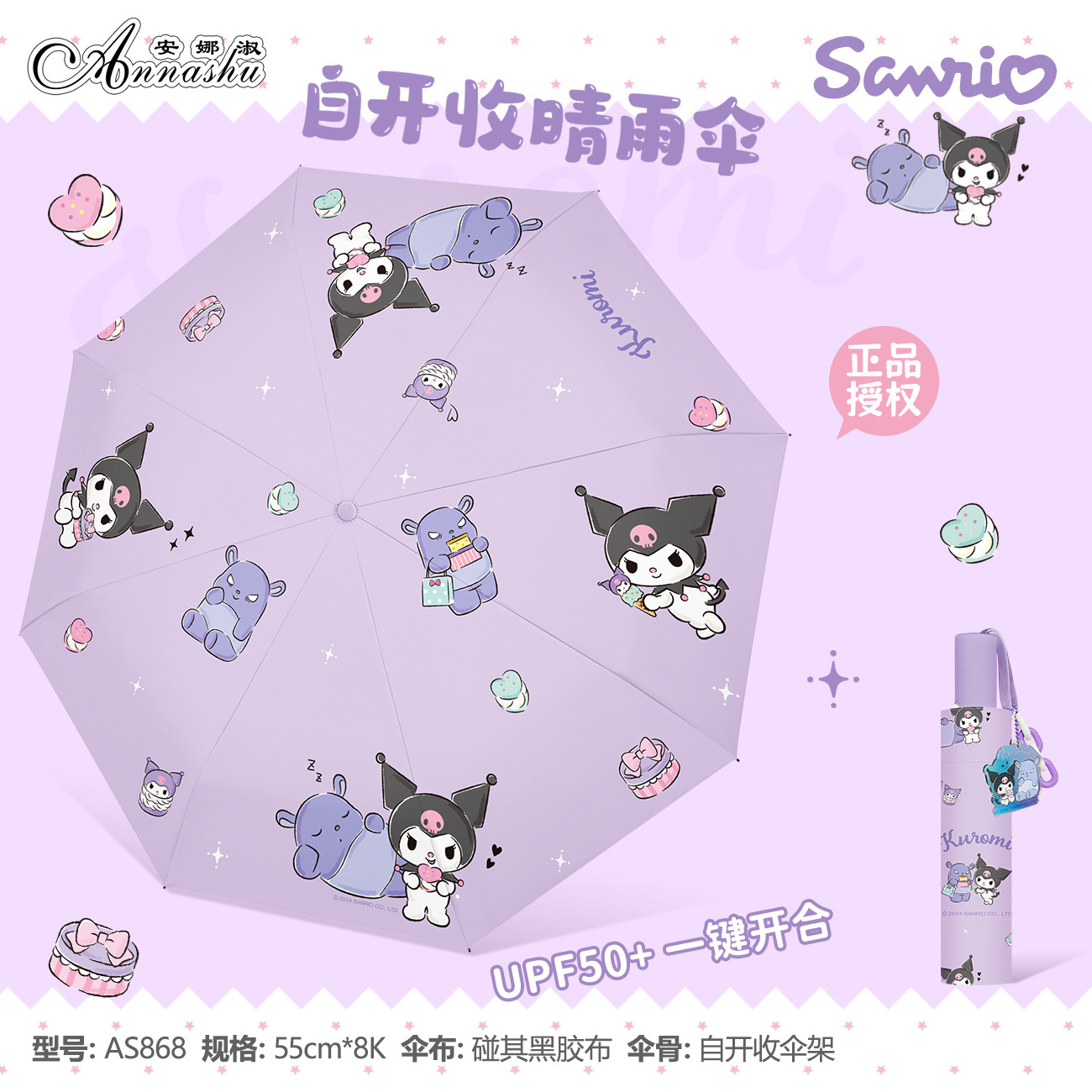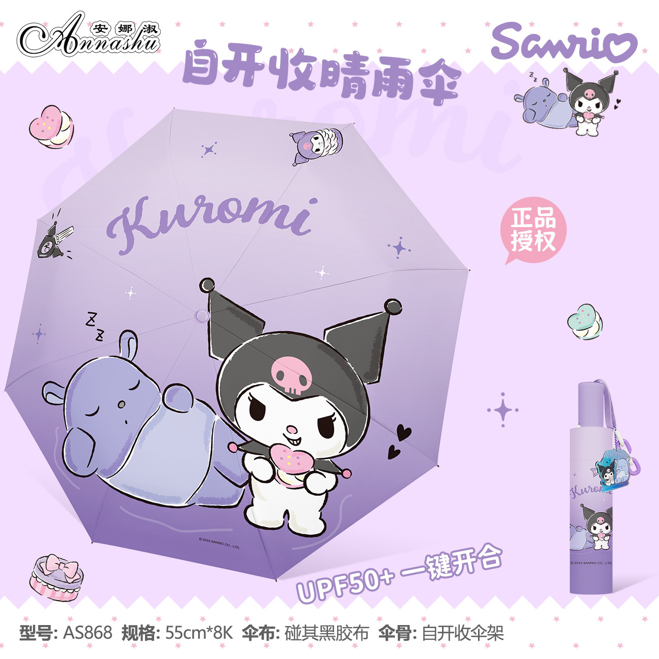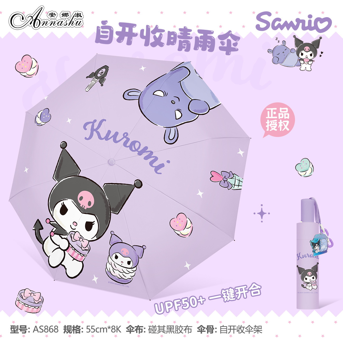 정품 산리오 우산 유귀 개 태양 우산 써니 비 이중 목적 태양 보호 자외선 보호 3 배 자동 우산