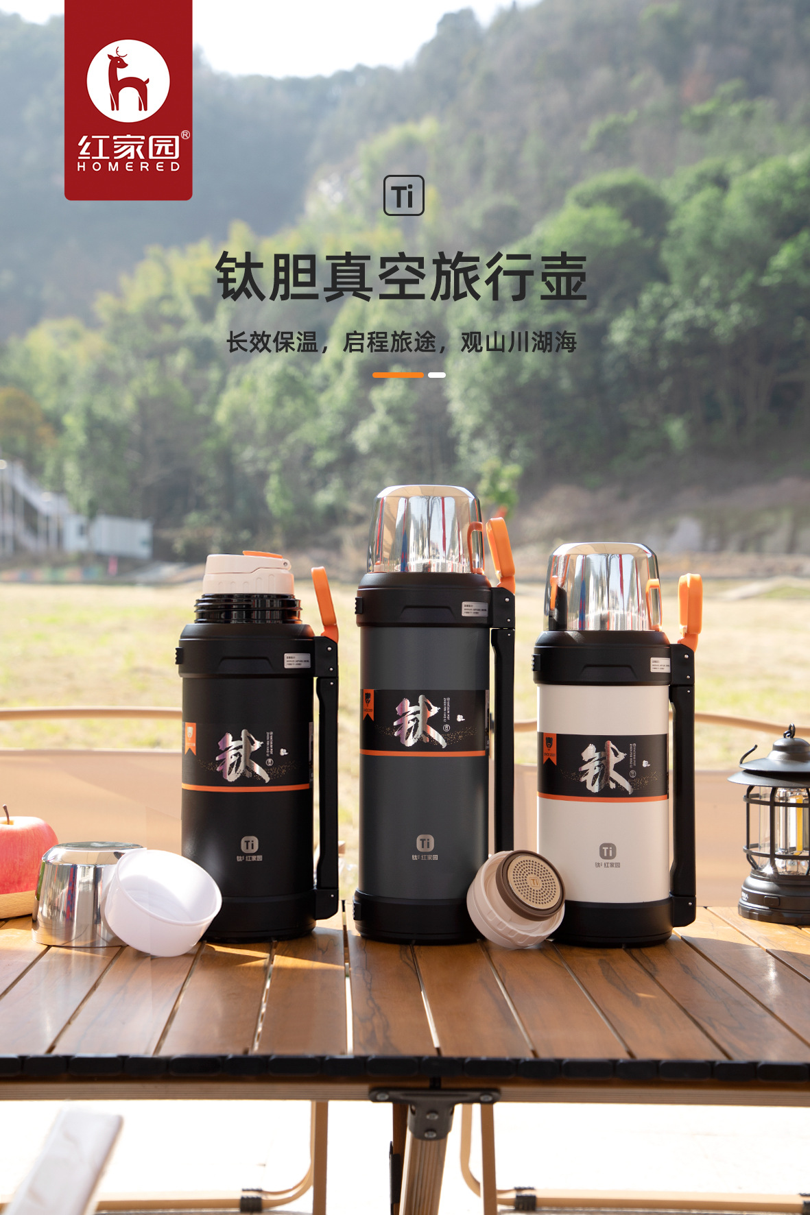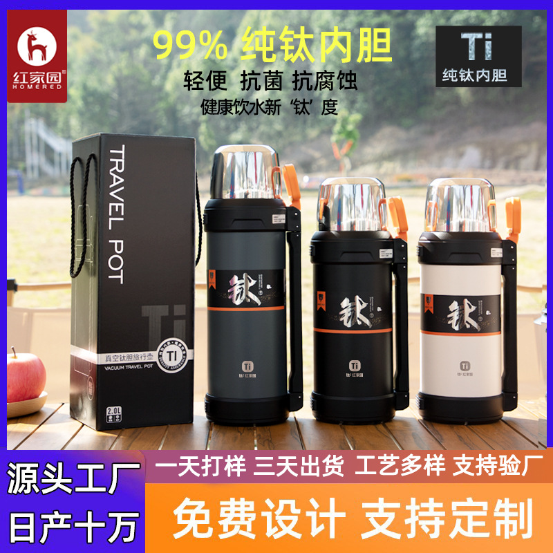 Hongjiayuan 순수 티타늄 여행 냄비 휴대용 야외 등산 주전자 대용량 2L 다기능 찐 차 열 냄비스토어 가기