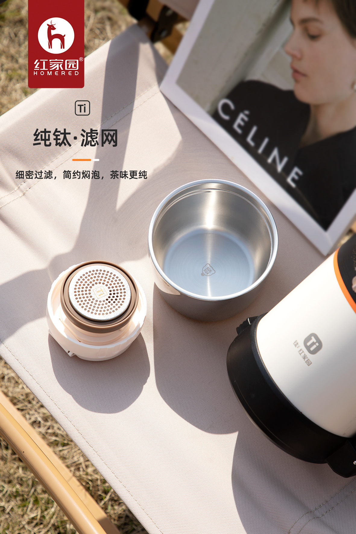 Hongjiayuan 순수 티타늄 여행 냄비 휴대용 야외 등산 주전자 대용량 2L 다기능 찐 차 열 냄비
