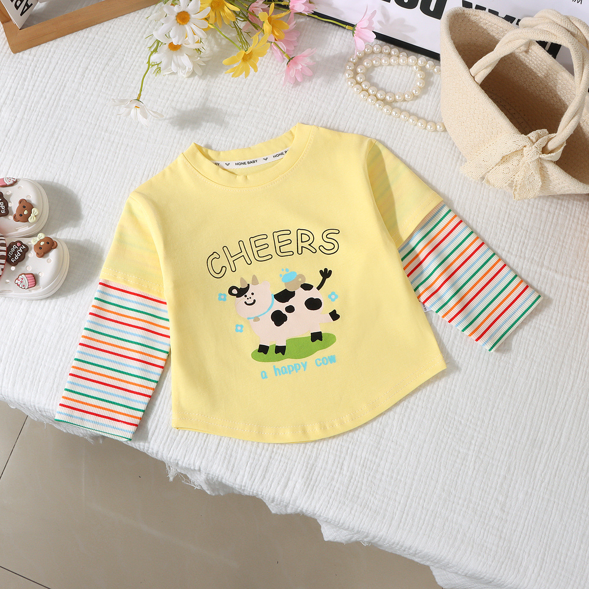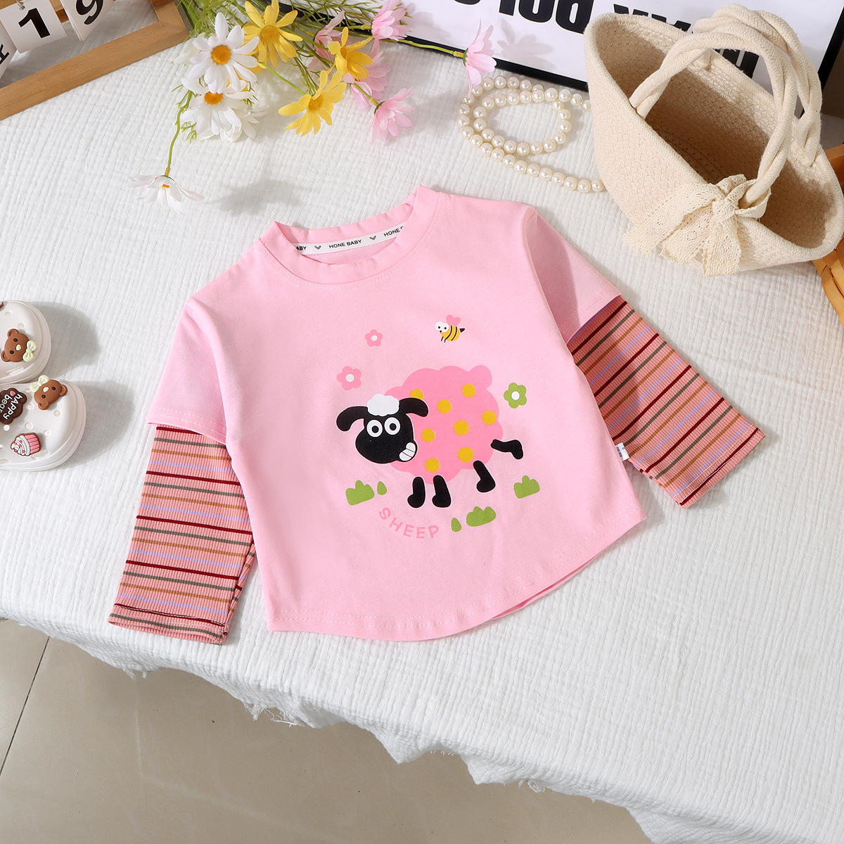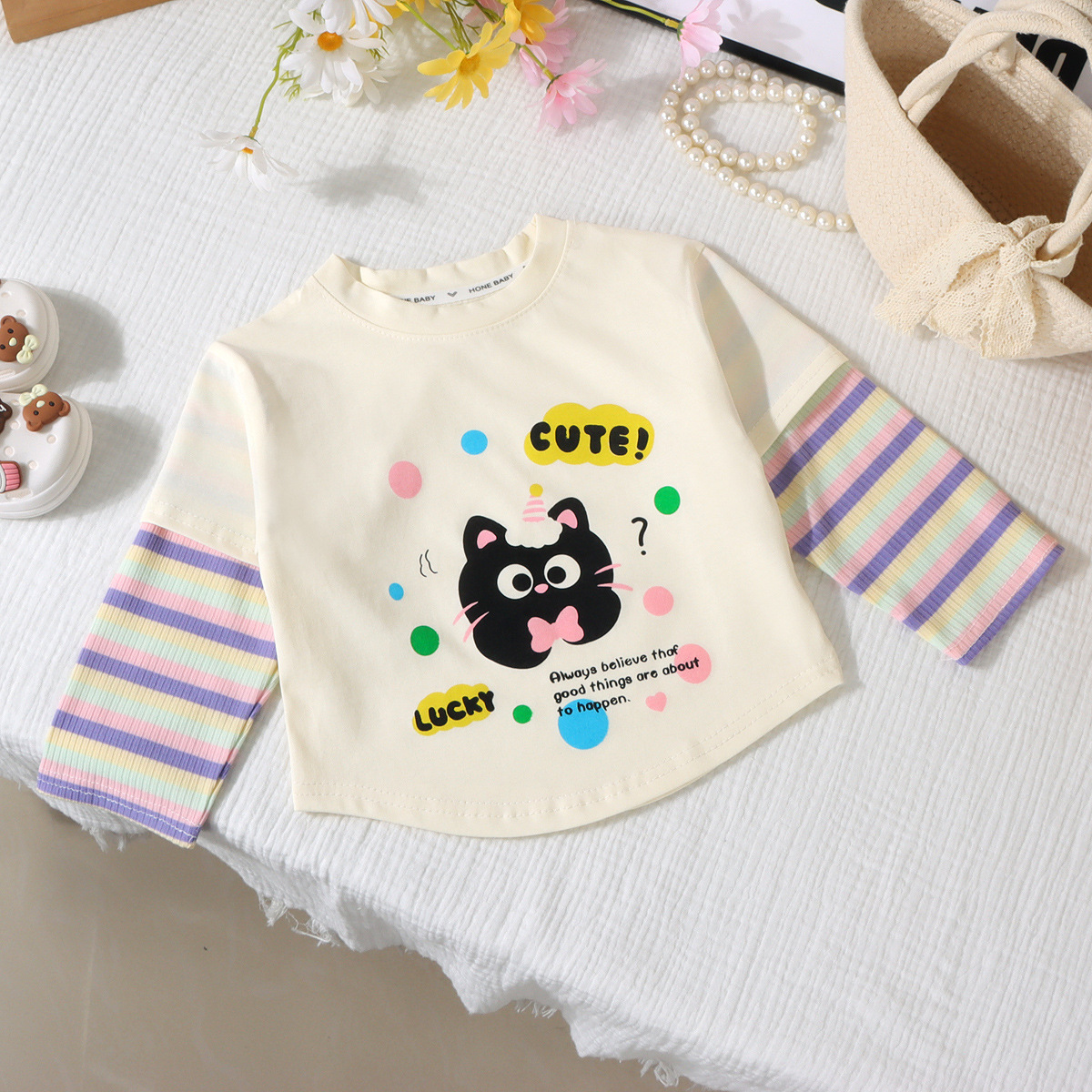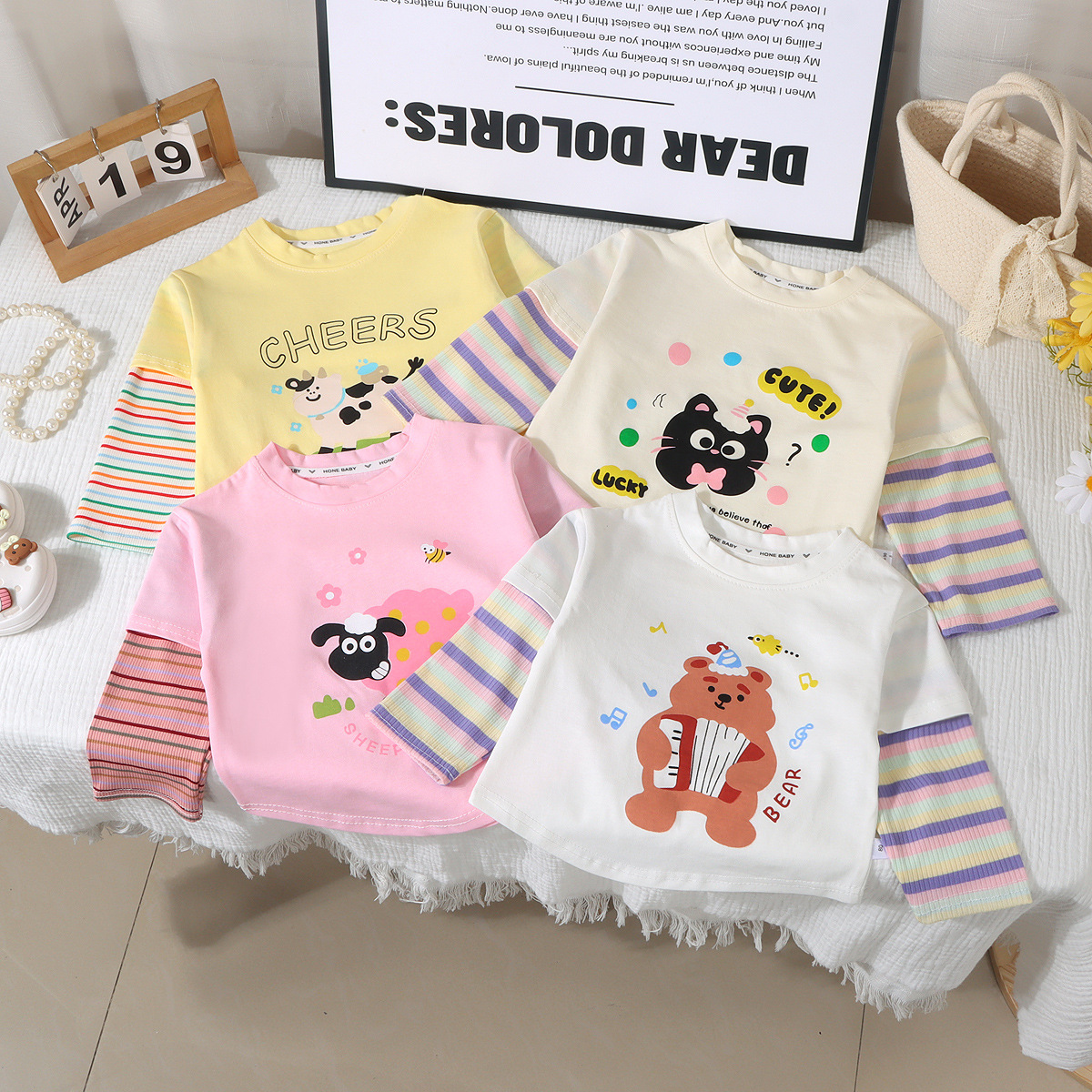 아기의베이스 셔츠 봄과 가을 소녀 패션 티셔츠 어린이 긴 소매 어린이 봄과 가을 가짜 투피스 탑스토어 가기