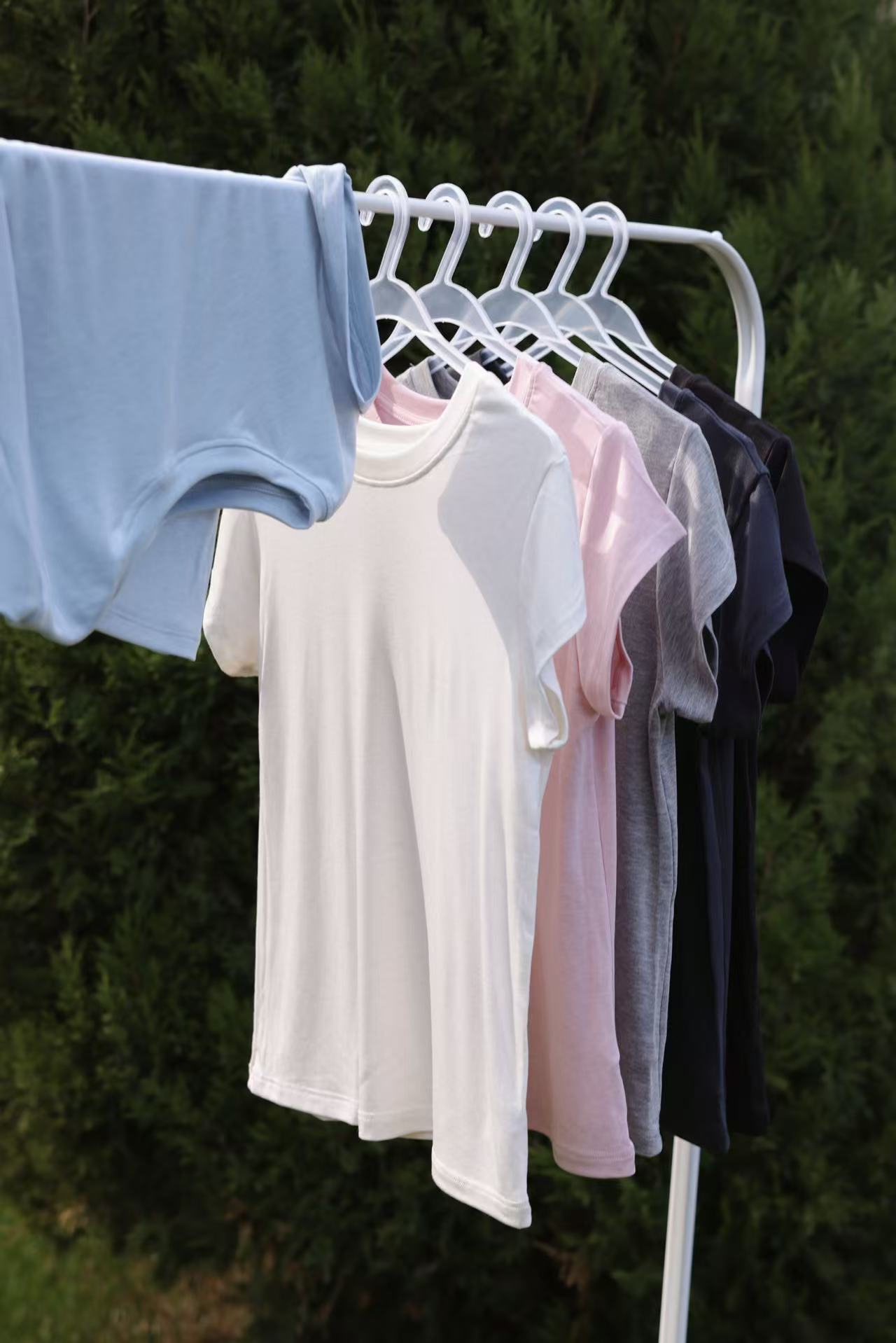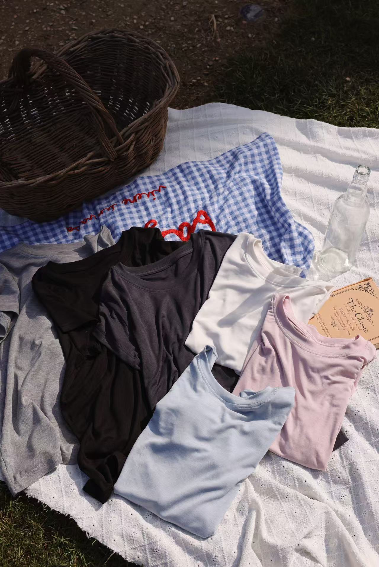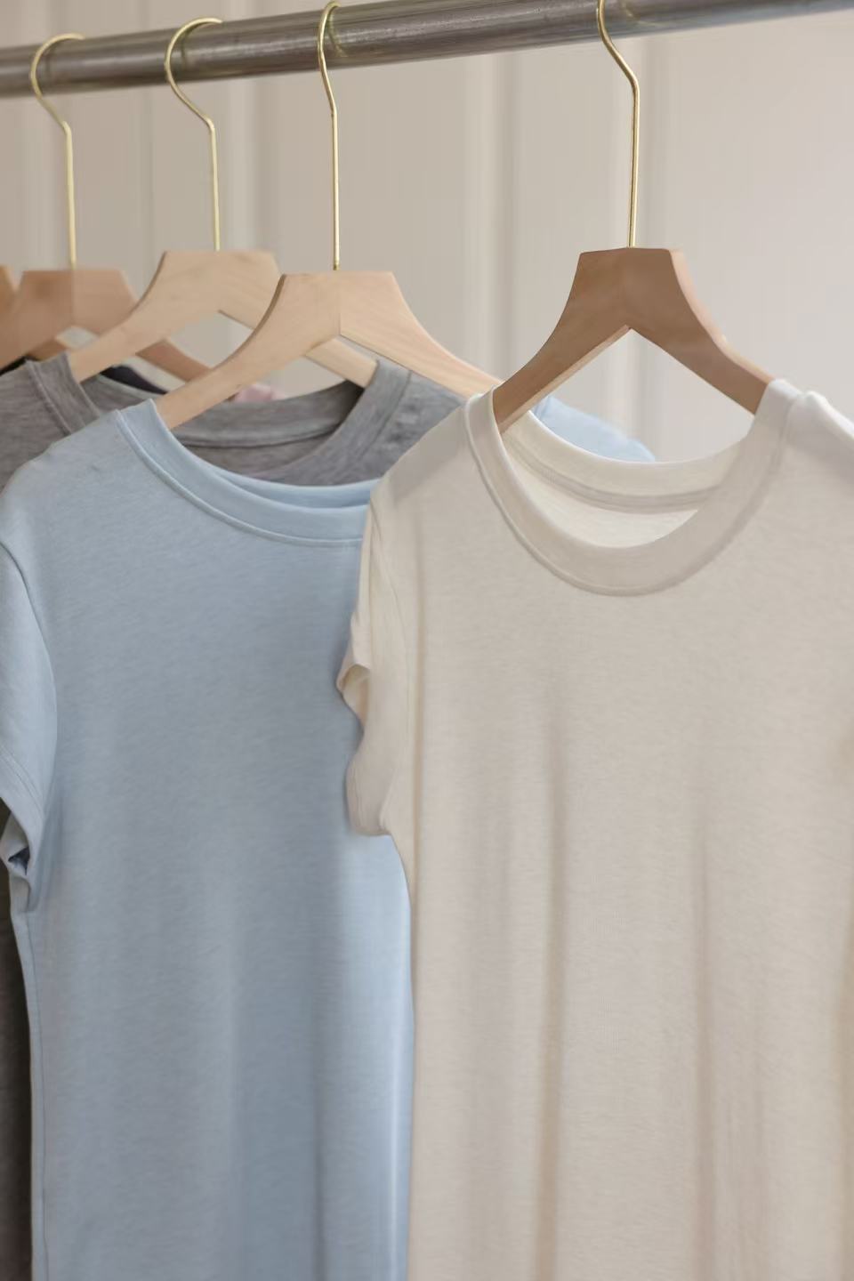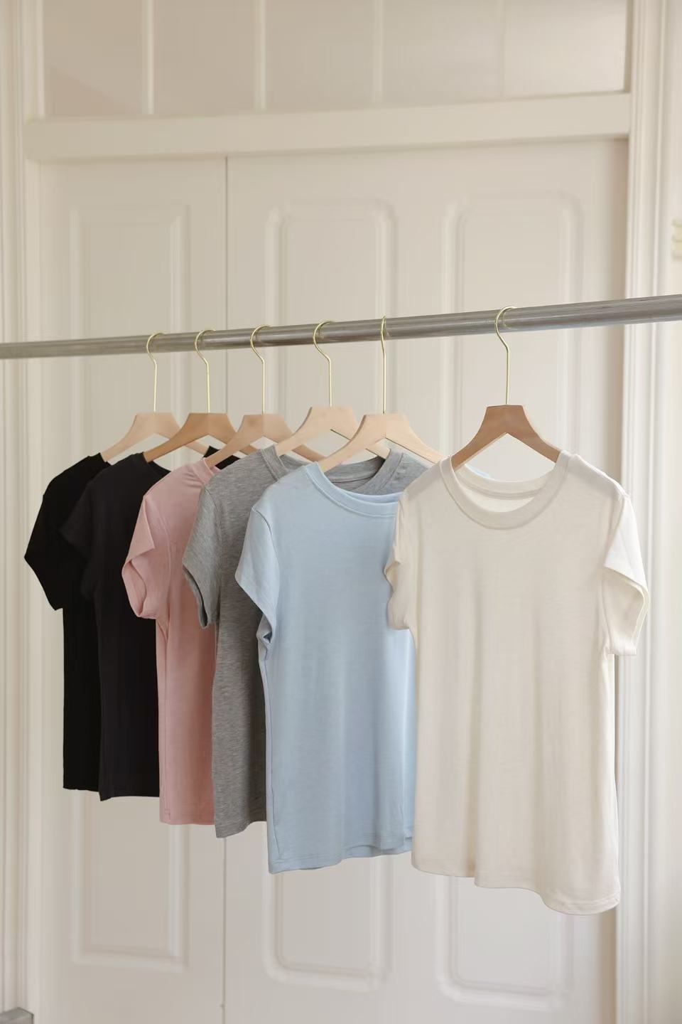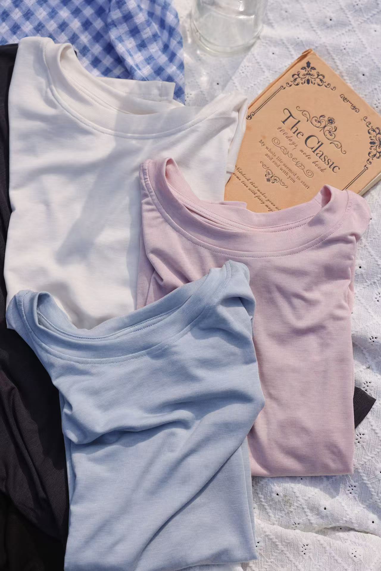 2025 새로운 솔리드 컬러 반팔 어깨 티셔츠 여성용 여름 슬림핏 심플 올 매치 탑 인스 타 그램 패셔너블 9962스토어 가기