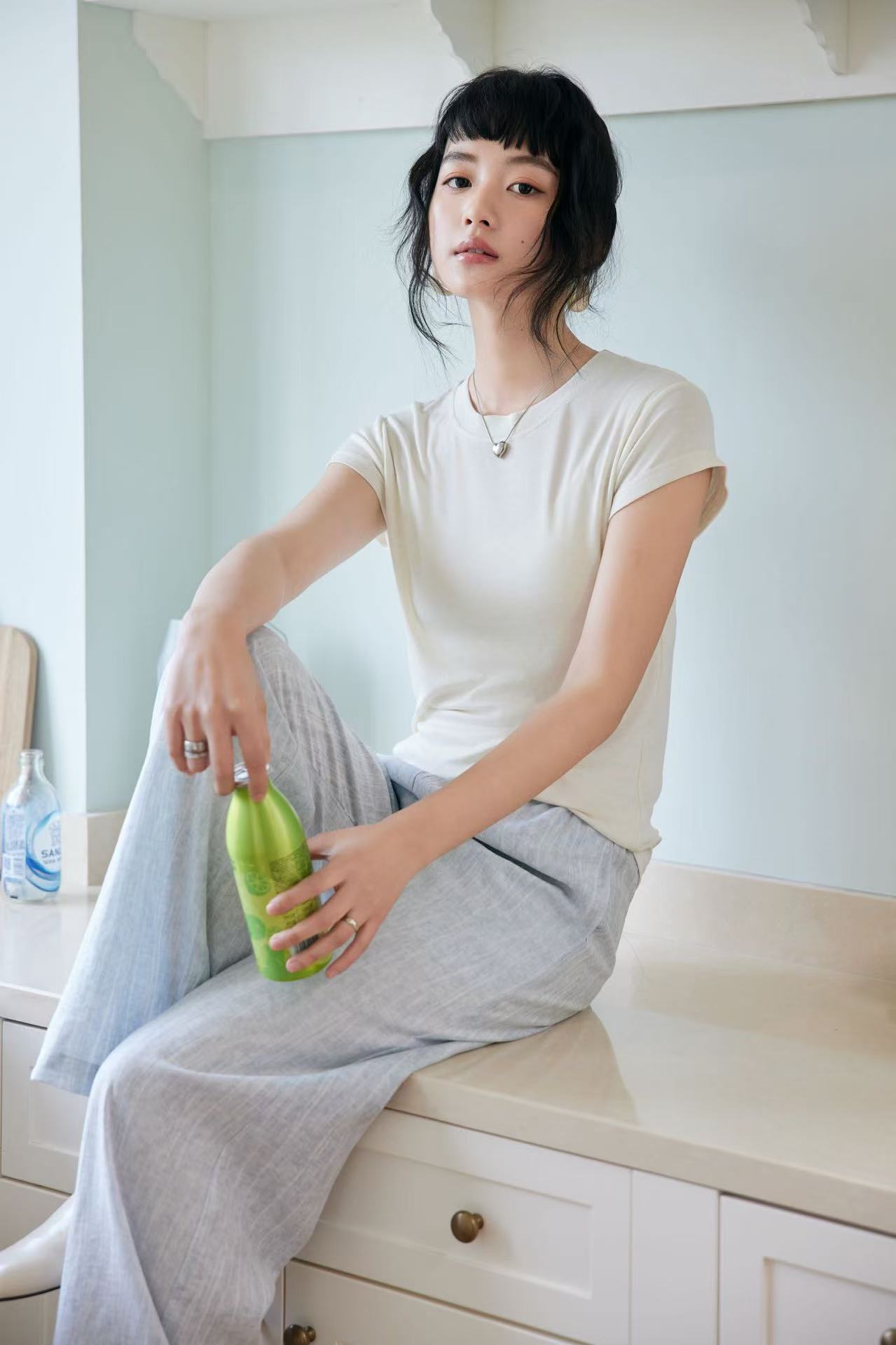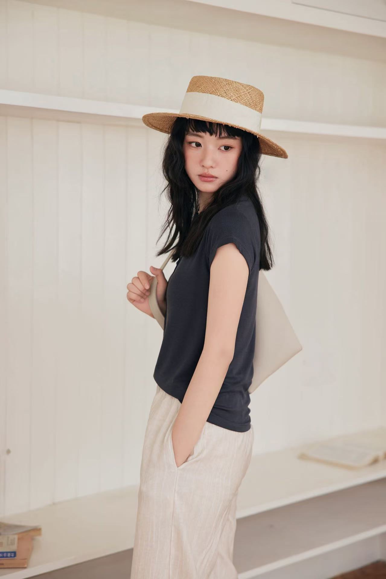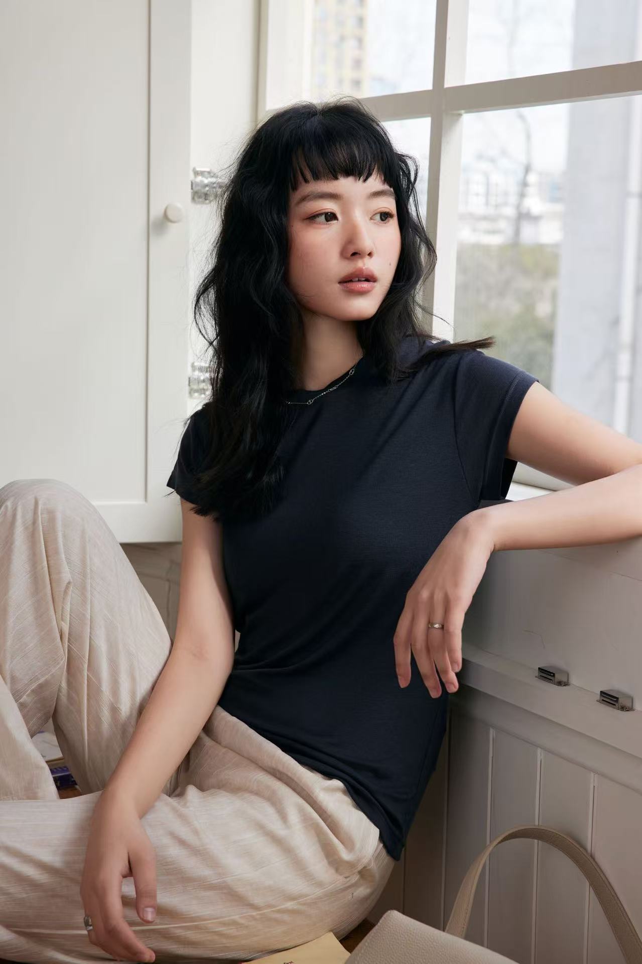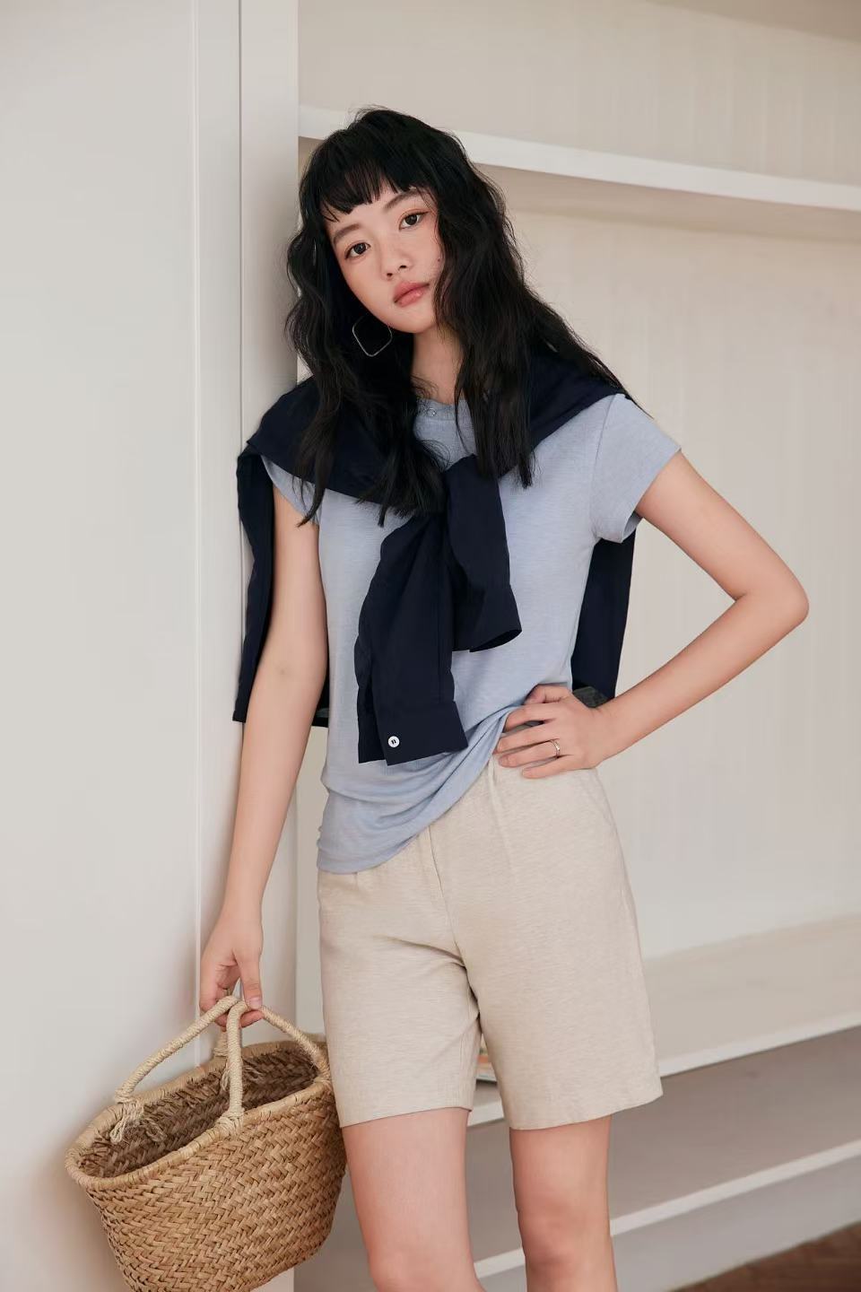 2025 새로운 솔리드 컬러 반팔 어깨 티셔츠 여성용 여름 슬림핏 심플 올 매치 탑 인스 타 그램 패셔너블 9962스토어 가기