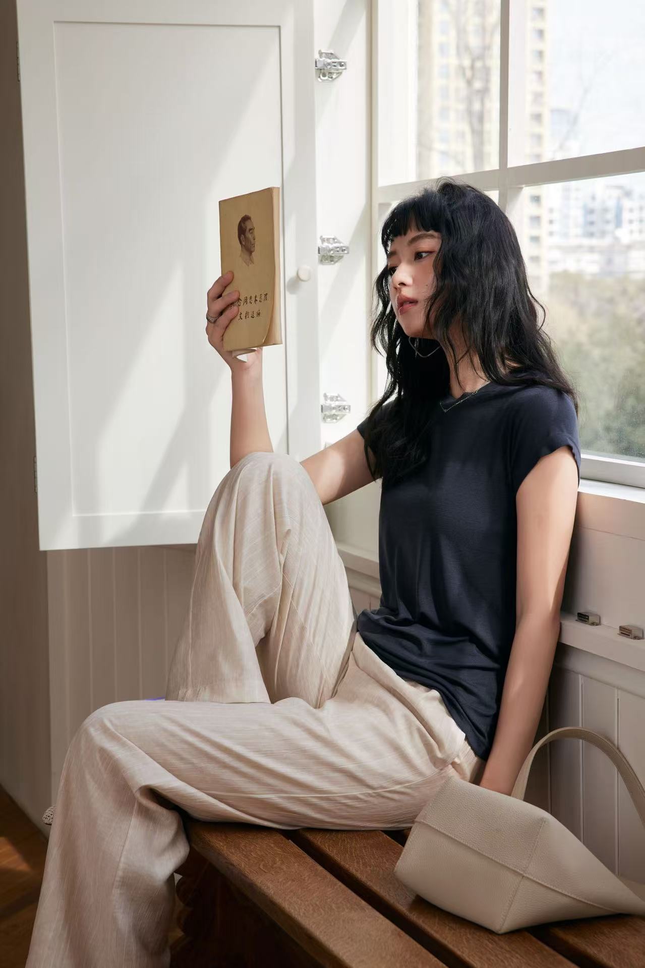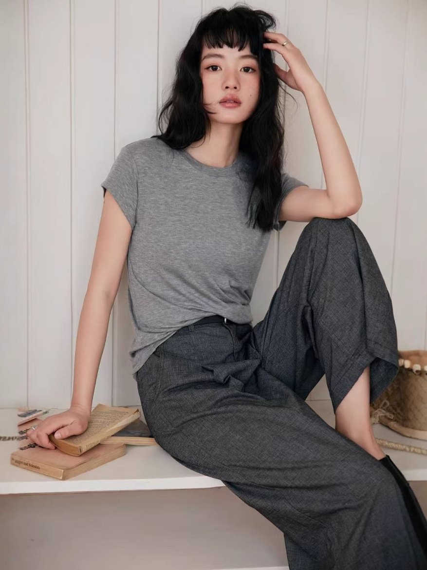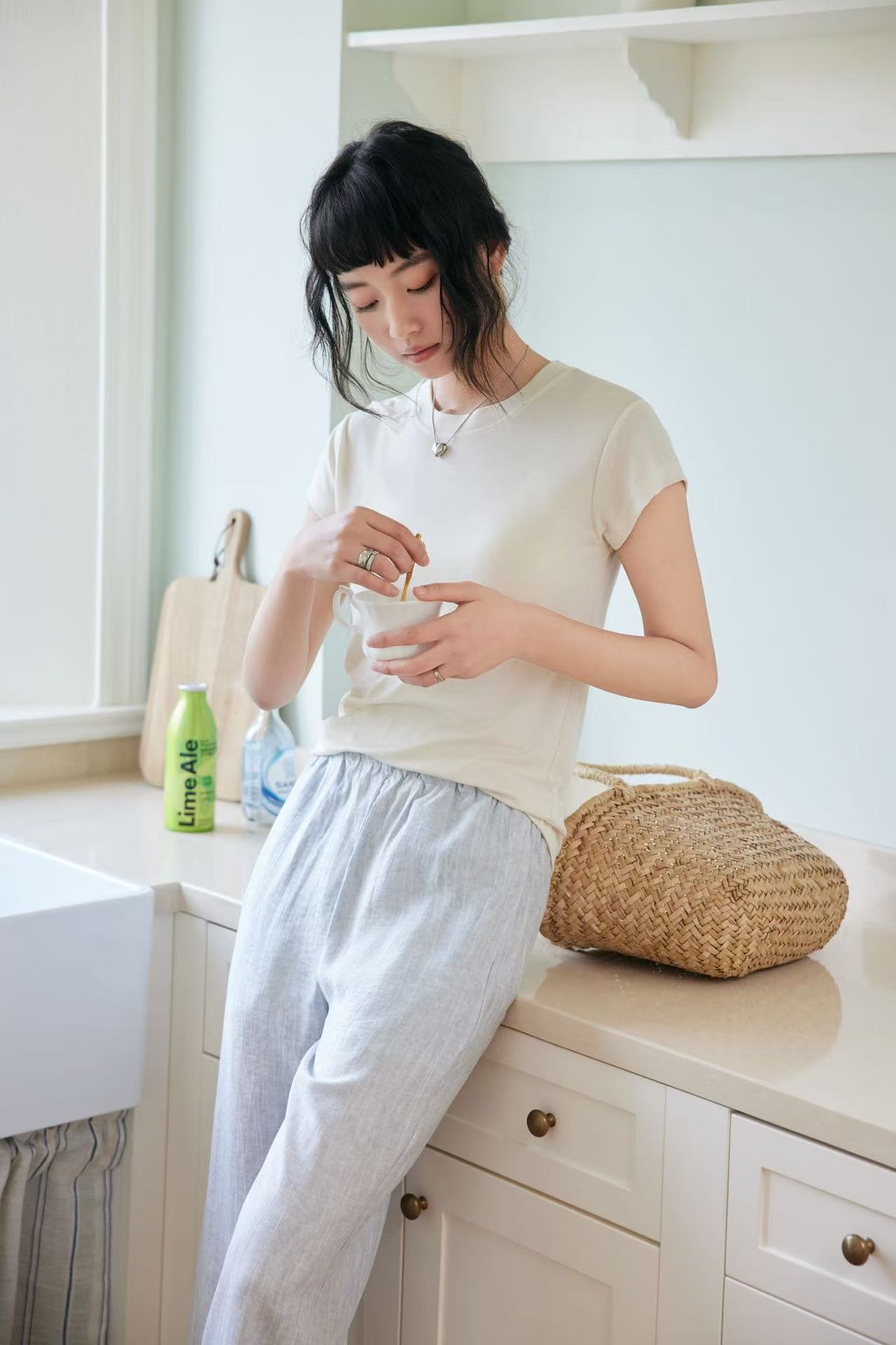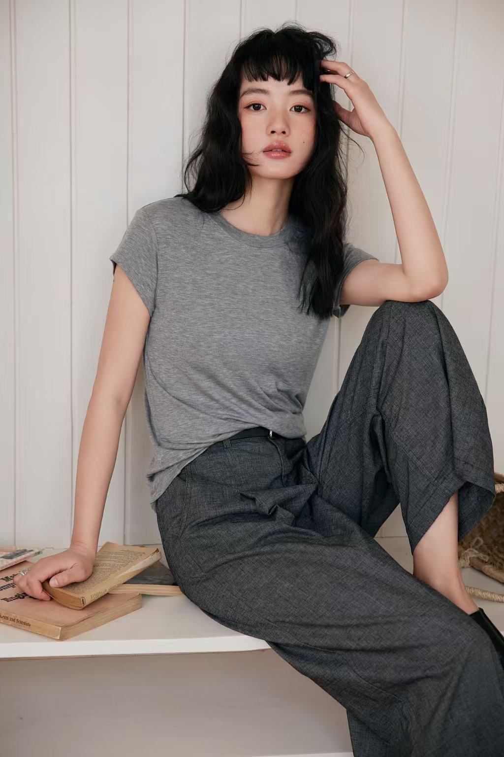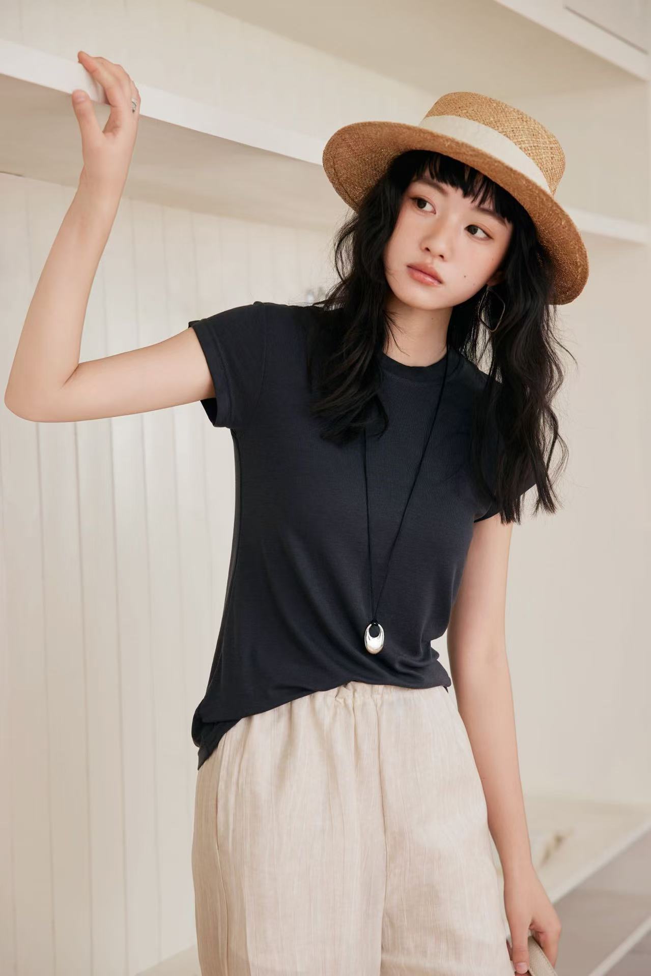 2025 새로운 솔리드 컬러 반팔 어깨 티셔츠 여성용 여름 슬림핏 심플 올 매치 탑 인스 타 그램 패셔너블 9962스토어 가기