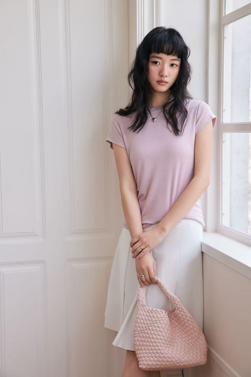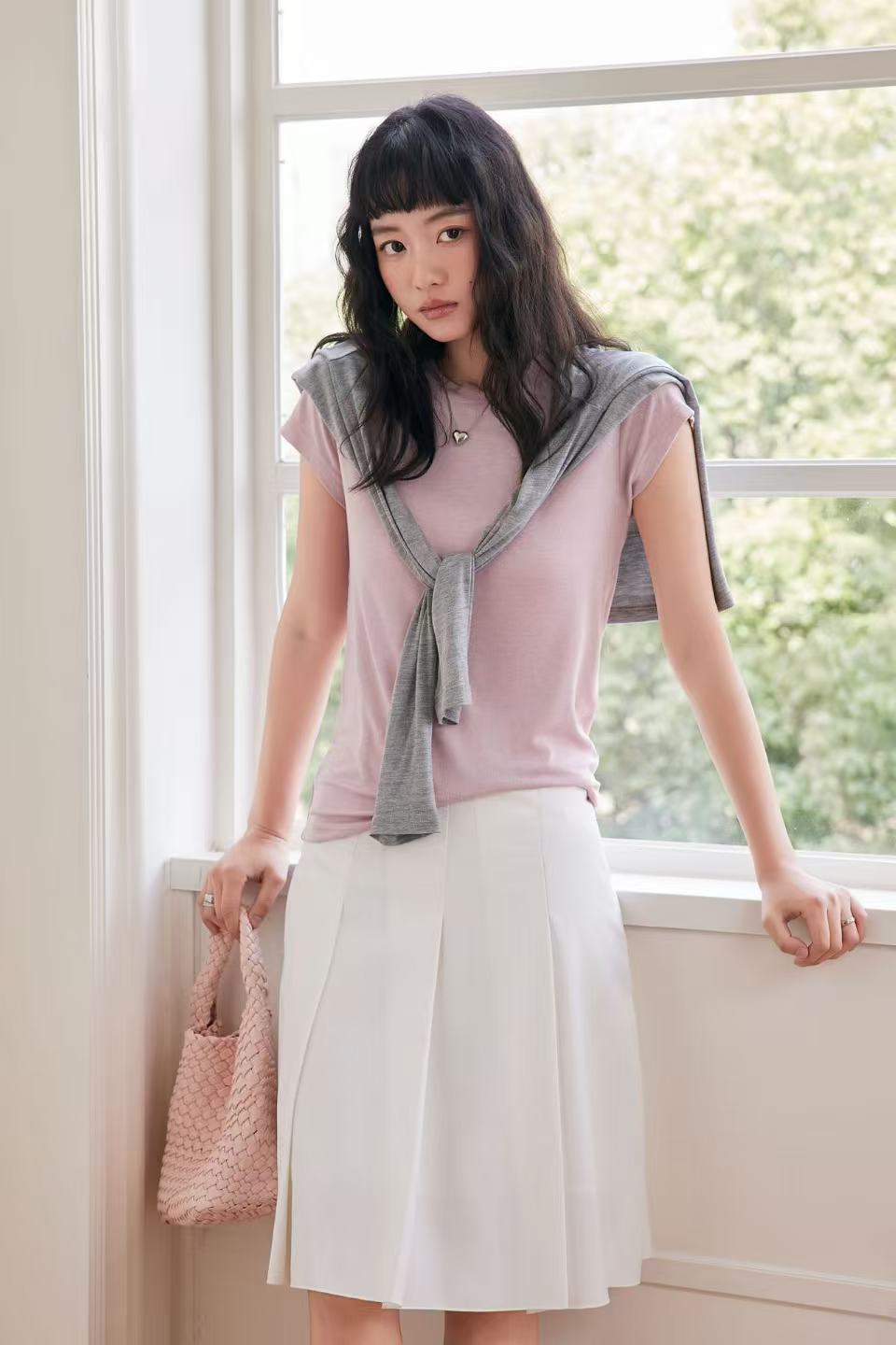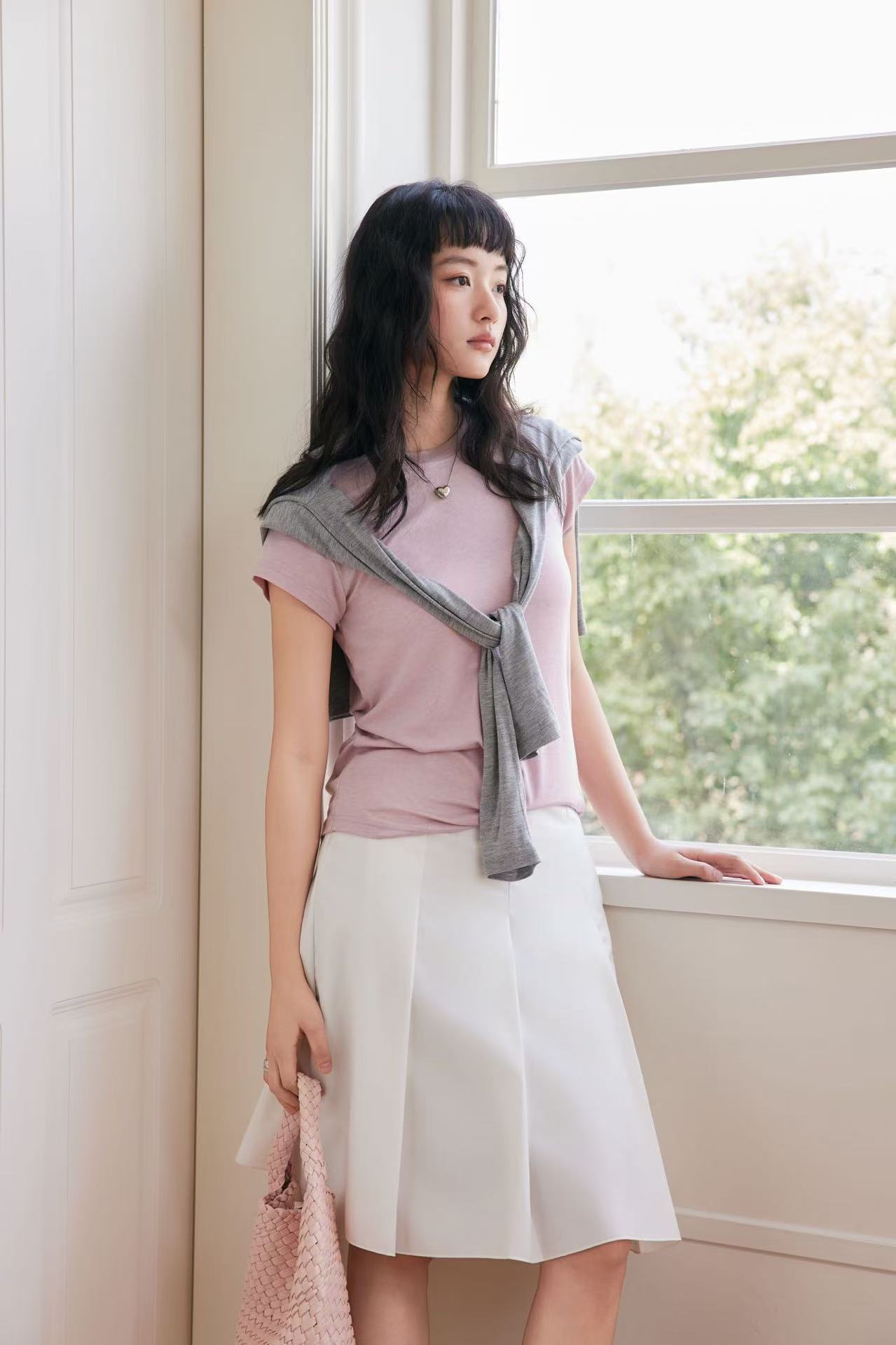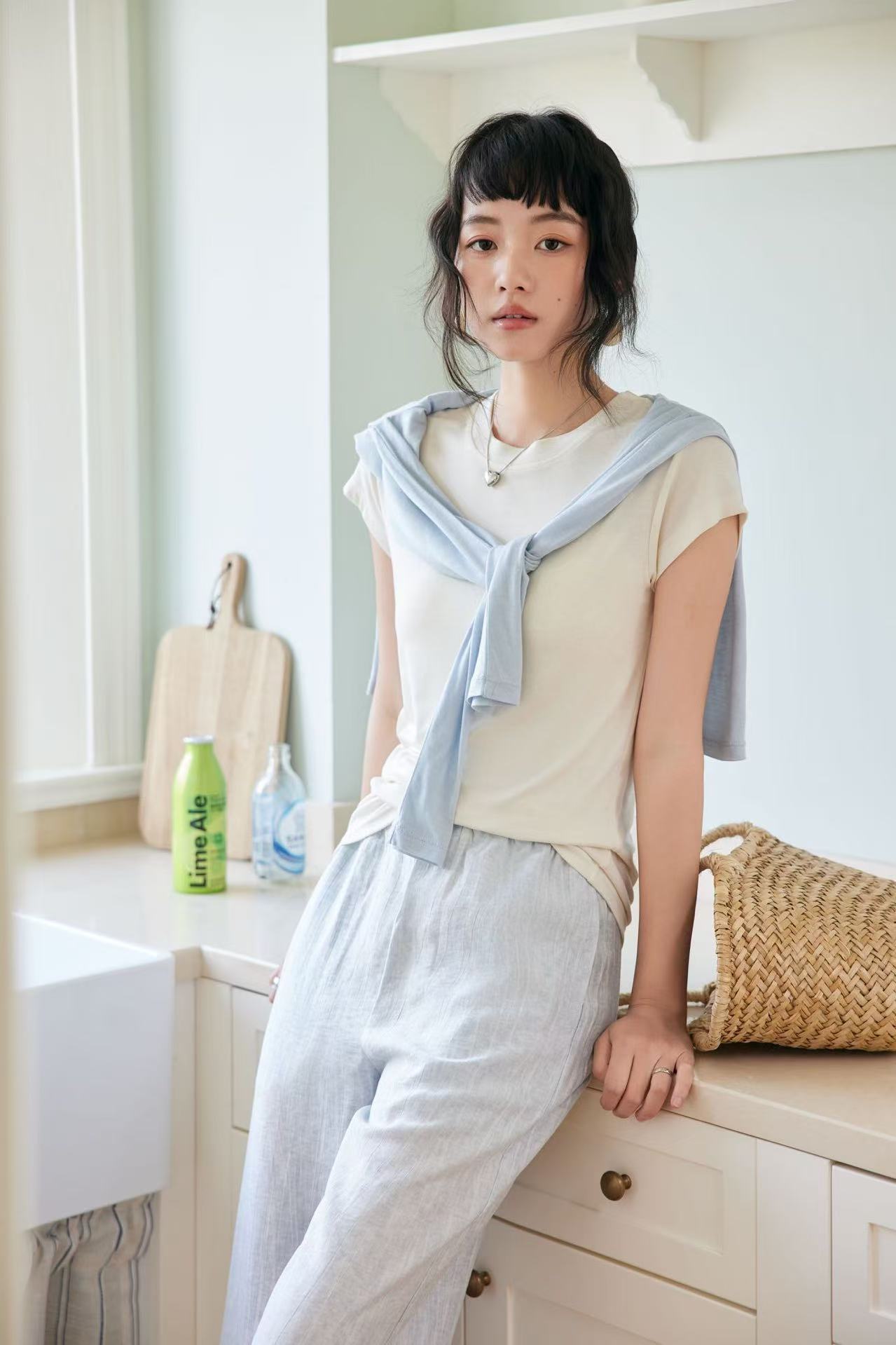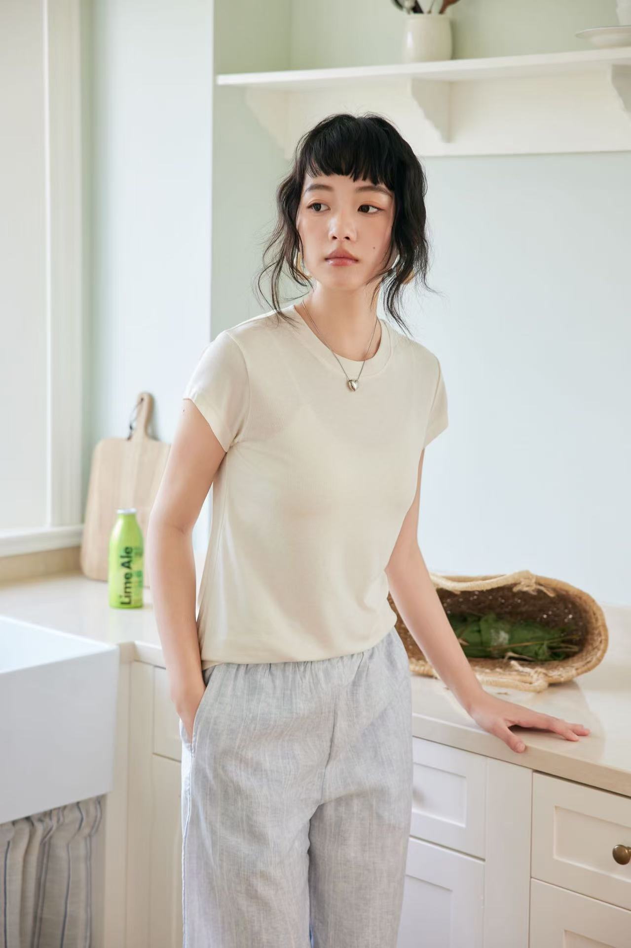 2025 새로운 솔리드 컬러 반팔 어깨 티셔츠 여성용 여름 슬림핏 심플 올 매치 탑 인스 타 그램 패셔너블 9962스토어 가기