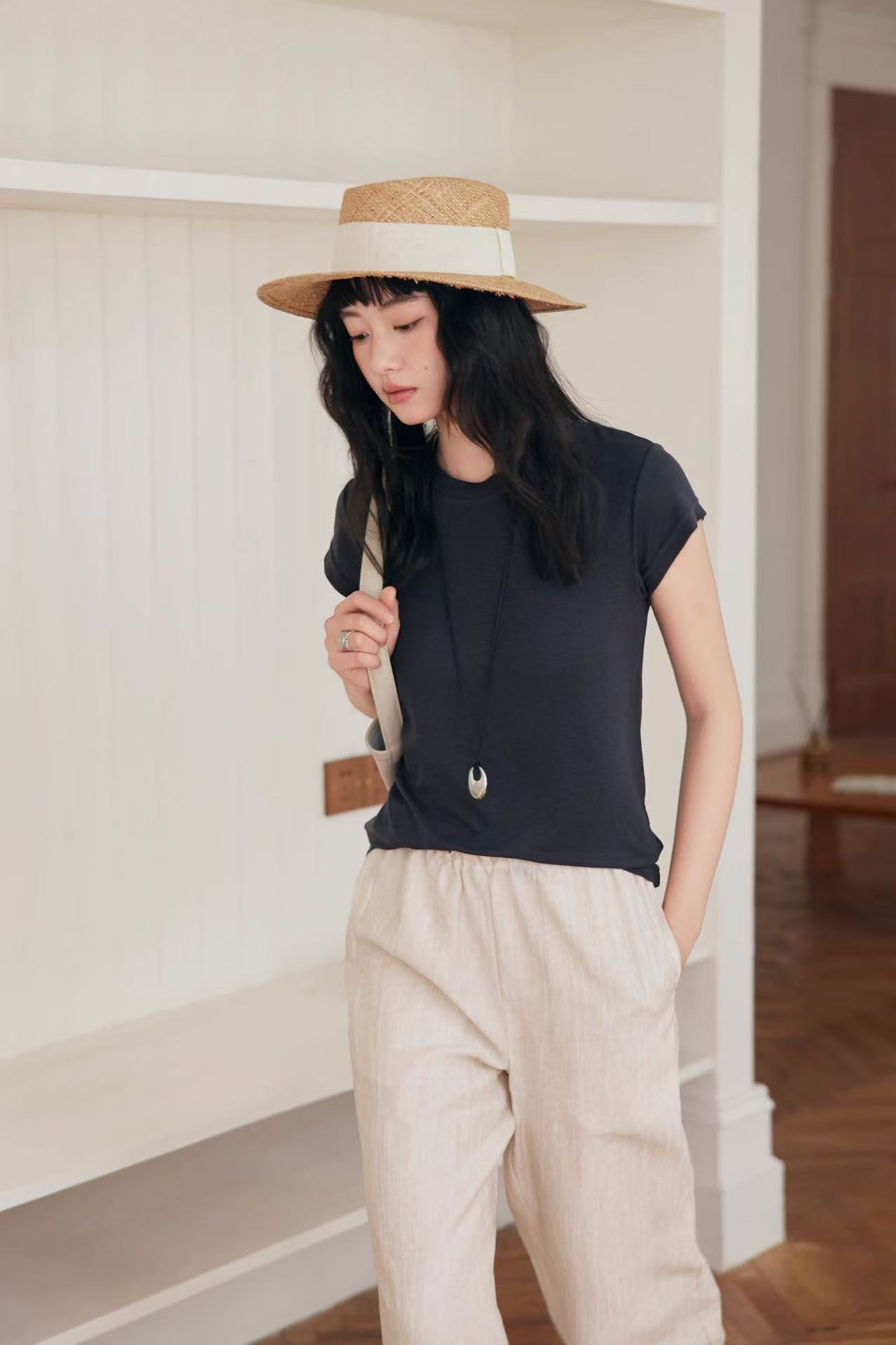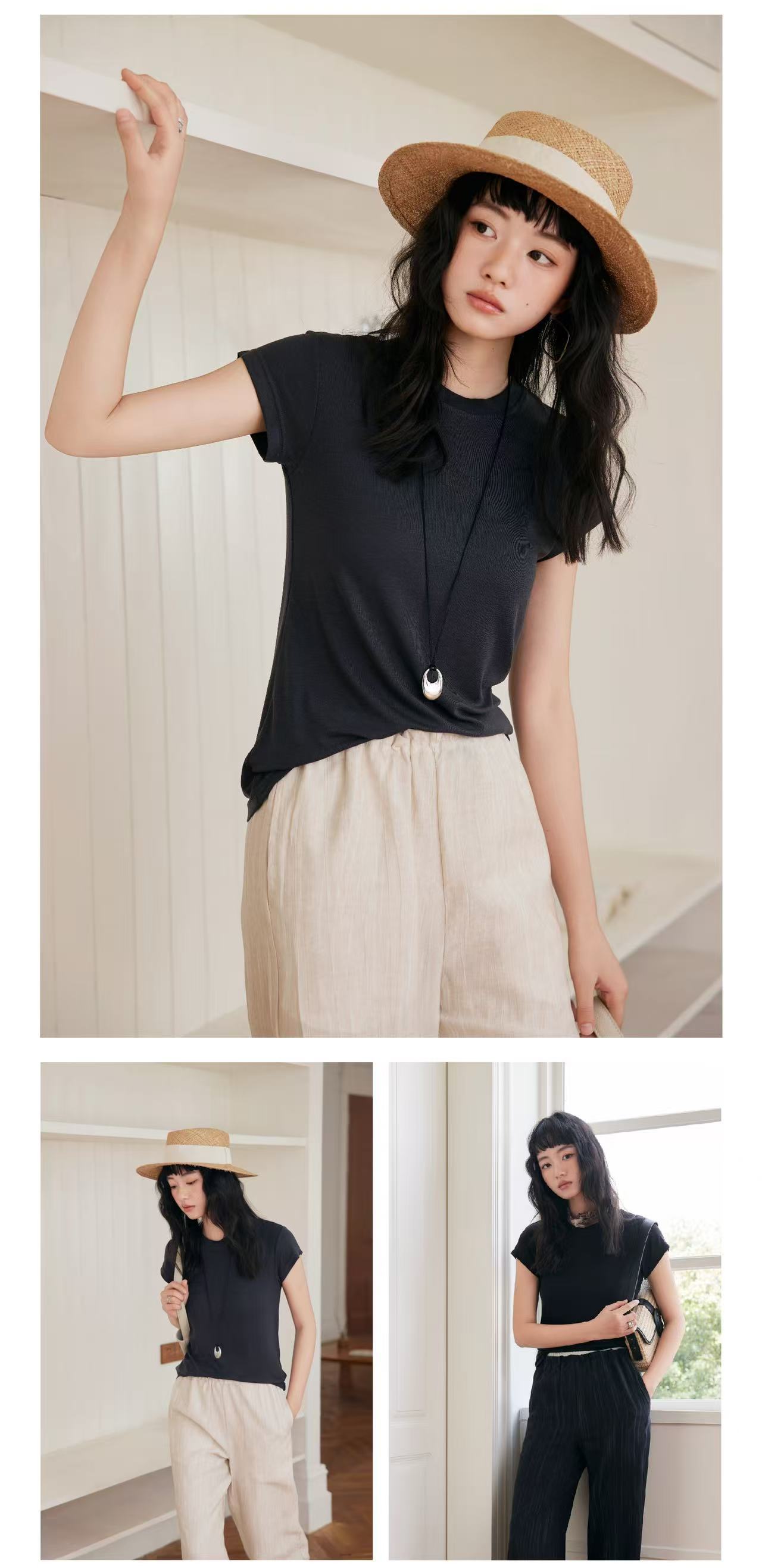 2025 새로운 솔리드 컬러 반팔 어깨 티셔츠 여성용 여름 슬림핏 심플 올 매치 탑 인스 타 그램 패셔너블 9962