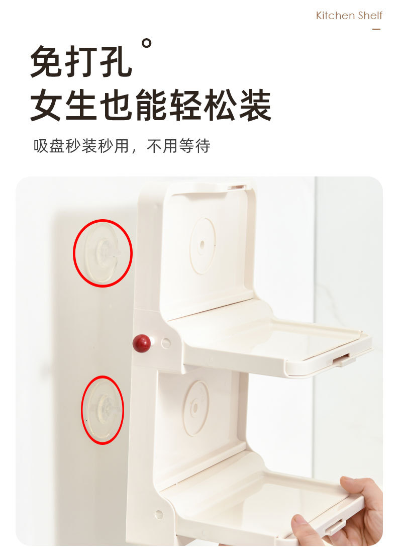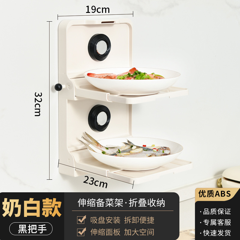 흡입 컵 주방 식품 저장 랙 가정용 더블 레이어 접이식 망원경 벽 장착 식품 저장 랙 재고 도매스토어 가기