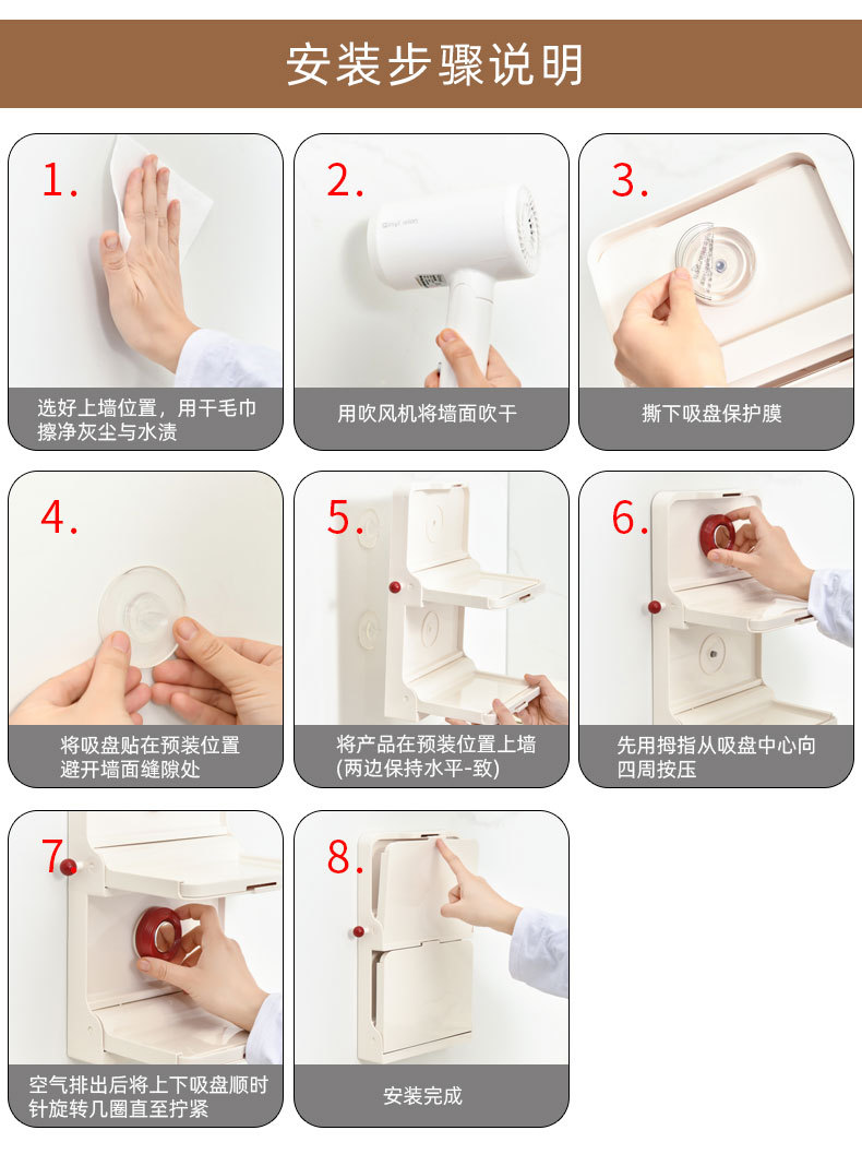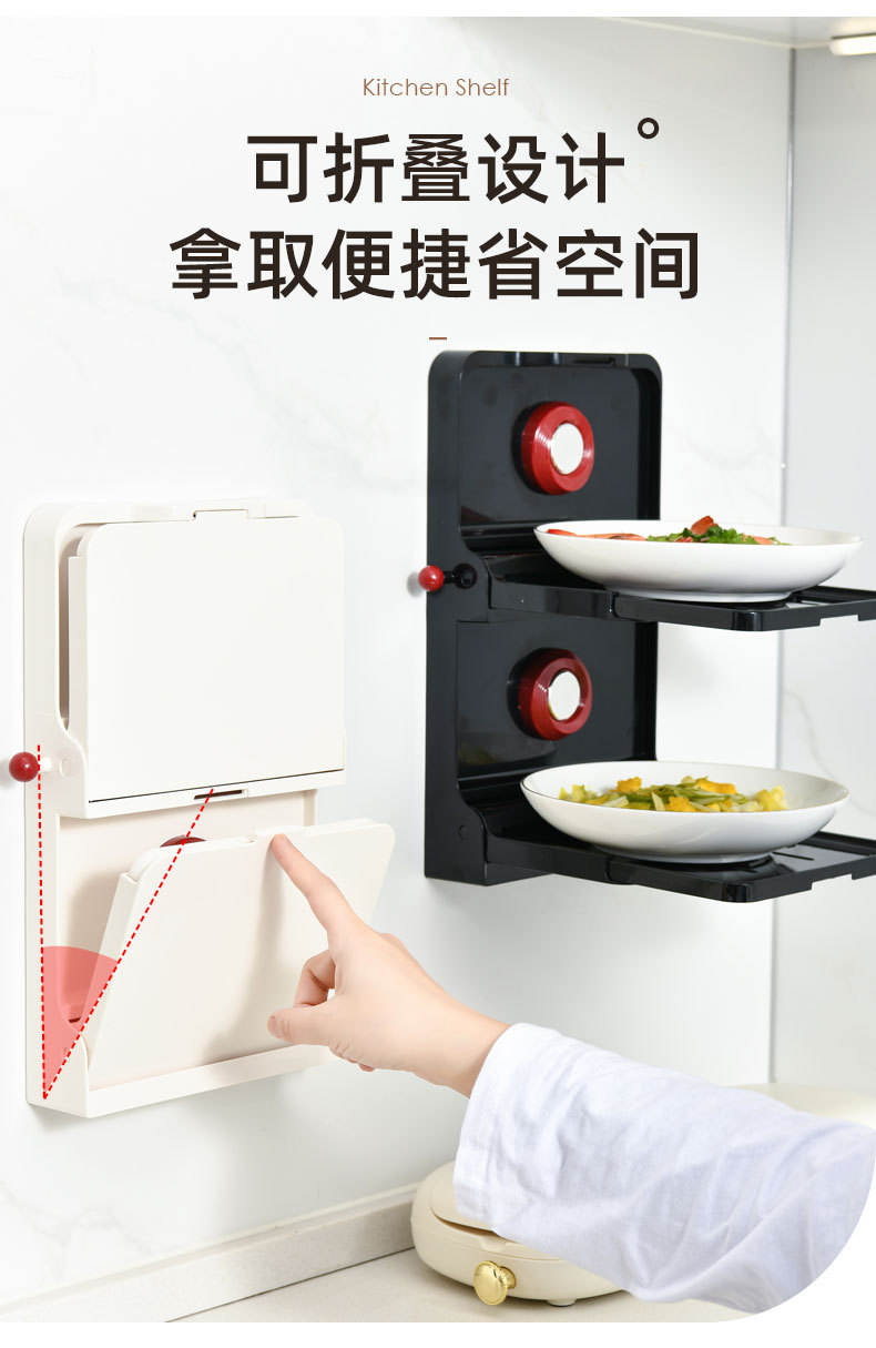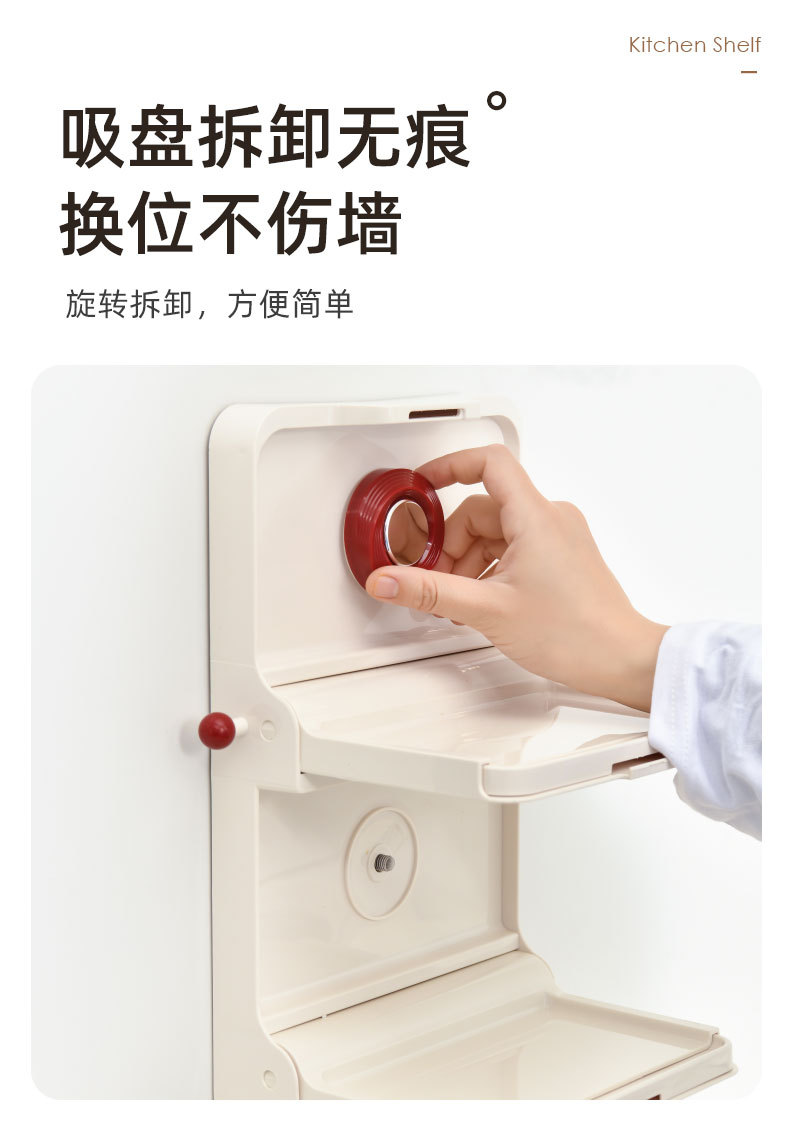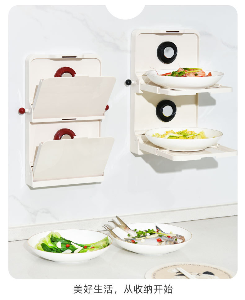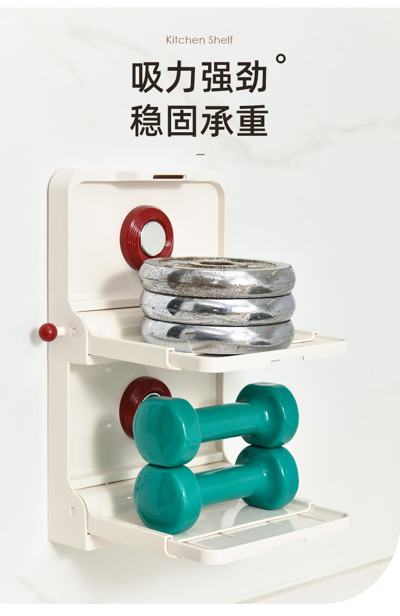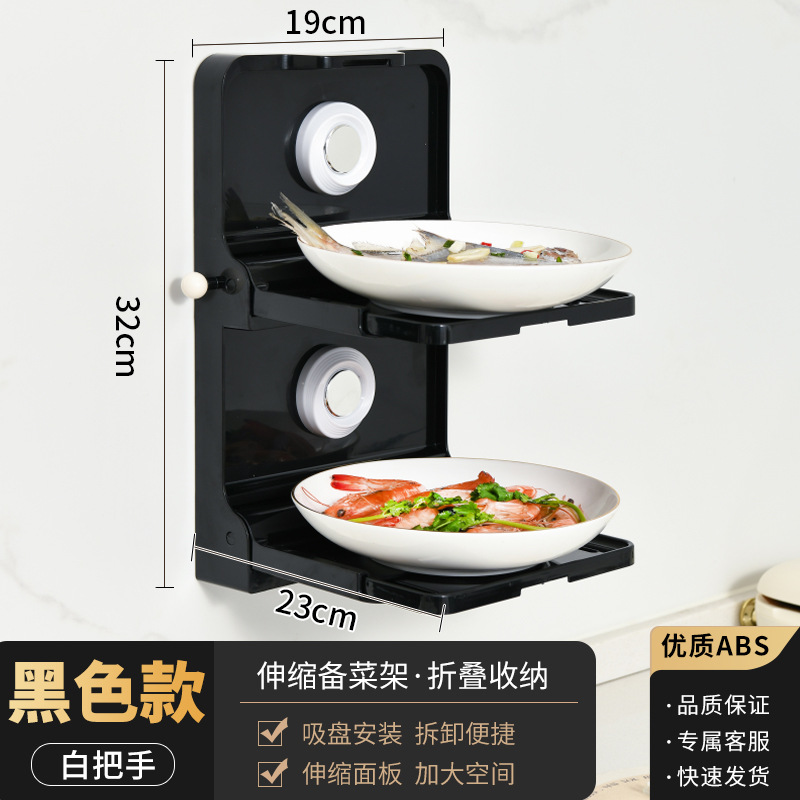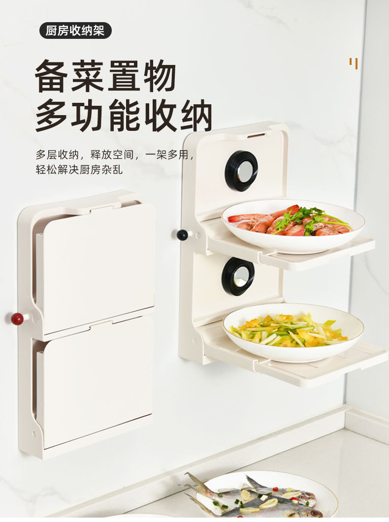 흡입 컵 주방 식품 저장 랙 가정용 더블 레이어 접이식 망원경 벽 장착 식품 저장 랙 재고 도매