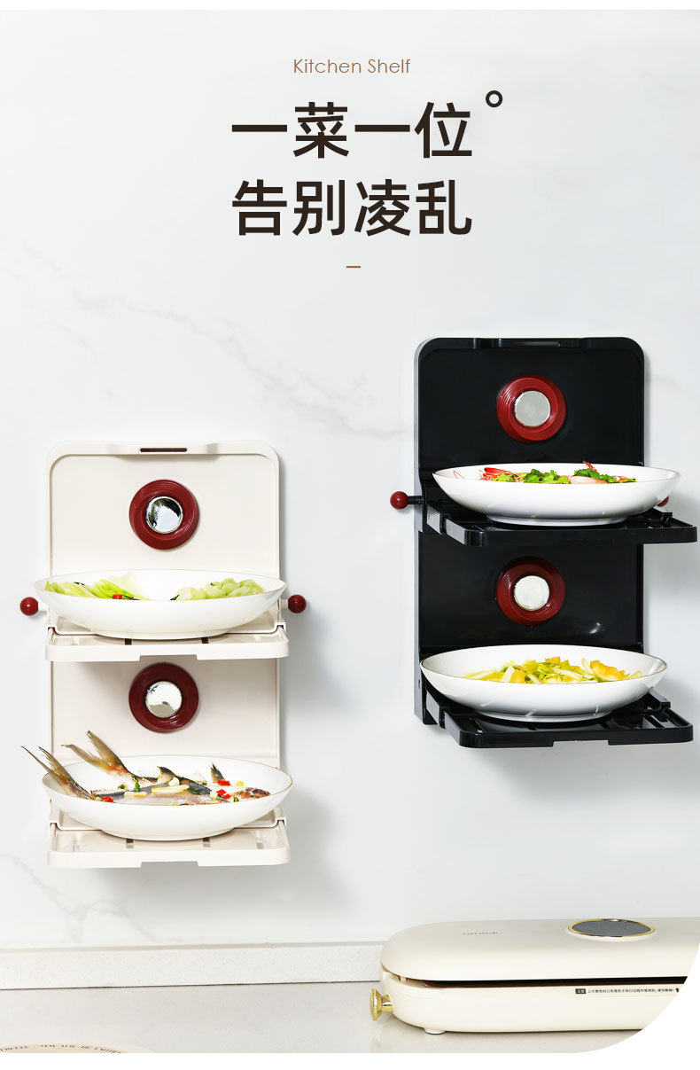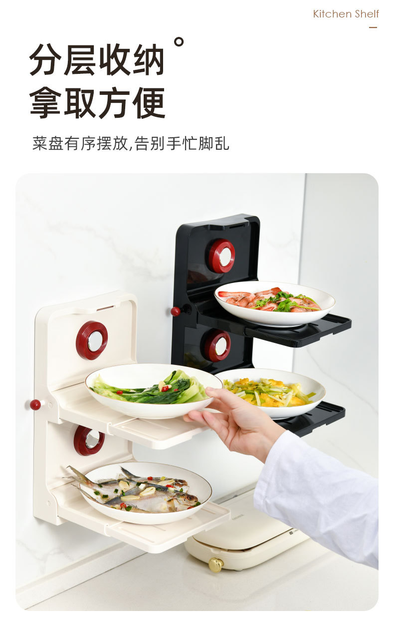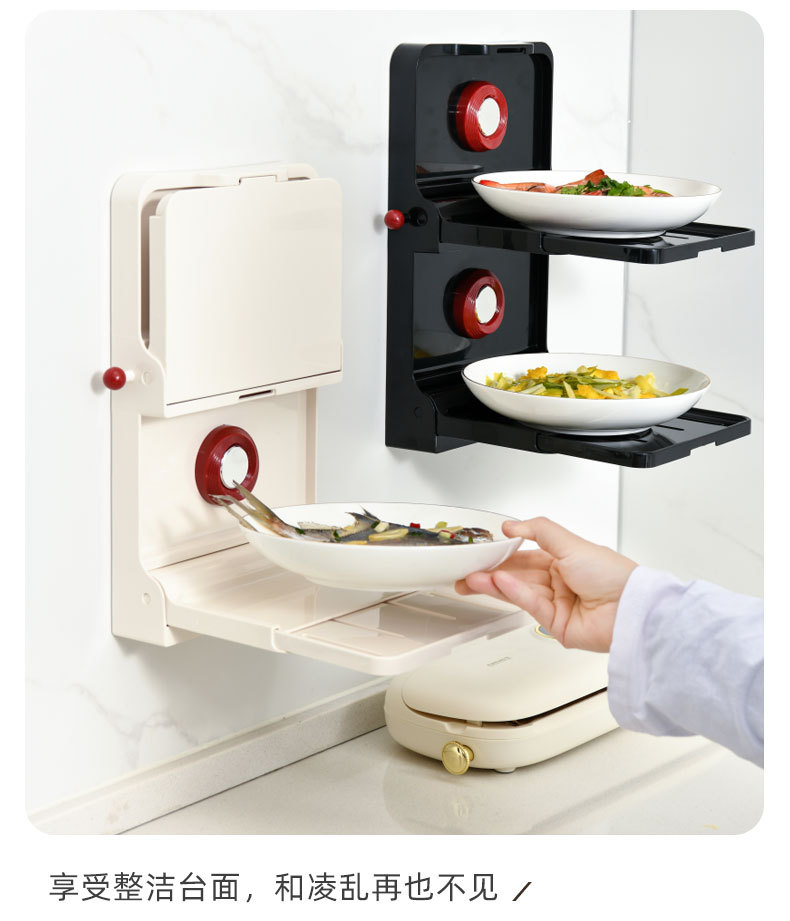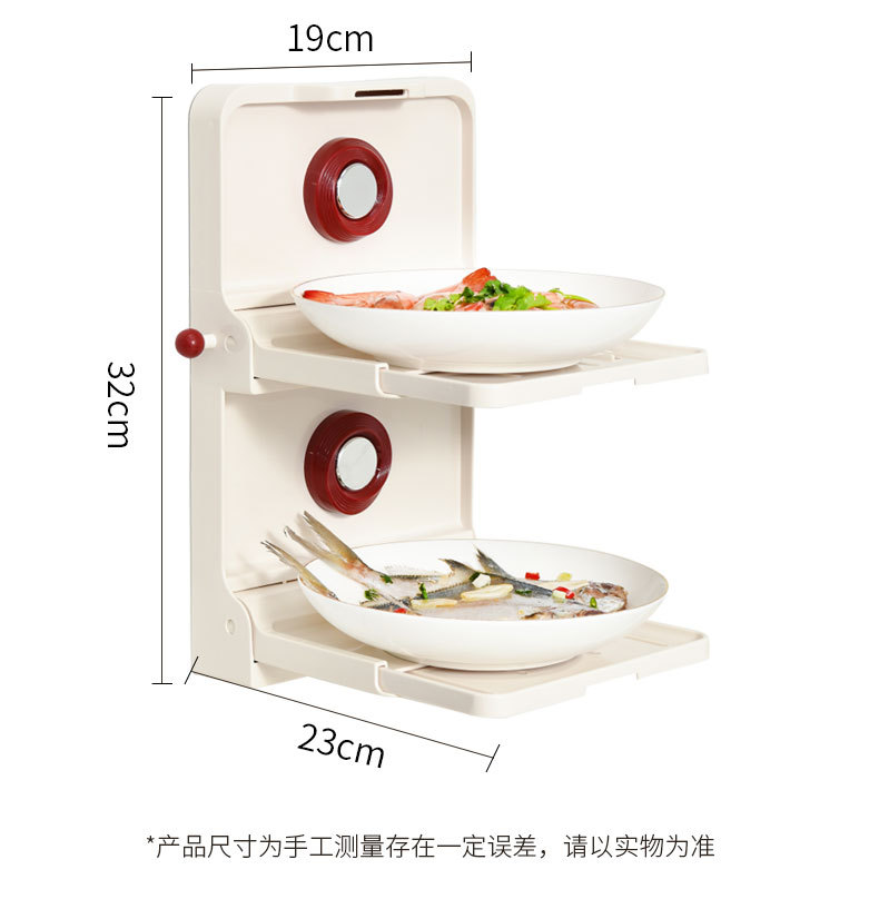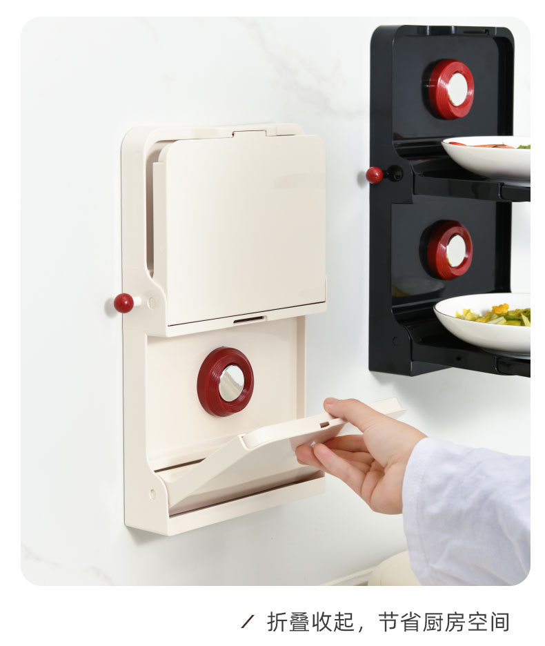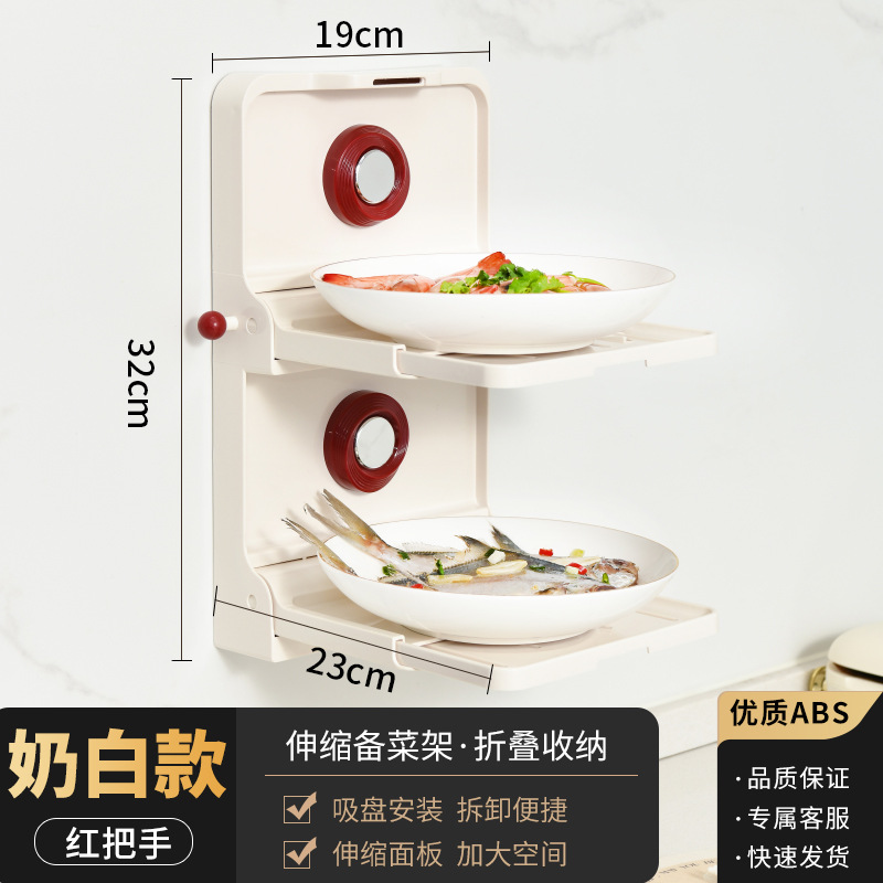 • [밀크 화이트 레드 손잡이] 더블 레이어 텔레스코픽 접시 준비 랙
