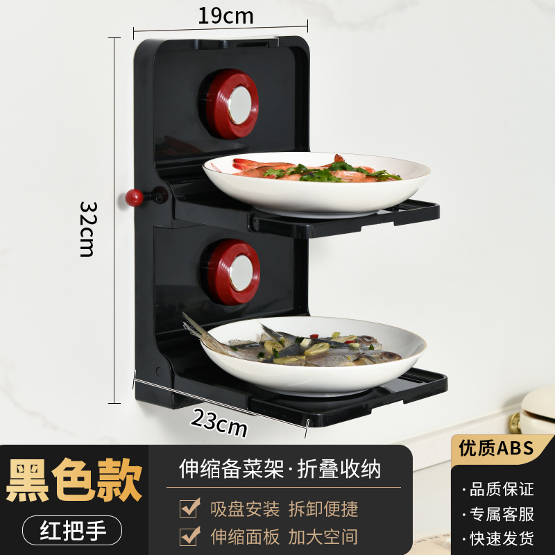 • [블랙 스타일 레드 손잡이] 더블 레이어 텔레스코픽 접시 준비 랙