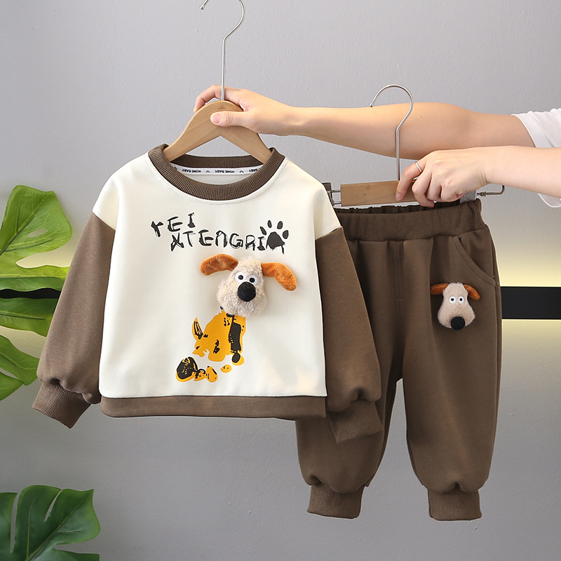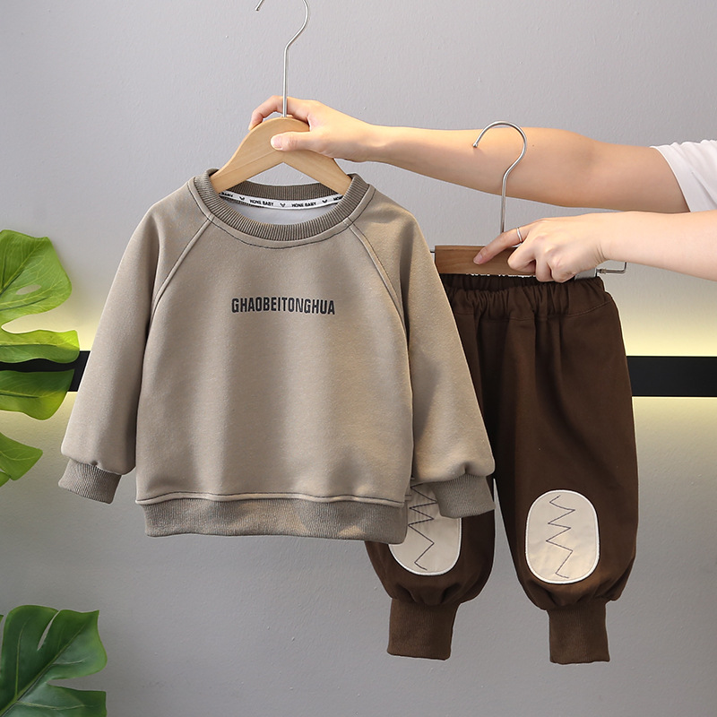 소년 세트 봄과 가을 의류 귀여운 새 아기 봄과 가을 긴 소매 캐주얼 어린이 캐주얼 착용 서양식 투피스 세트스토어 가기