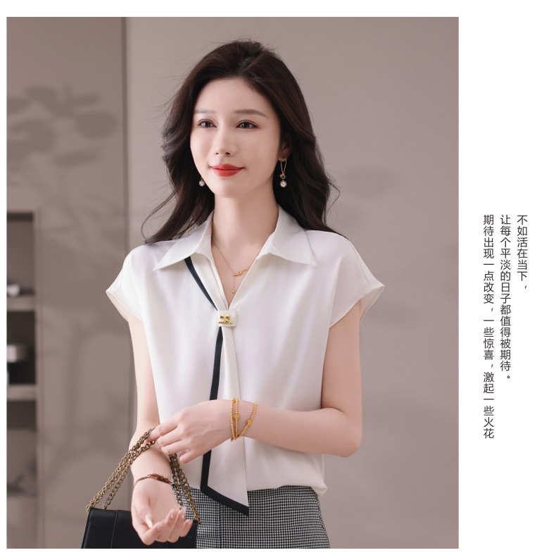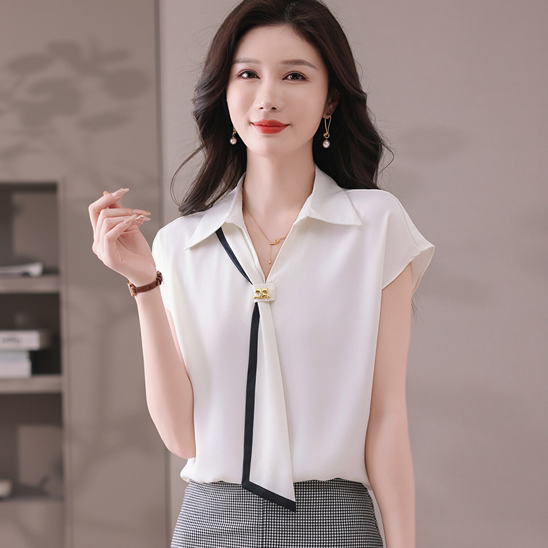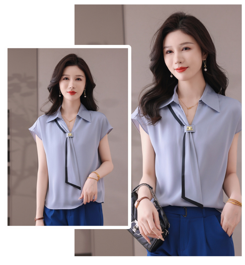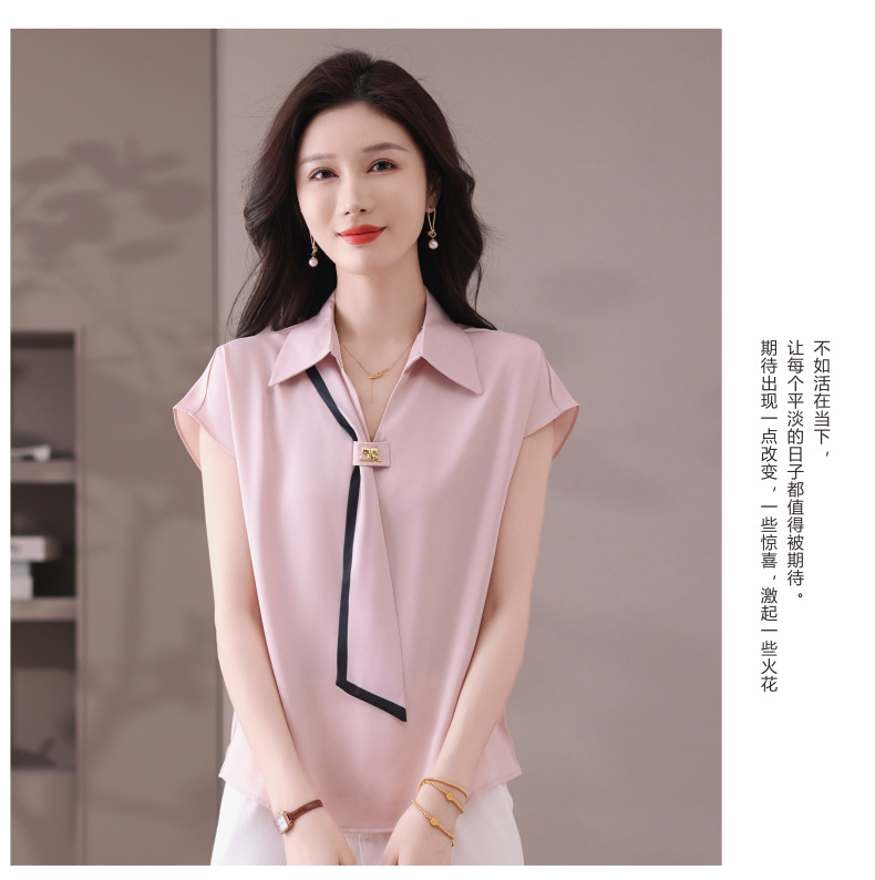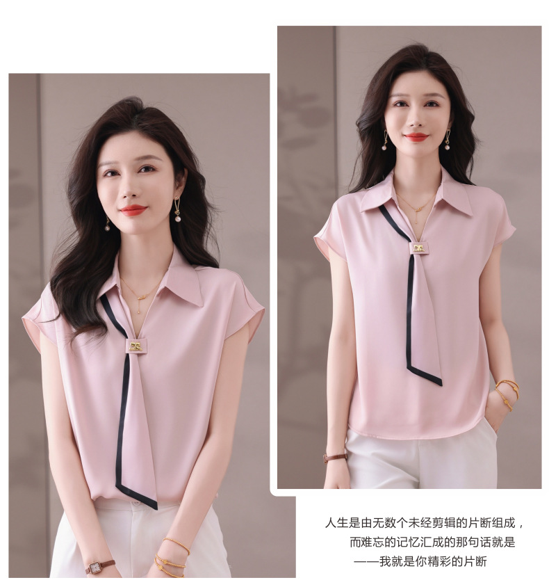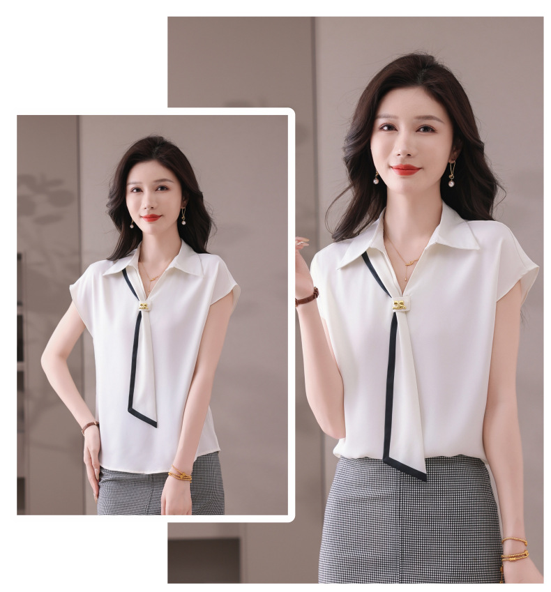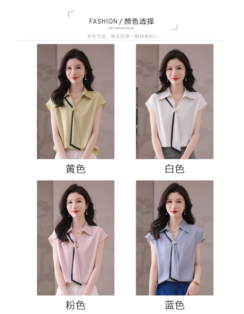 2025 여름 새 셔츠 단색 기질 코트 단색 조커 리본 하이 센스 쉬폰 셔츠 머리카락 세대스토어 가기
