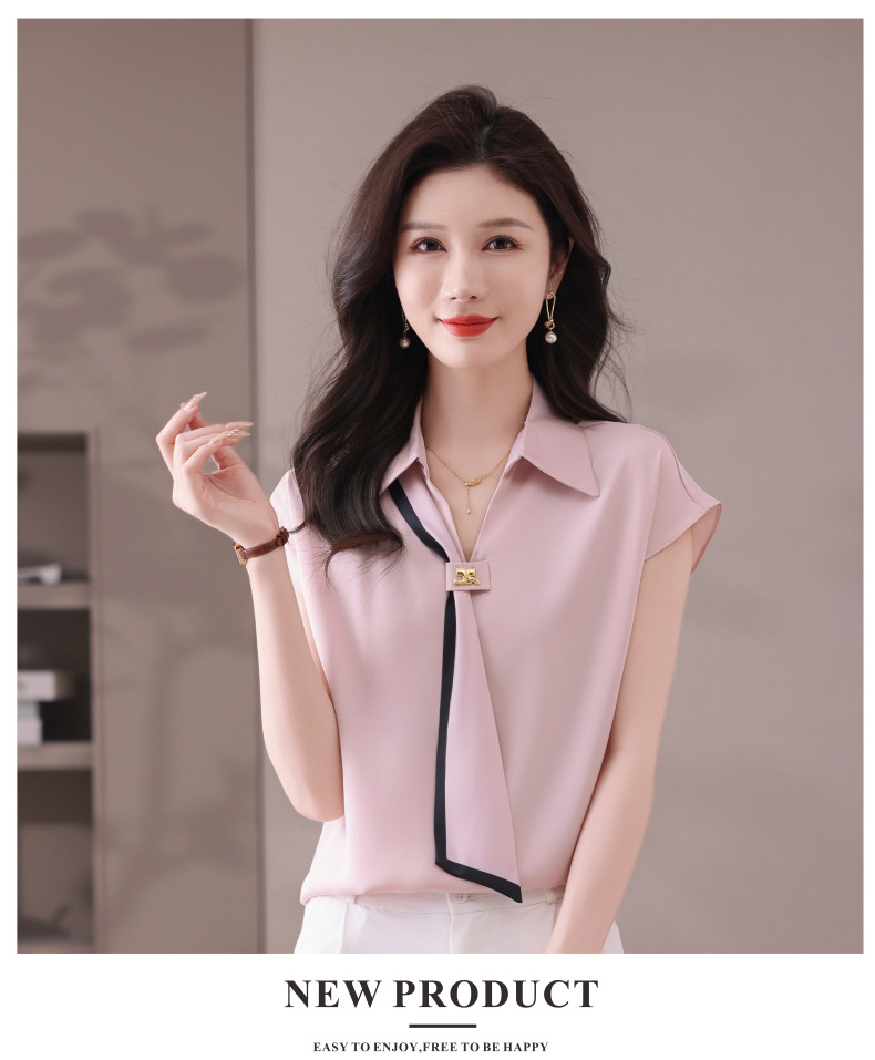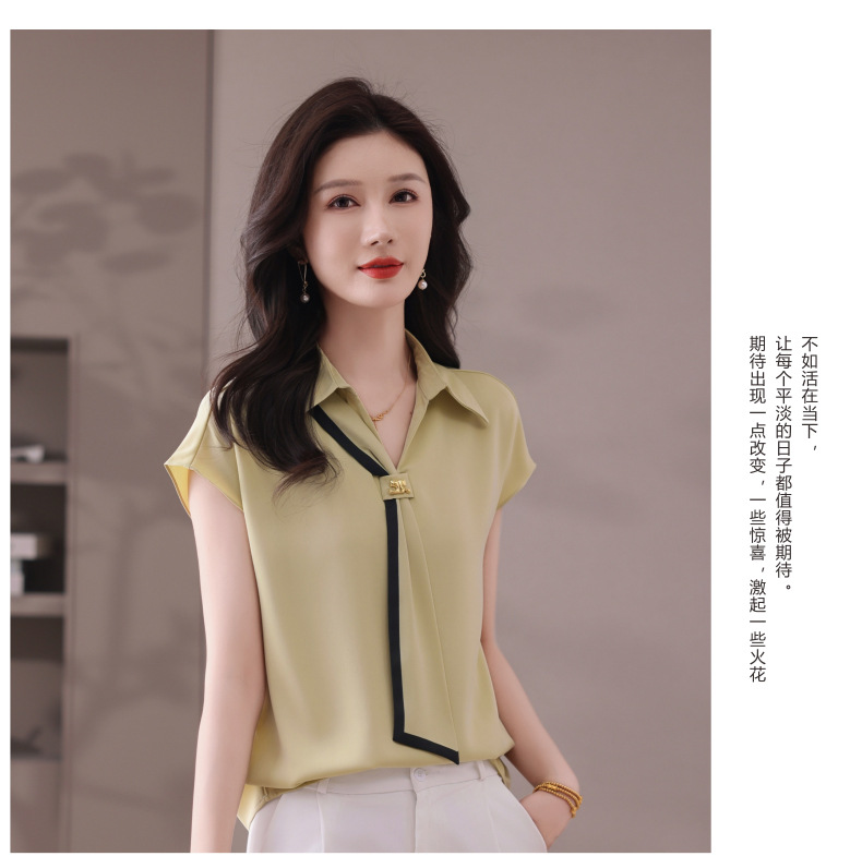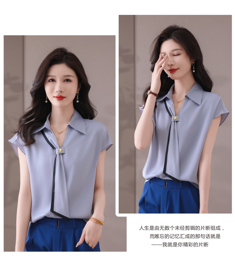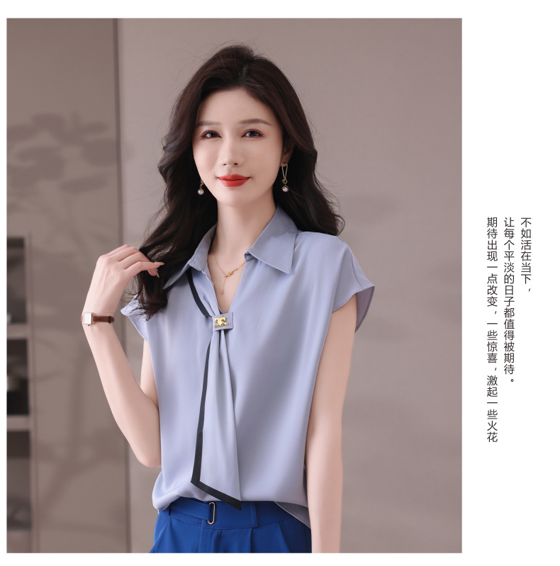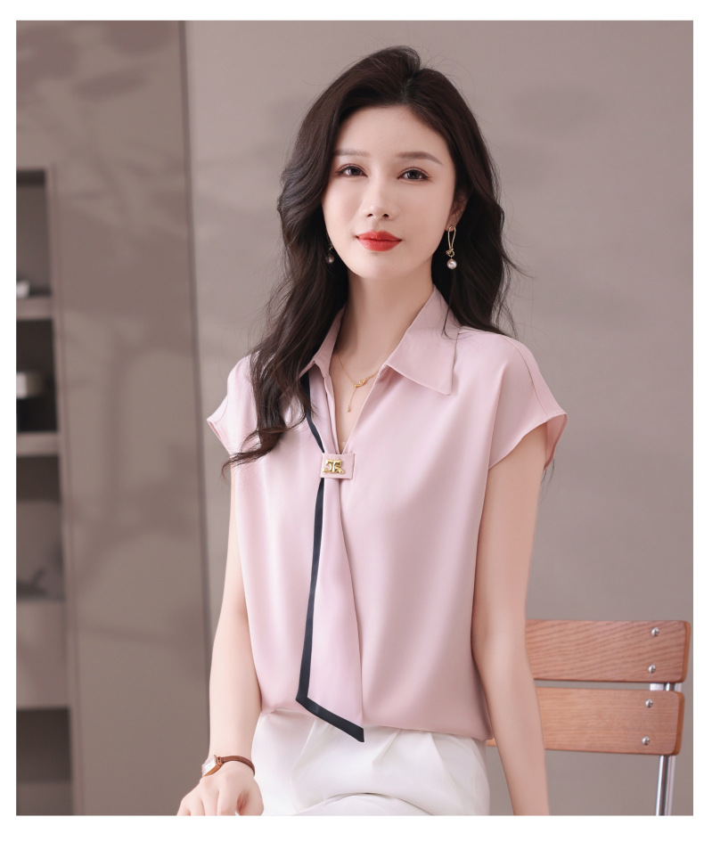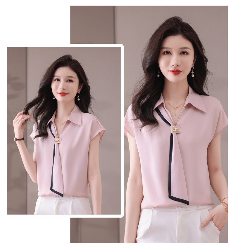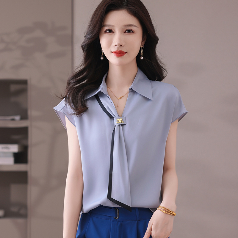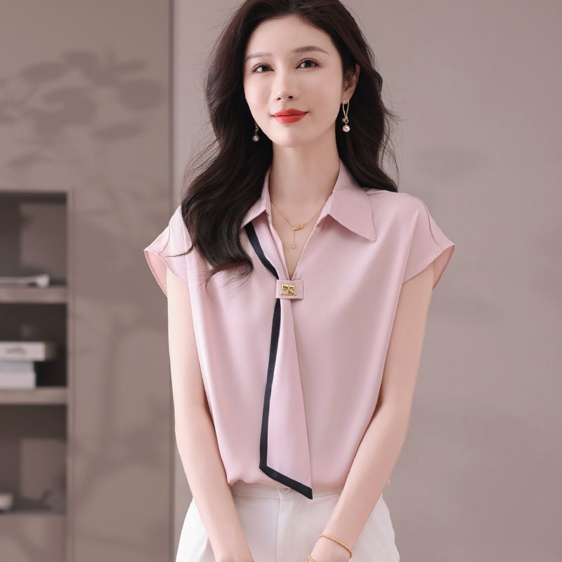 2025 여름 새 셔츠 단색 기질 코트 단색 조커 리본 하이 센스 쉬폰 셔츠 머리카락 세대스토어 가기