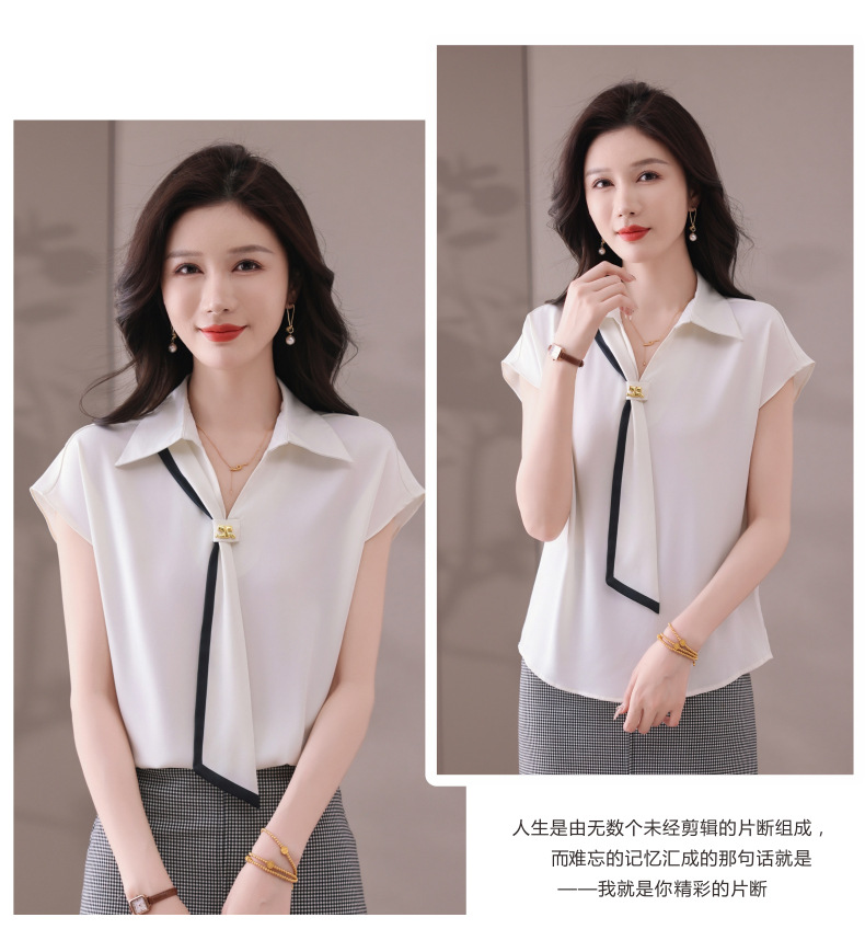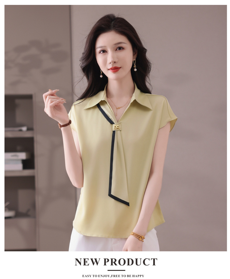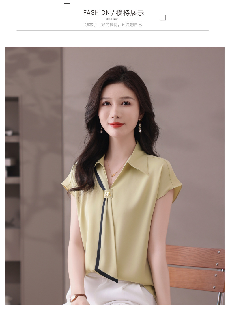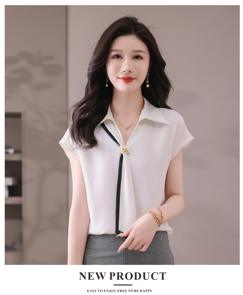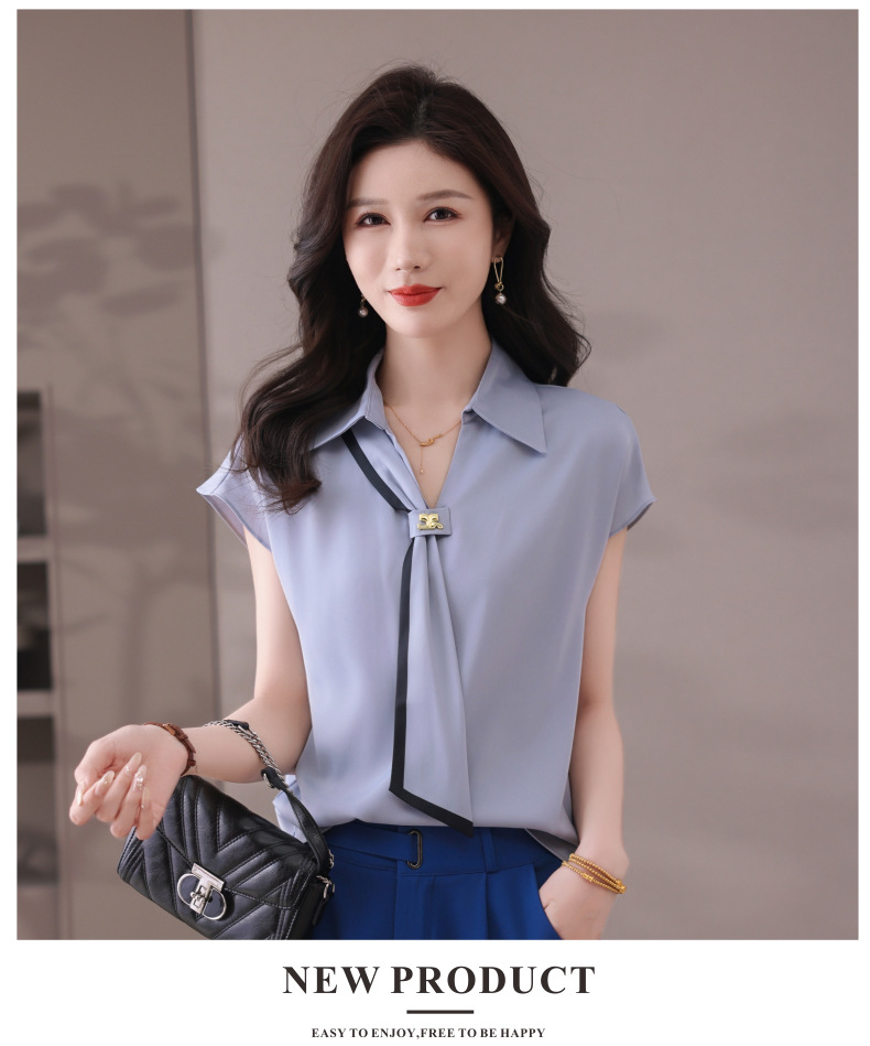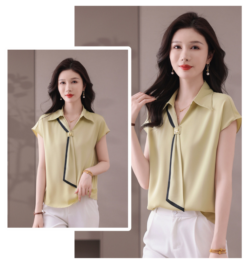 2025 여름 새 셔츠 단색 기질 코트 단색 조커 리본 하이 센스 쉬폰 셔츠 머리카락 세대스토어 가기