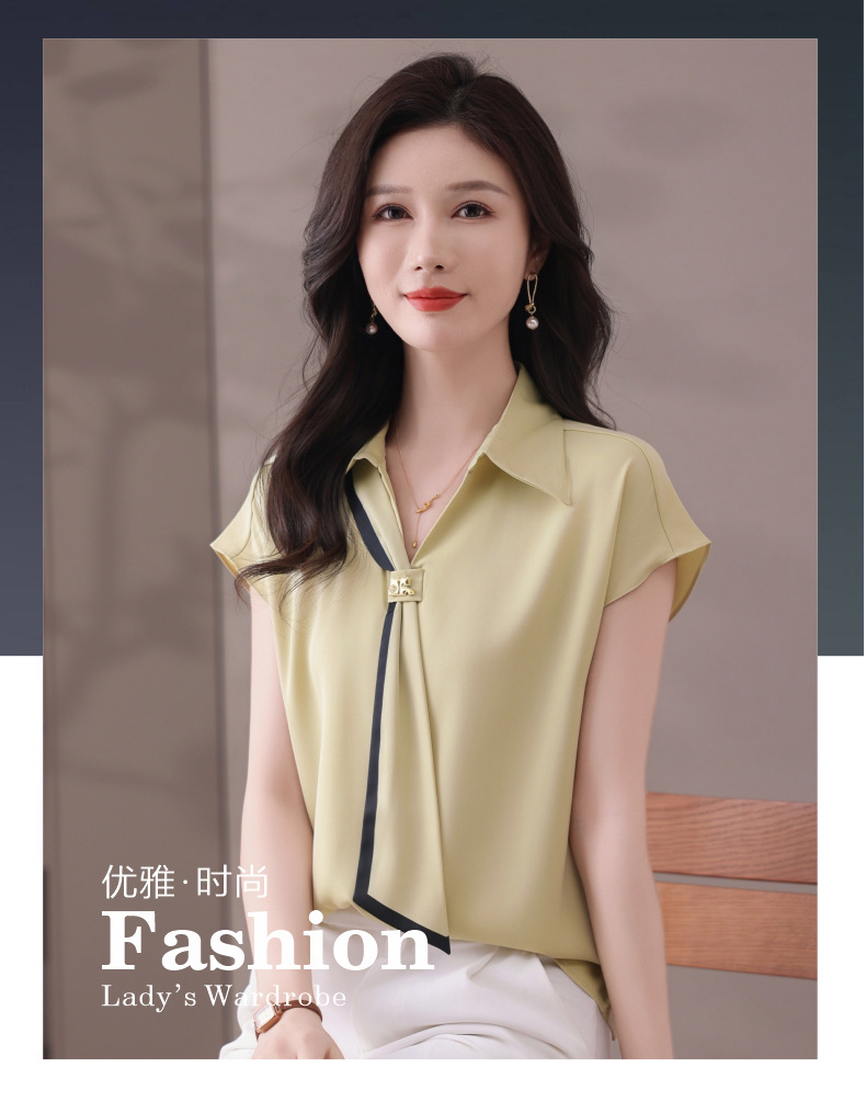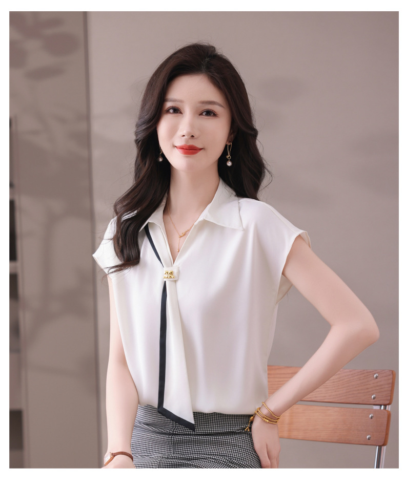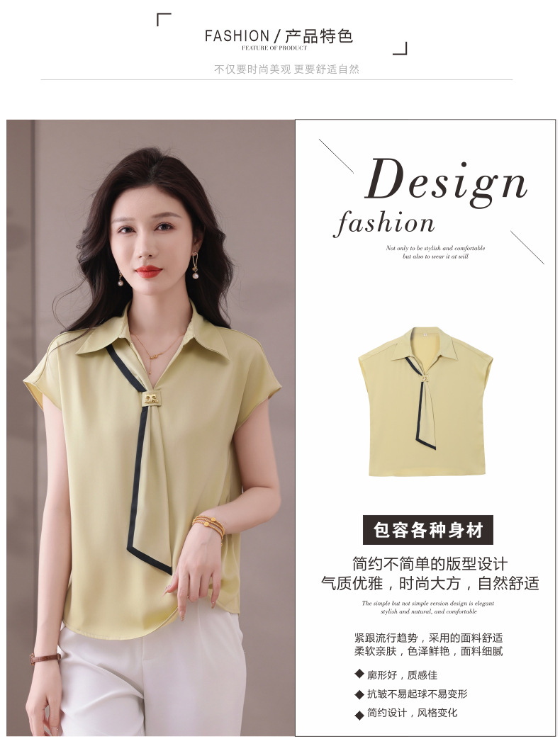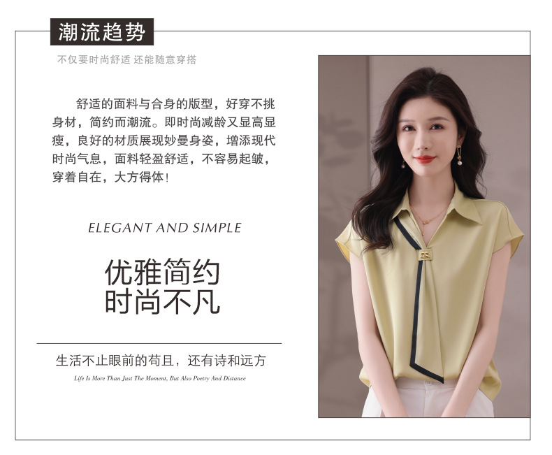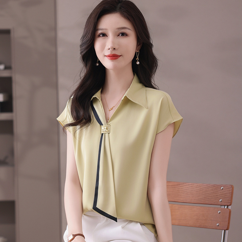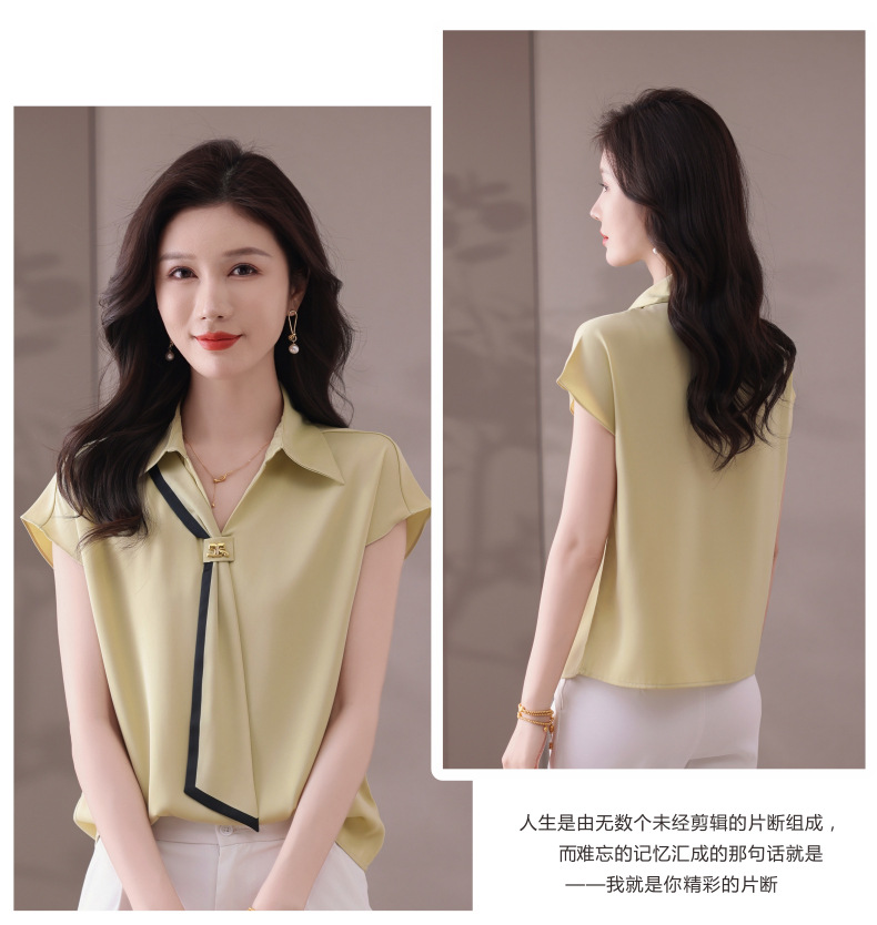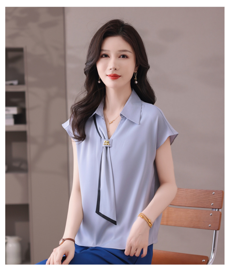 2025 여름 새 셔츠 단색 기질 코트 단색 조커 리본 하이 센스 쉬폰 셔츠 머리카락 세대스토어 가기