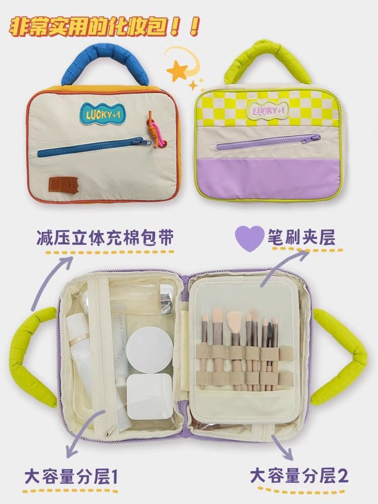 2025 새로운 귀여운 색상 대비 높은 가치의 화장품 가방 휴대용 대용량 고급 여행 화장품 보관 가방