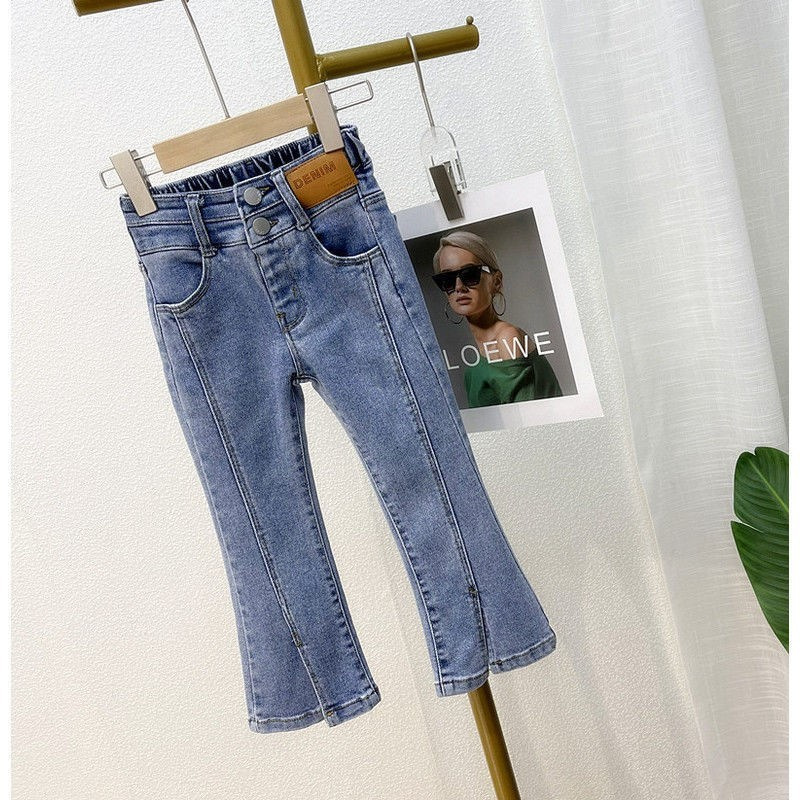 어린이 면 슬림 핏 스플릿 청바지 2024 봄과 가을 한국 스타일 새 소녀의 레트로 캐주얼 긴 트렌디 바지