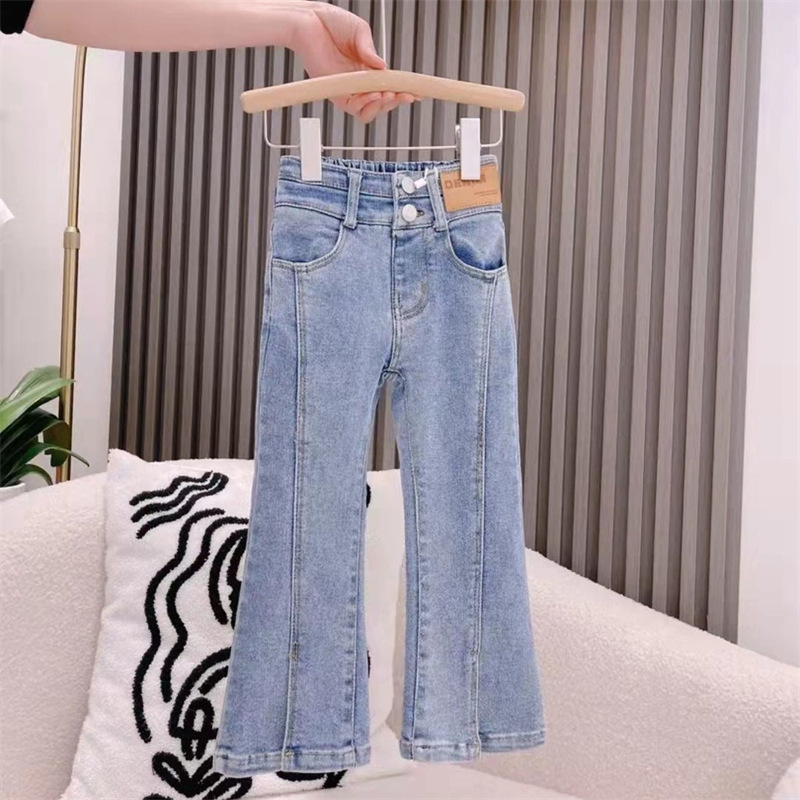 어린이 면 슬림 핏 스플릿 청바지 2024 봄과 가을 한국 스타일 새 소녀의 레트로 캐주얼 긴 트렌디 바지스토어 가기