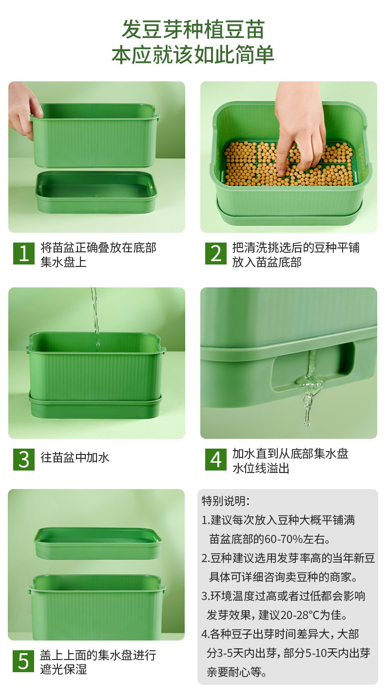 제조사 직판 묘목 트레이, 심기용 발아 화분, 물갈이 필요 없는 콩나물 기계, 콩나물 전용 화분, 황록색 트레이스토어 가기