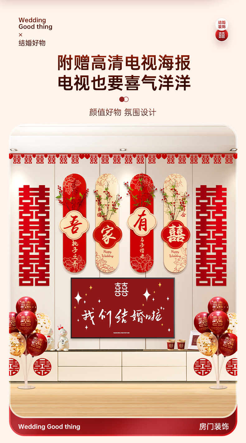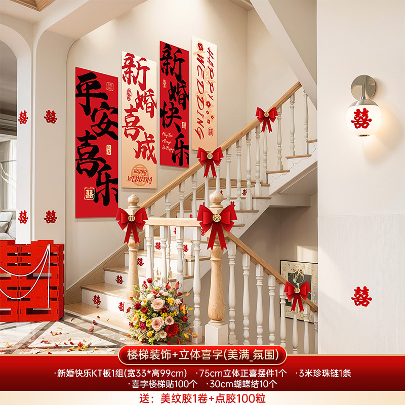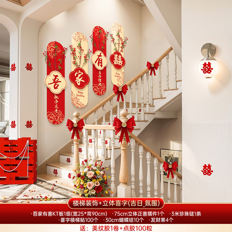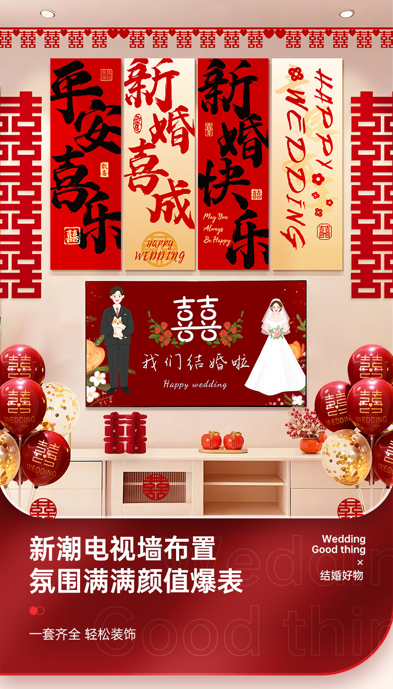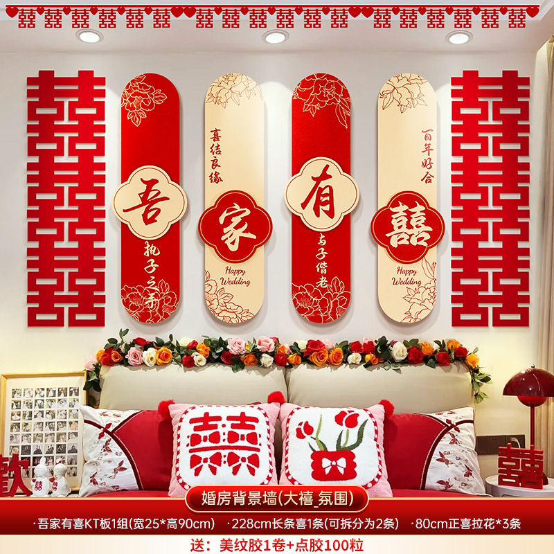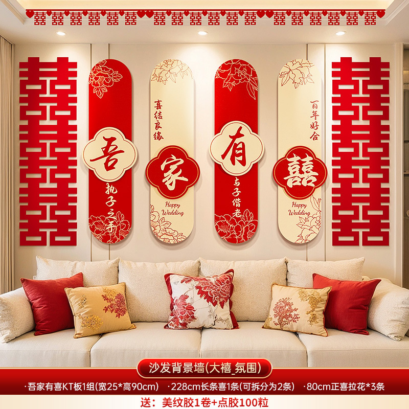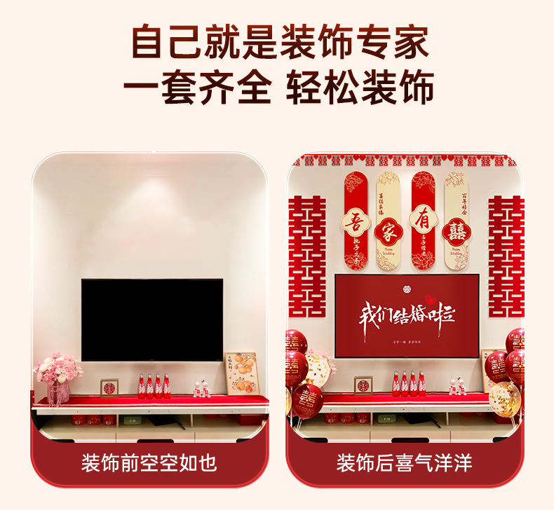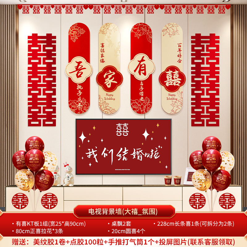 결혼식 레이아웃 세트 행복한 단어 kt 보드 남자와 여자의 광장 거실 침실 TV 배경 벽 장식 행복한 단어 꽃