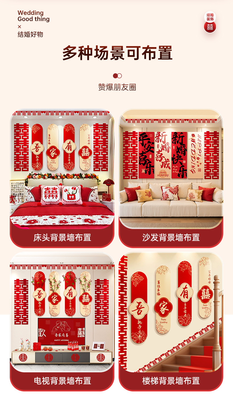 결혼식 레이아웃 세트 행복한 단어 kt 보드 남자와 여자의 광장 거실 침실 TV 배경 벽 장식 행복한 단어 꽃스토어 가기