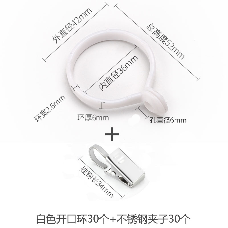 • 3.6cm 플라스틱 분할 링, 흰색 30개 + 스테인리스 클립 30개