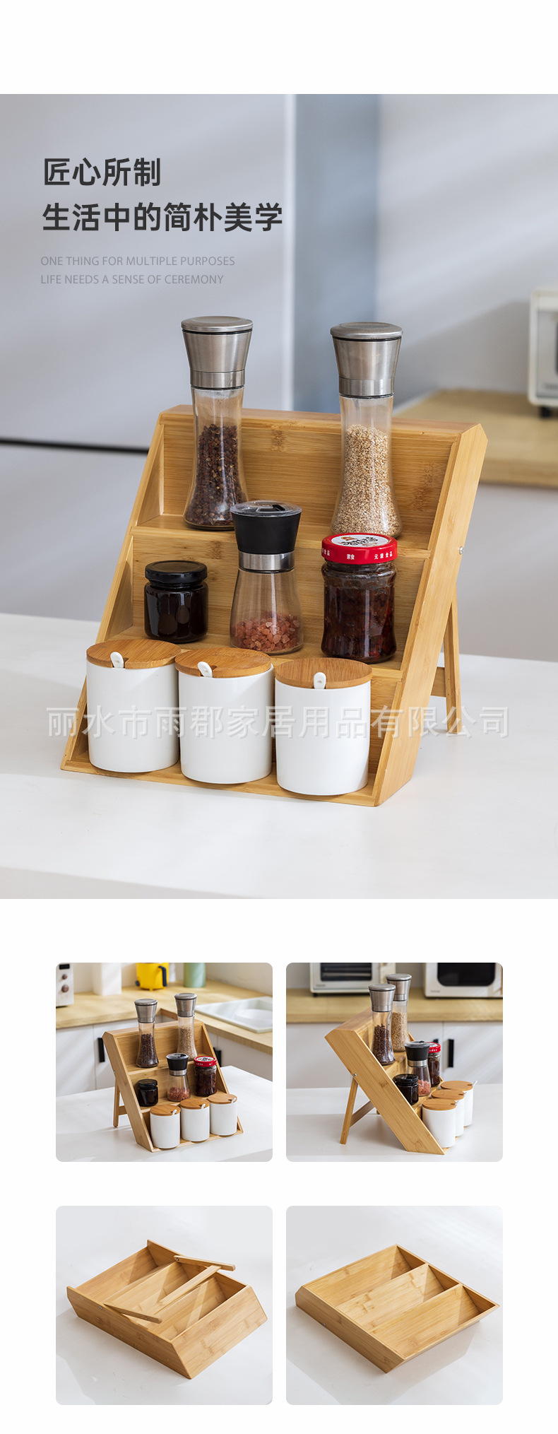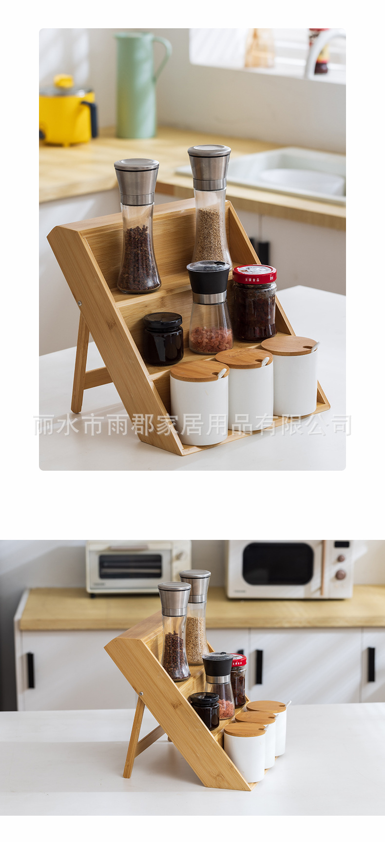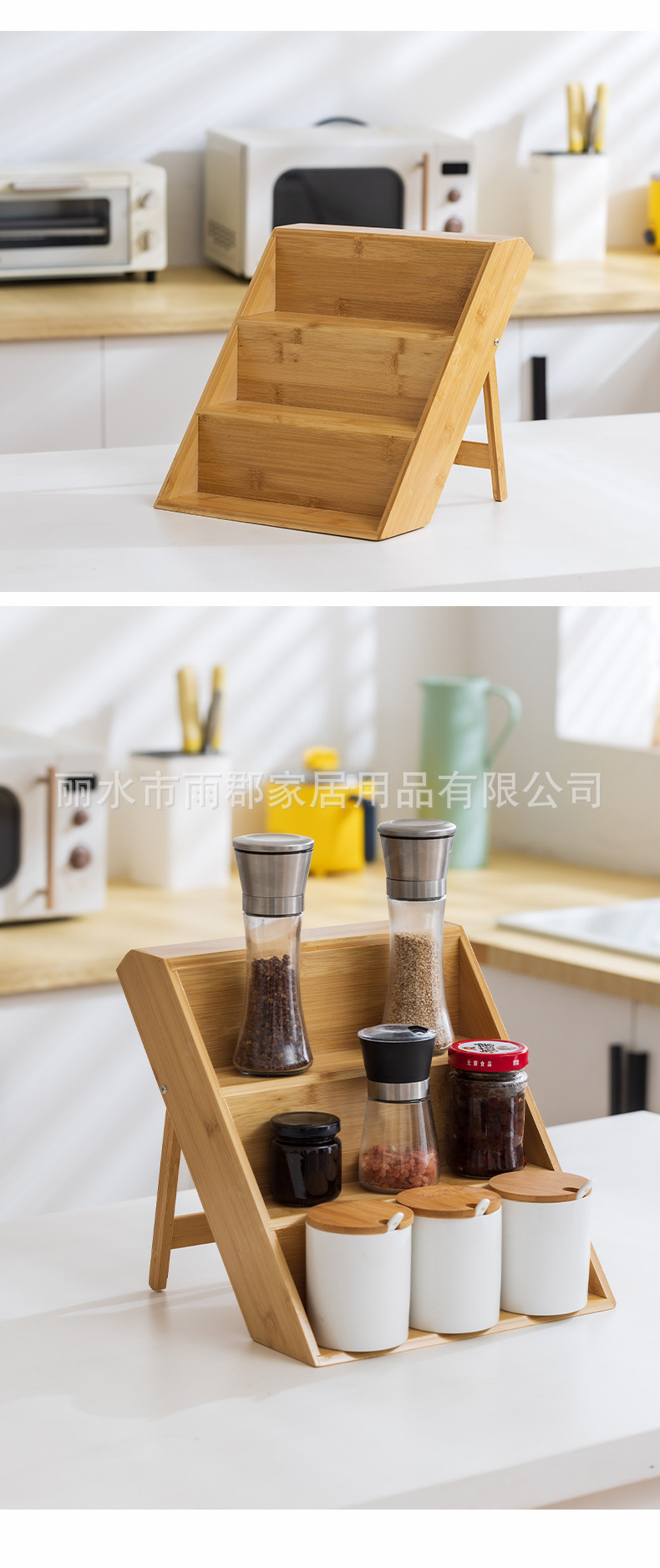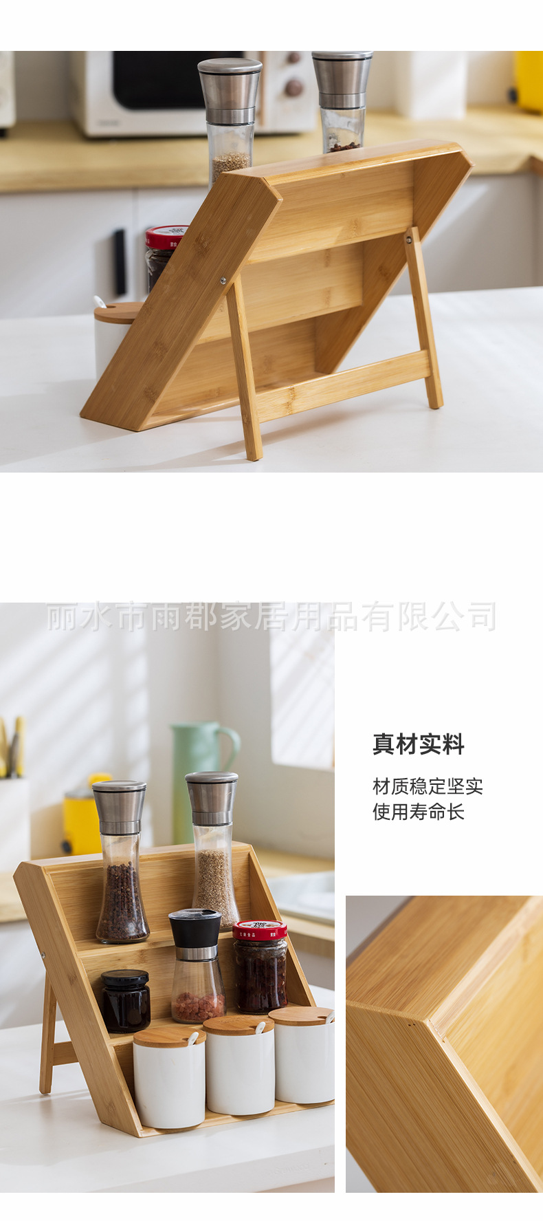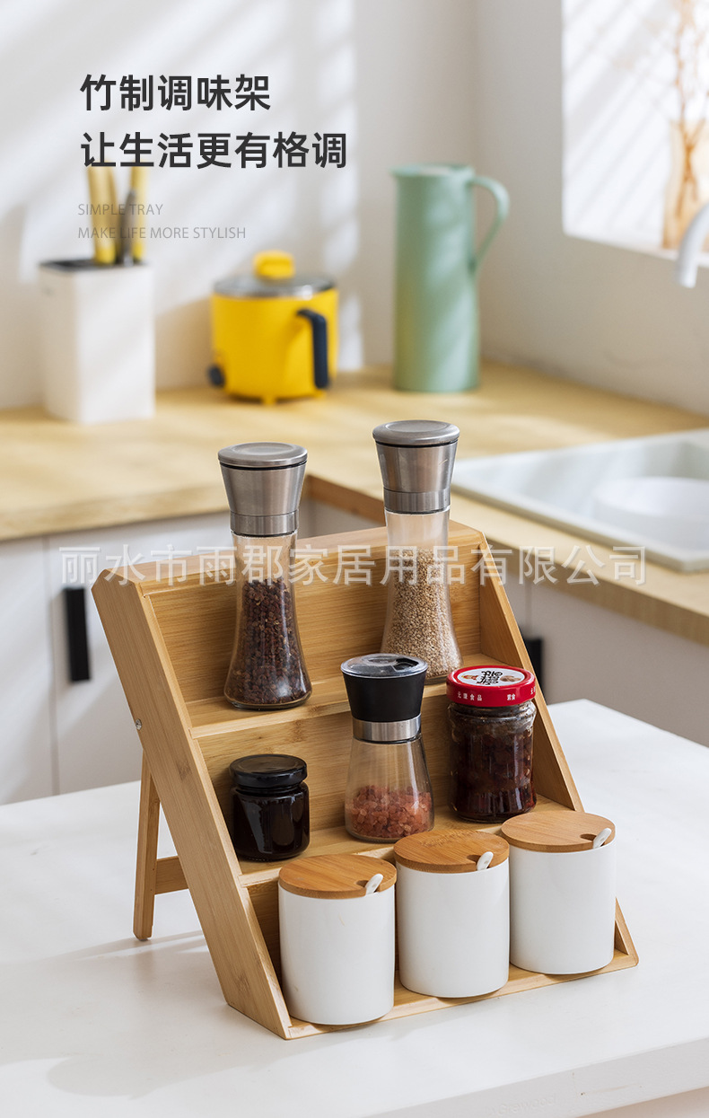 대나무 다층 양념 주방 보관 랙 데스크탑 향신료 걸러진 나무 병 보관 배치 디스플레이 랙