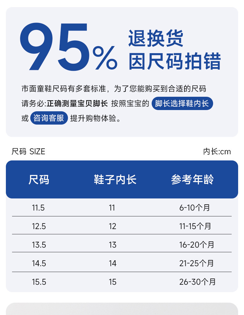 • 15호 / 내측 길이 12.5cm (아기 발 길이 12cm 기준 추천)