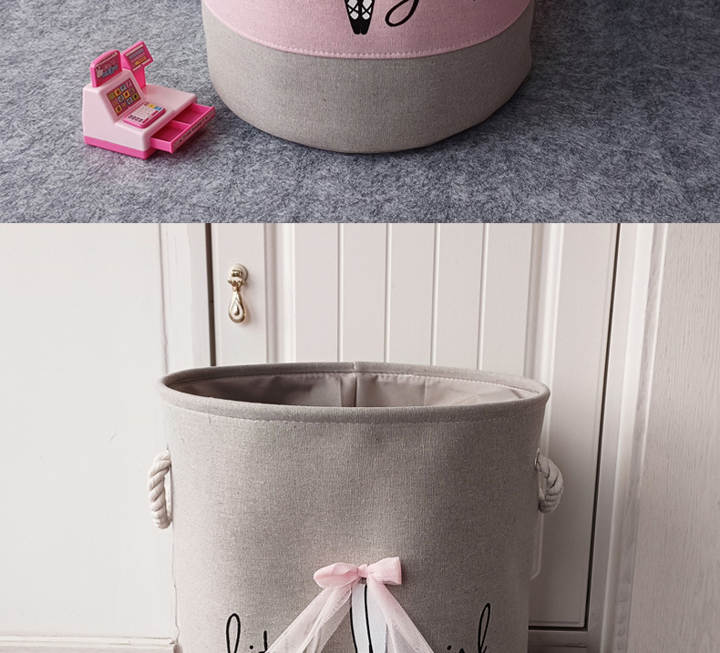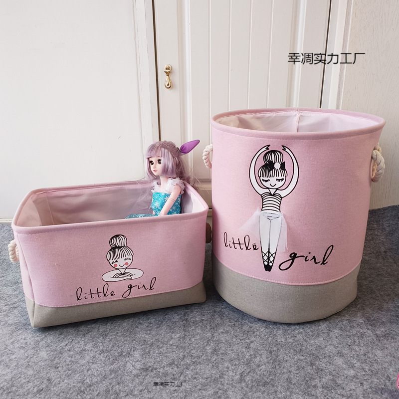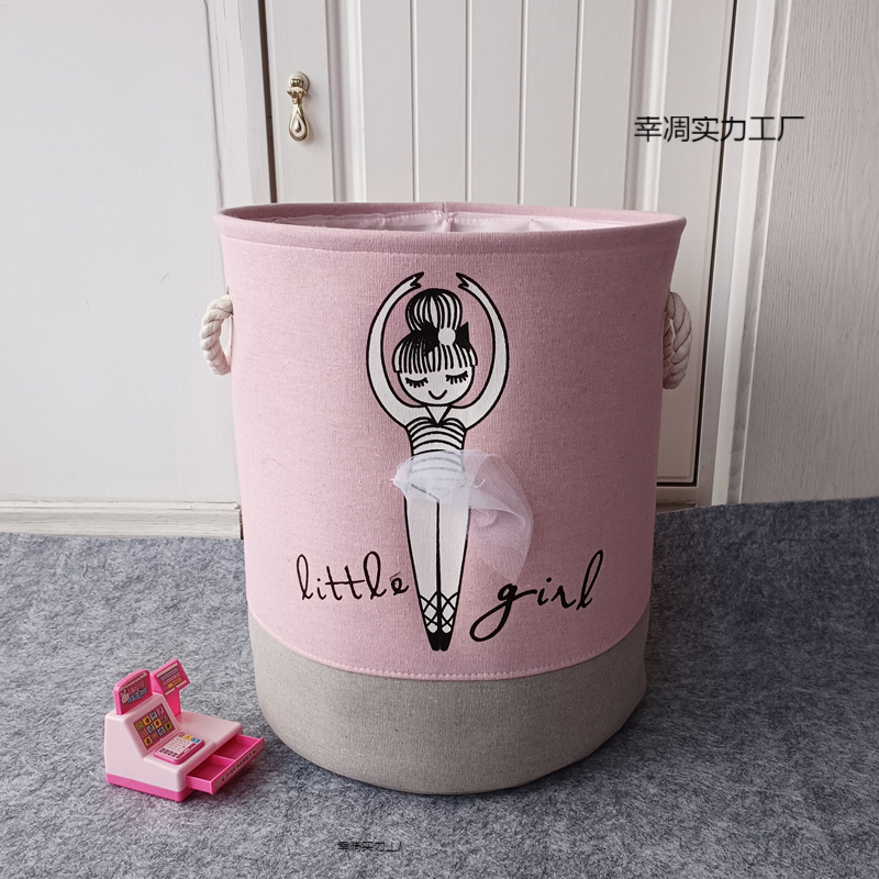 핑크 직물 어린이 저장 배럴 장난감 보관 바구니 더러운 옷 바구니 만화 아기 저장 상자 가정용 잡화 마무리스토어 가기