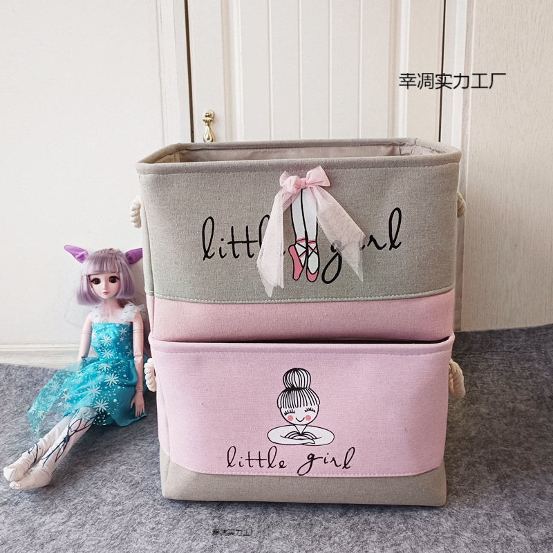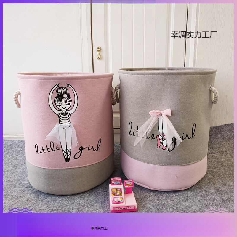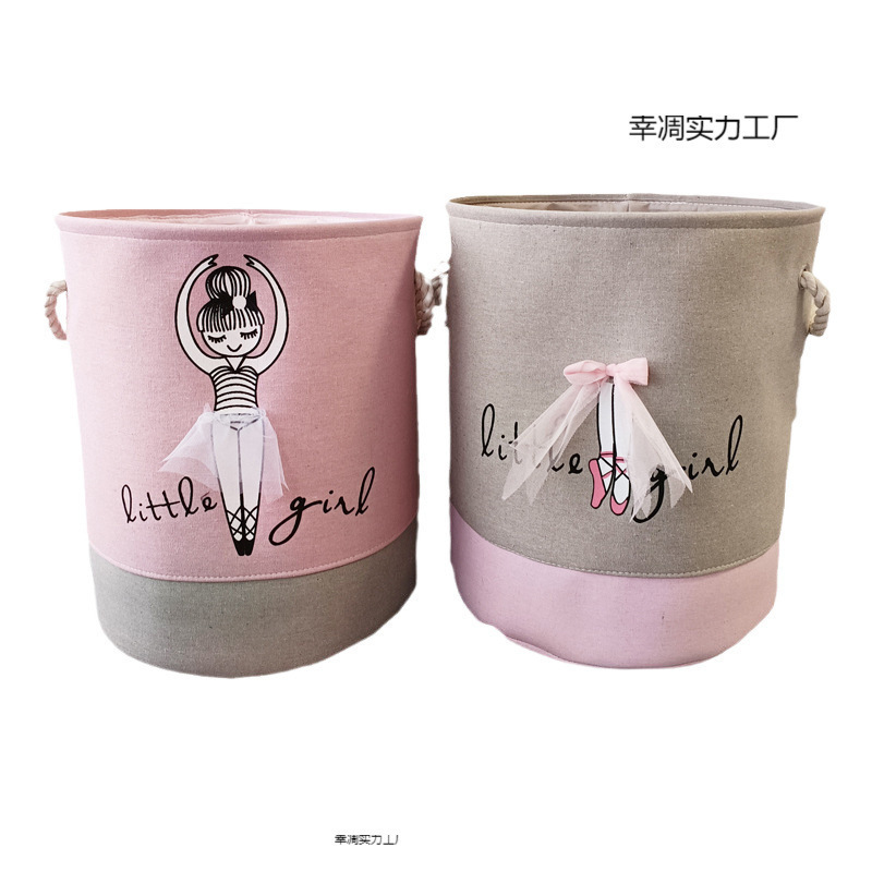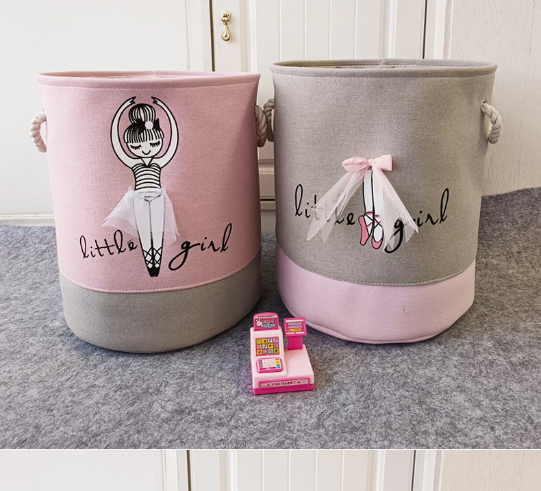 핑크 직물 어린이 저장 배럴 장난감 보관 바구니 더러운 옷 바구니 만화 아기 저장 상자 가정용 잡화 마무리