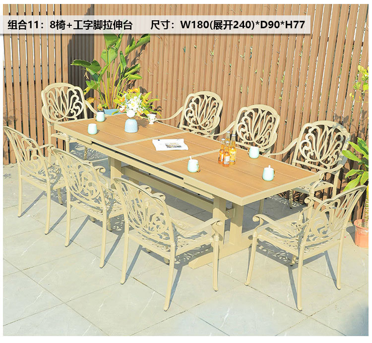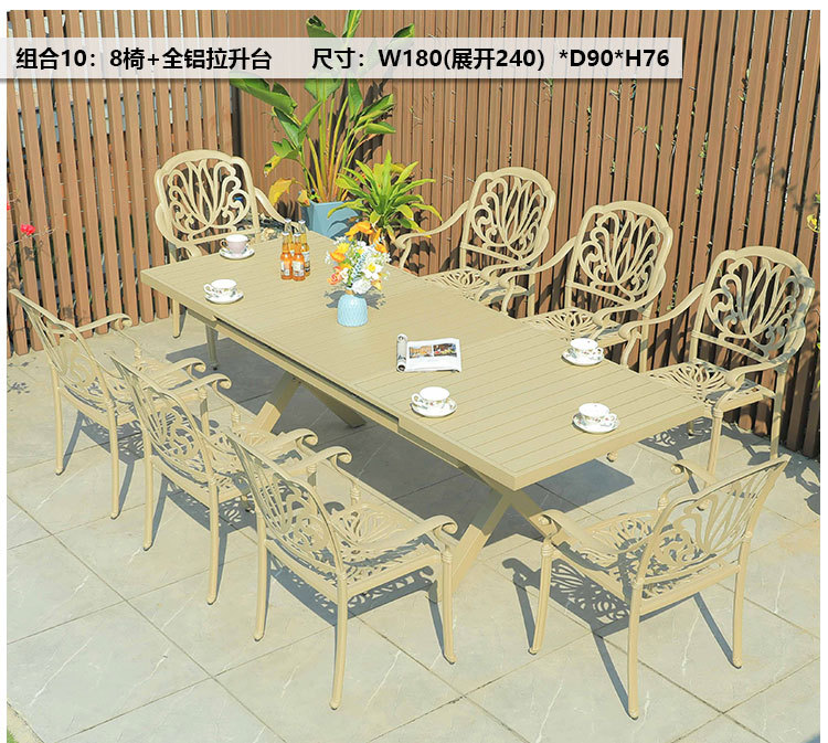• 조합 10: 의자 8개 + 180(확장 240)*90*H76 전체 알루미늄 리프팅 테이블