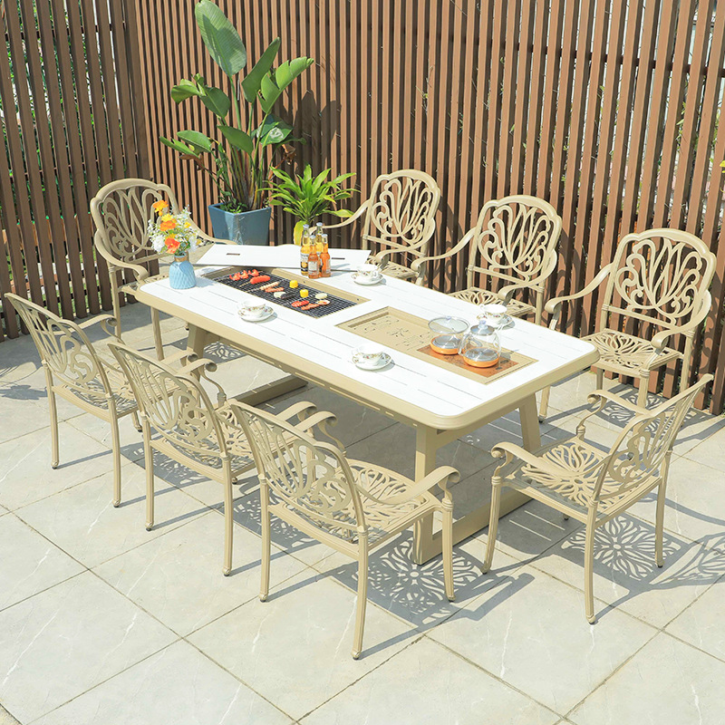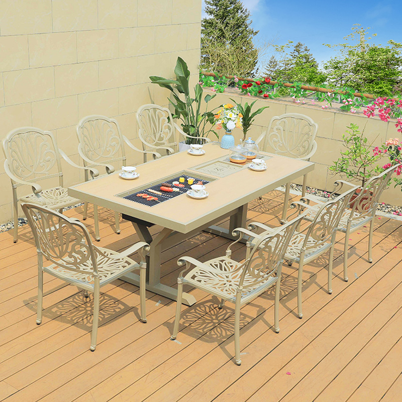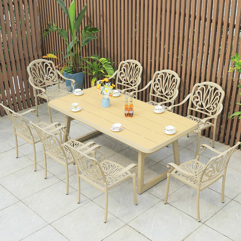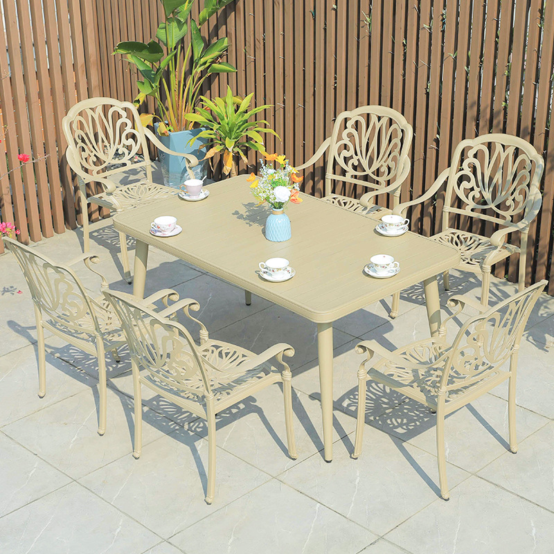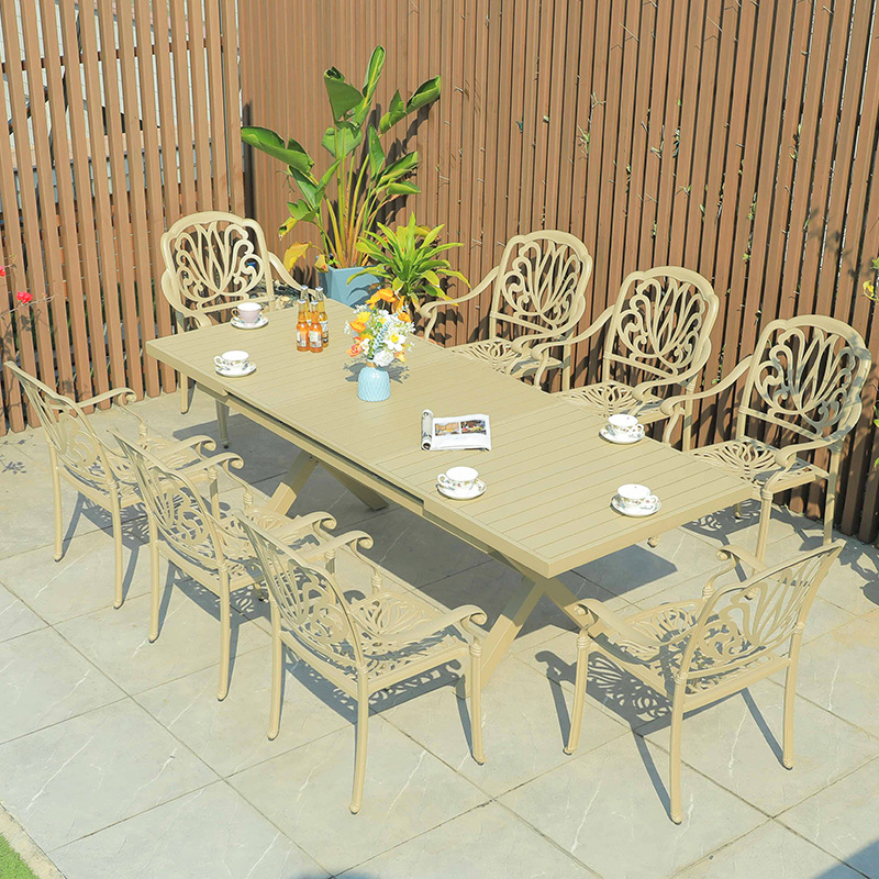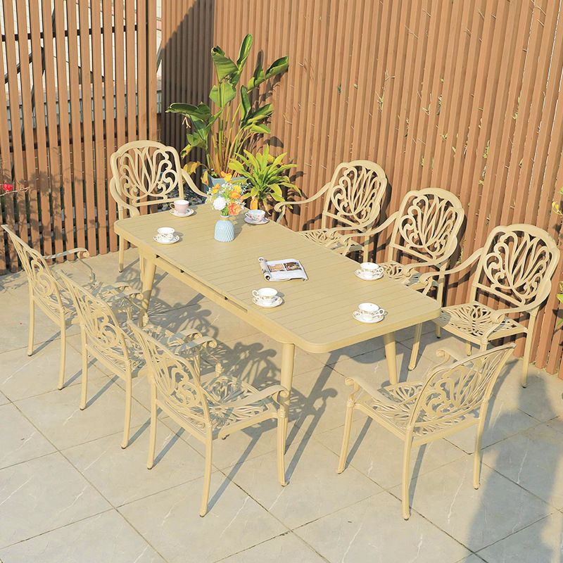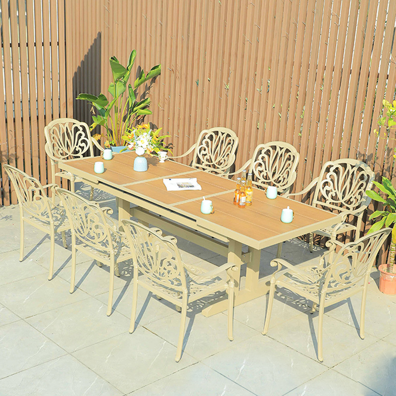 현대 캐주얼 알루미늄 합금 식탁 및 의자 조합 안뜰 긴 테이블과 의자 정원 발코니 테라스 야외 개폐식 테이블