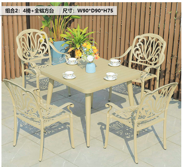 • 조합 2: 의자 4개 + 90*90*H75 전체 알루미늄 정사각형 테이블