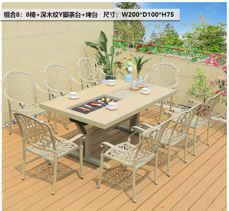 • 조합 8: 의자 8개 + 200*100*H75 깊은 나뭇결 Y발 티 테이블 + 베이킹 테이블