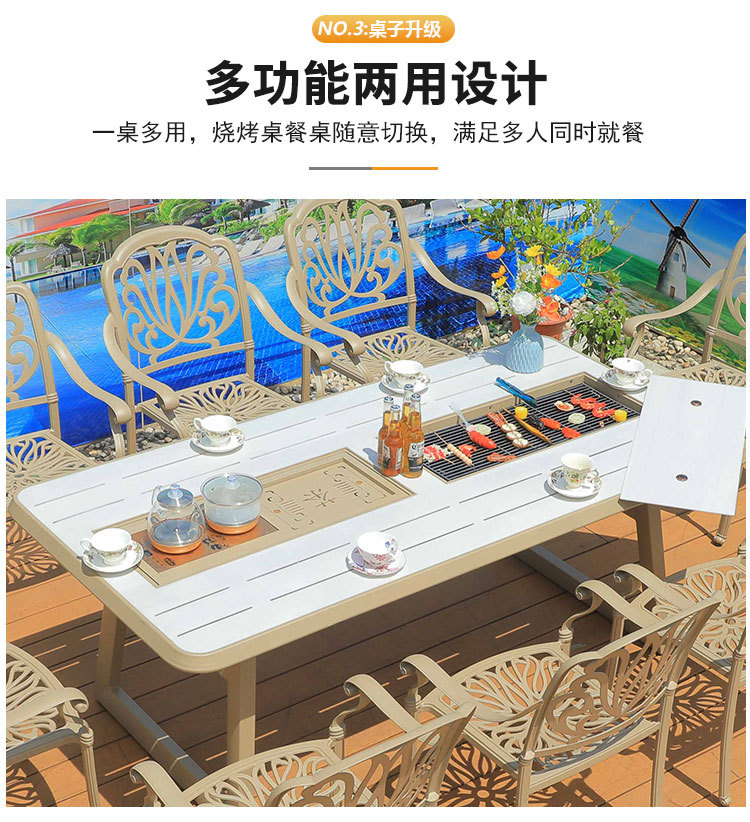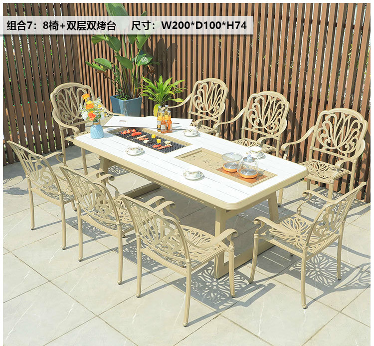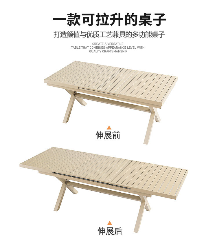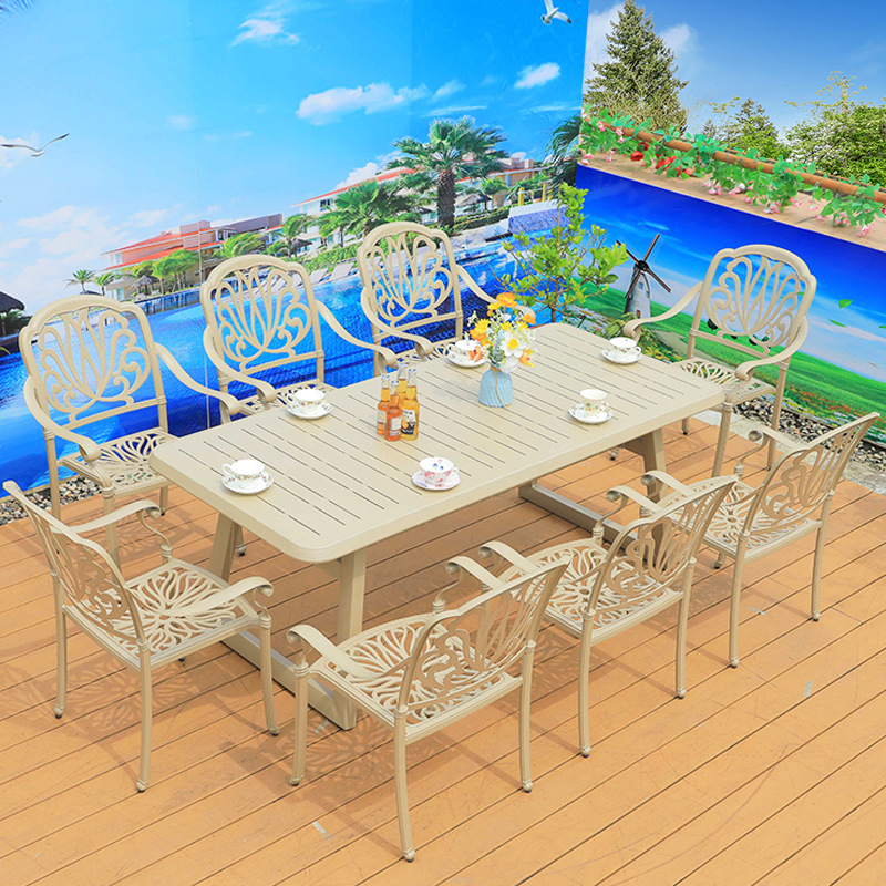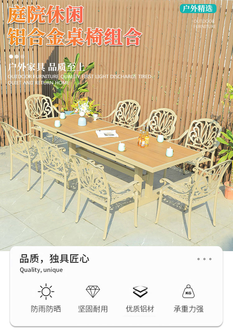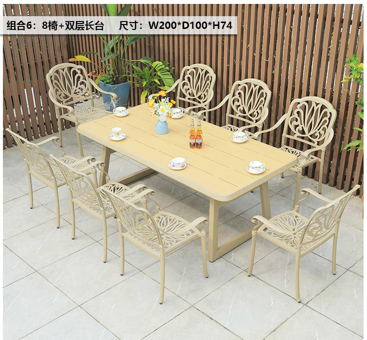현대 캐주얼 알루미늄 합금 식탁 및 의자 조합 안뜰 긴 테이블과 의자 정원 발코니 테라스 야외 개폐식 테이블스토어 가기