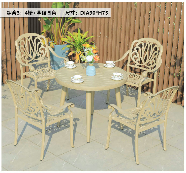 • 조합 3: 의자 4개 + 직경 90*H75 전체 알루미늄 원형 테이블
