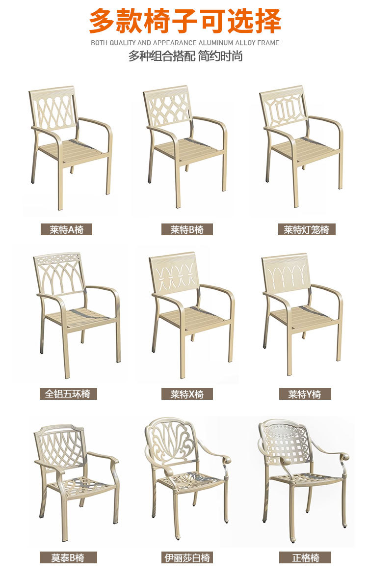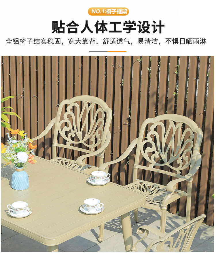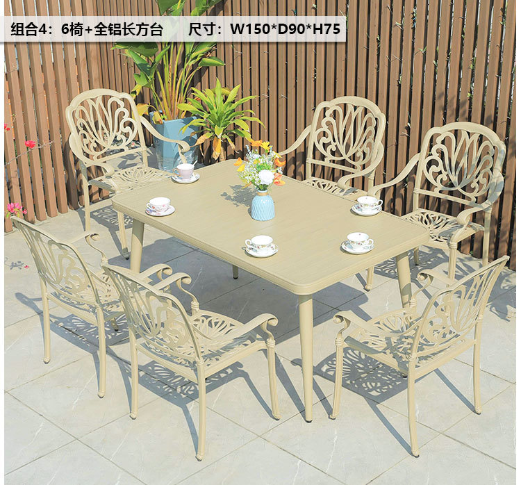 • 조합 4: 의자 6개 + 150*90*H75 전체 알루미늄 직사각형 테이블